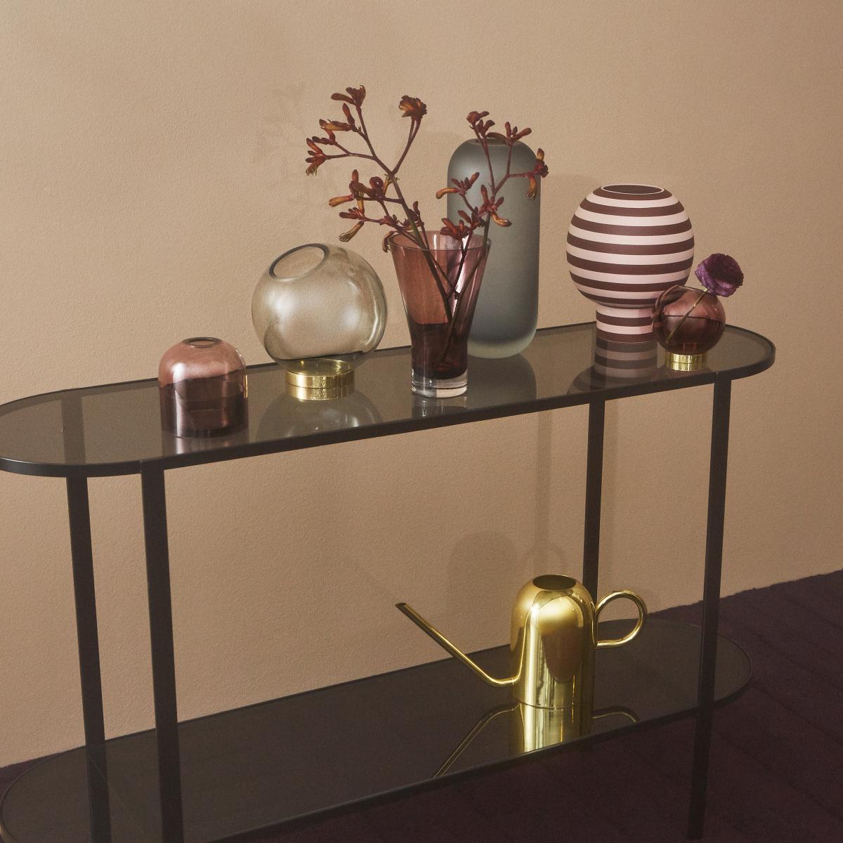 The small pink-brass globe vase is a versatile piece that combines soft colour with a touch of metallic elegance, making it ideal for contemporary or art deco-inspired interiors. I love how its subtle pink hue offers warmth without overpowering, and the brass base adds a hint of luxe. It works well in both minimalist spaces to add a gentle colour pop or in more eclectic setups where it can be paired with textured ceramics or metallic accents. For styling tips, consider pairing it with simple leaf or single-stem arrangements to keep the look clean and modern, or use it as a standalone decorative object on a console or shelf to highlight its sculptural form. This vase's understated charm allows it to complement a variety of palettes and design styles, making it a great all-rounder for adding interest and sophistication.