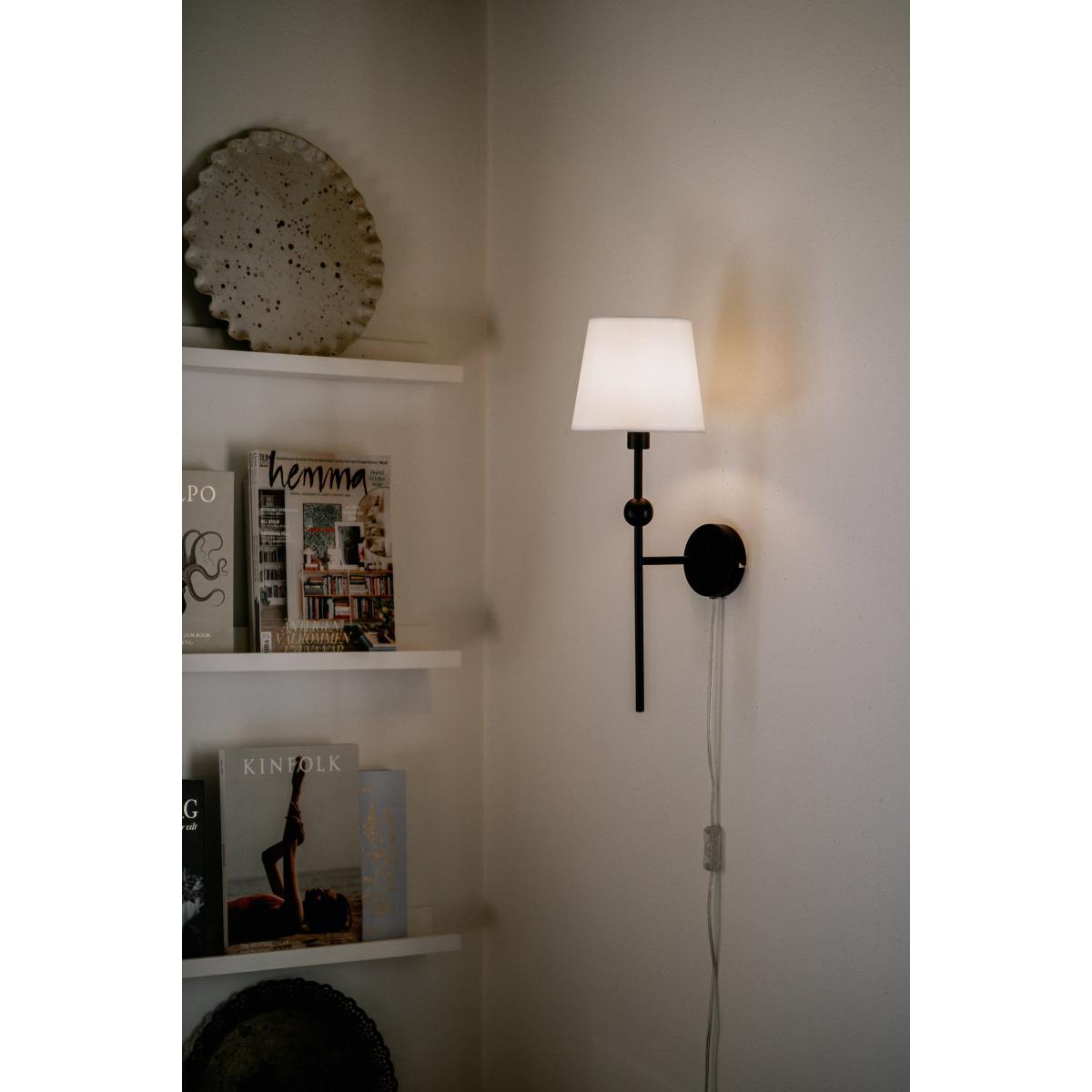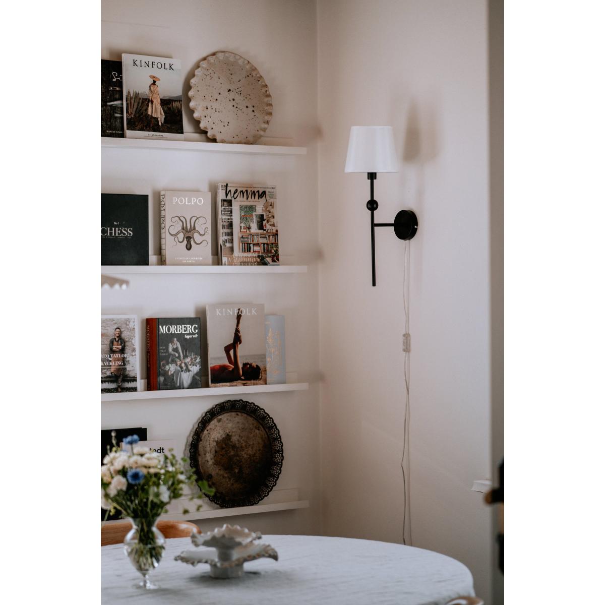 The Astrid wall lamp from Globen Lighting features a simple yet highly sophisticated design, replete with straight lines and round shapes that come together in a perfect combination of curves and edges. The attached transparent cable holds a practical switch to easily turn the light on and off as needed. Please note that a lampshade is not included.