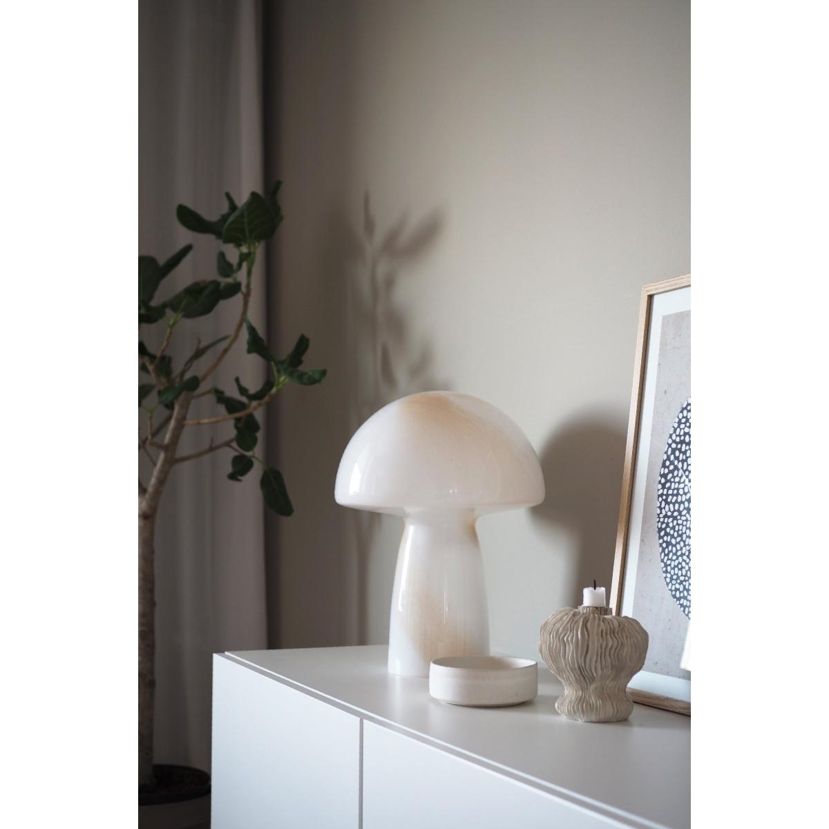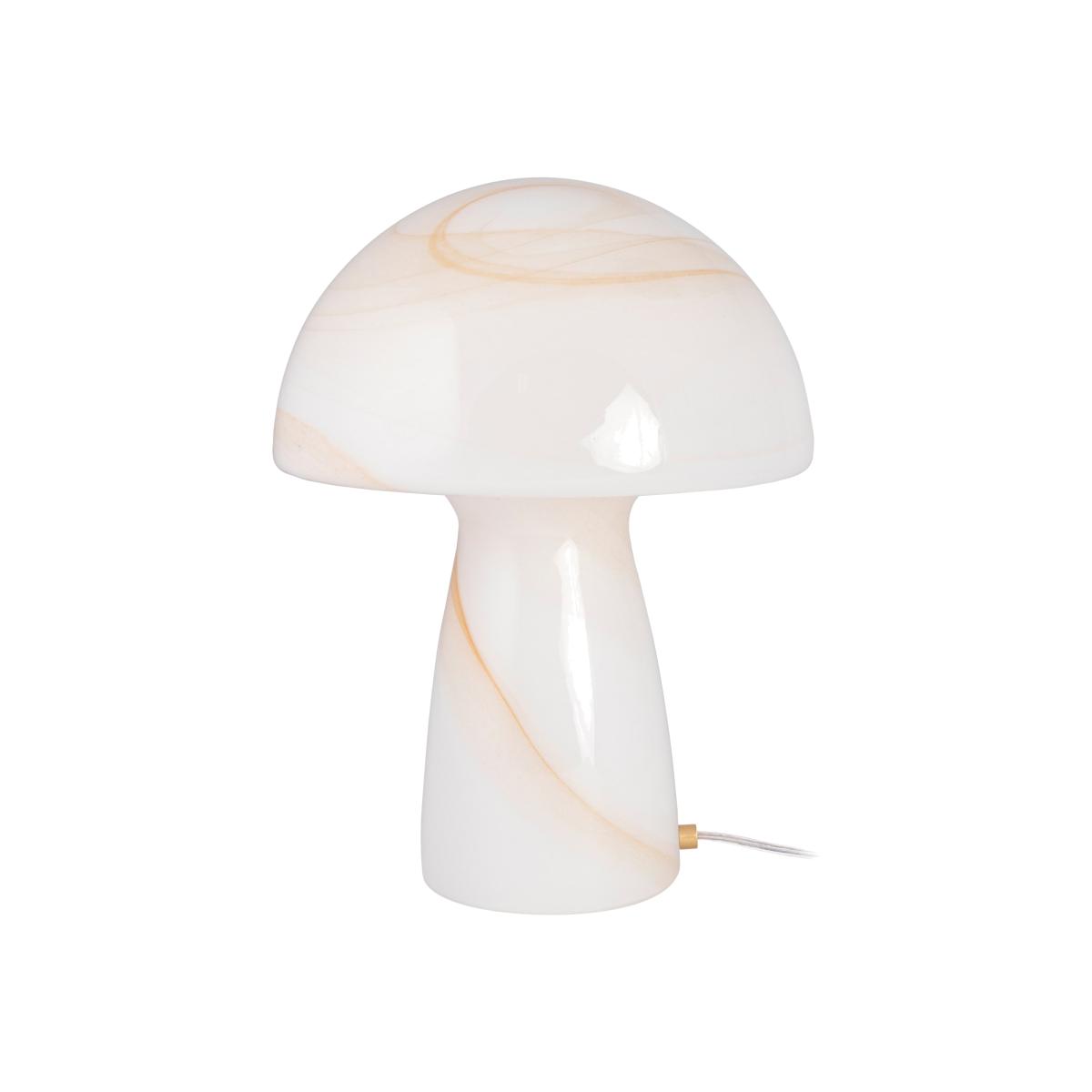 The Fungo is a gorgeous table lamp in white glass decorated with a diaphanous swirling pattern in light beige. With a stately figure resembling a charming mushroom, the glass lamp will spread a soft and comfortable glow in any space. Place the lamp by the bookcase or on a sideboard to set gentle mood lighting for your living room or office.
