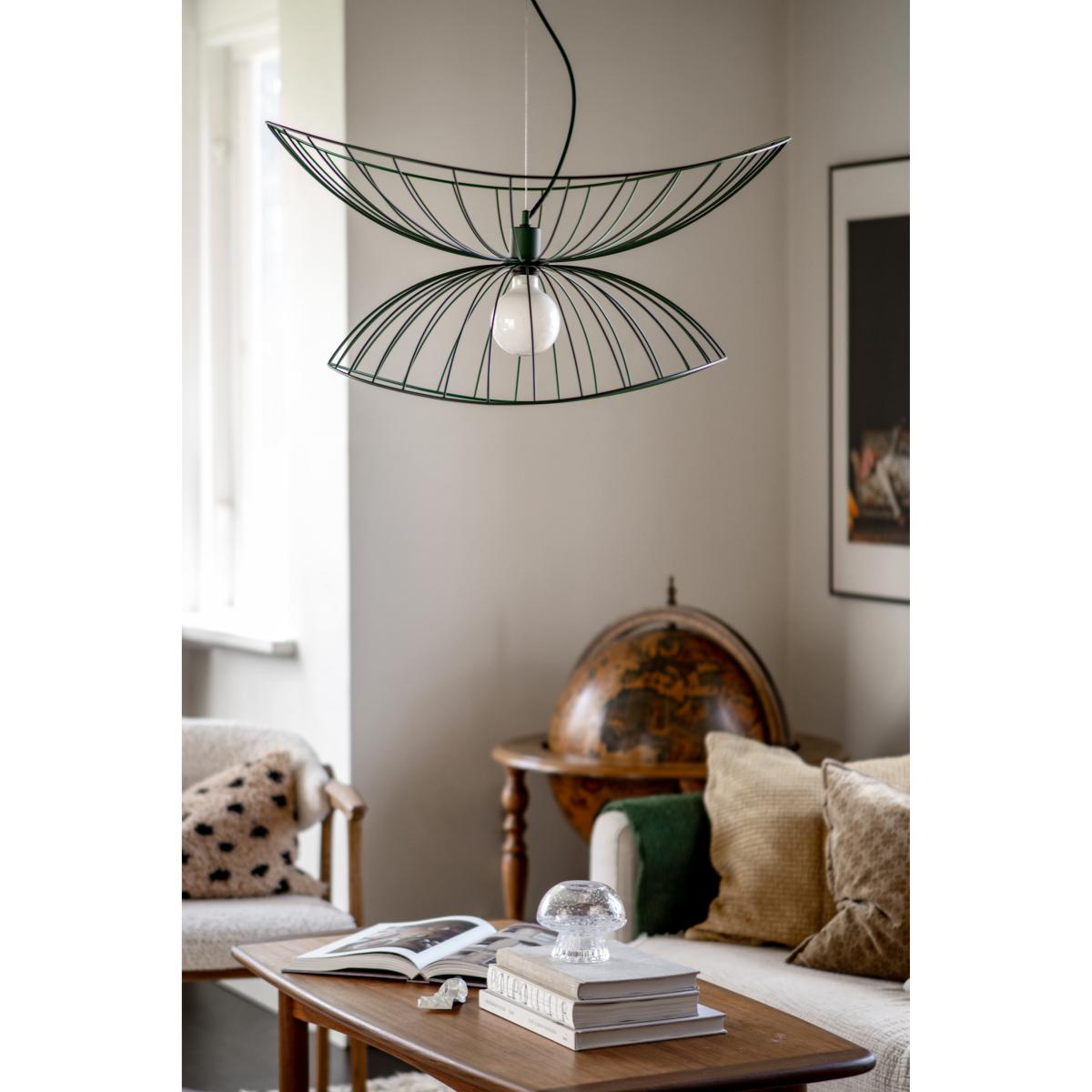I love the Globen Lighting Ray as a statement ceiling light that adds colour and interest without overwhelming a space. Its playful, geometric wire design in vibrant green makes it ideal for modern or eclectic interiors, especially in kitchens, dining areas, or even creative workspaces. To style it effectively, consider pairing with neutral or minimalist interiors to let the lamp stand out, and ensure the surrounding ceiling height allows its bold shape to be appreciated. Practical tips include using warm LED bulbs to soften the overall look and maintaining clear sightlines around the fixture to highlight its sculptural quality.
