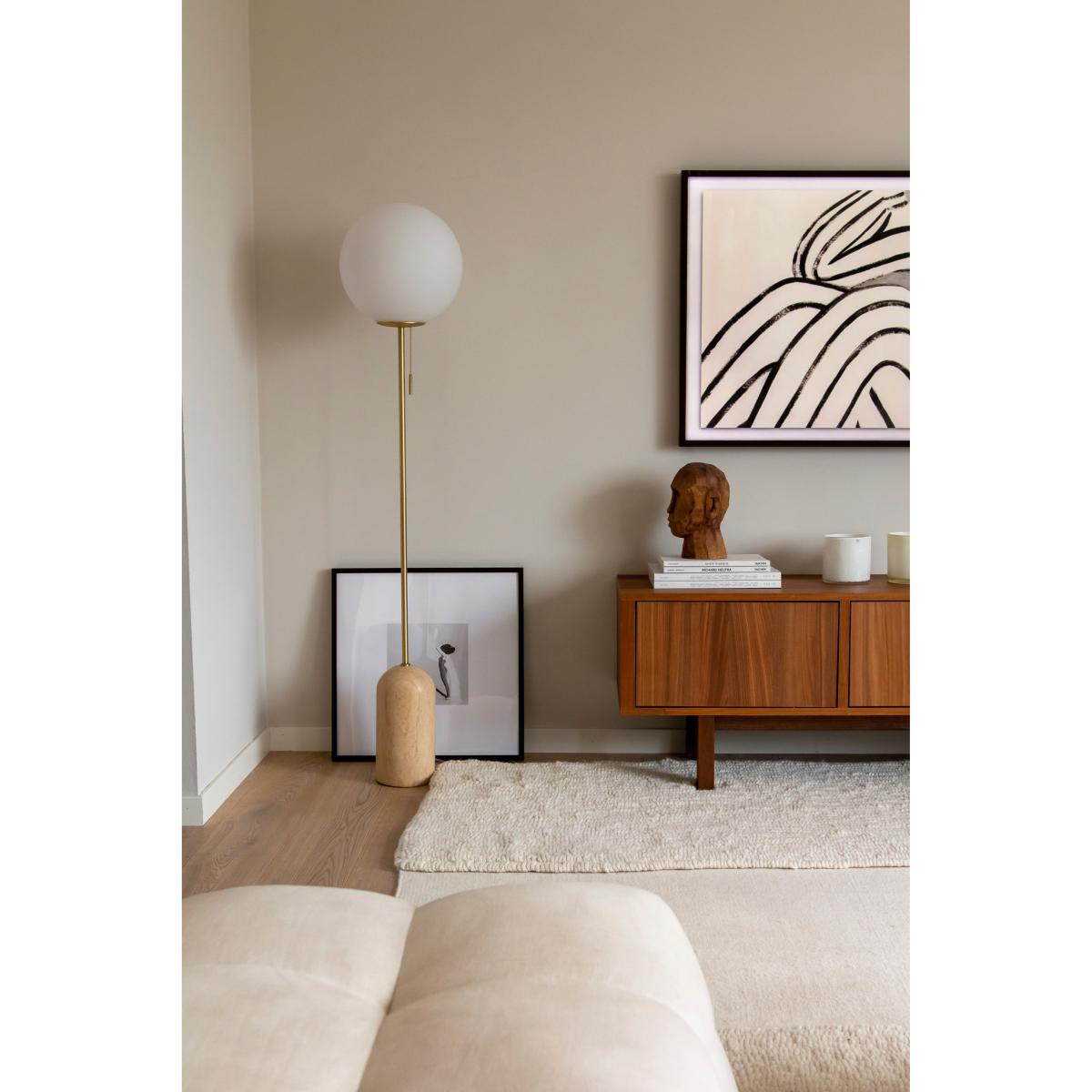 The Torrano floor lamp from Globen Lighting is a modern and elegant floor lamp with a stable marble base. The spherical lampshade in opal glass creates a minimalist expression which, against the hard marble stone, gives the floor lamp a delightful contrast. Place this decorative floor lamp next to the sofa or in a corner where you want to add some extra light.