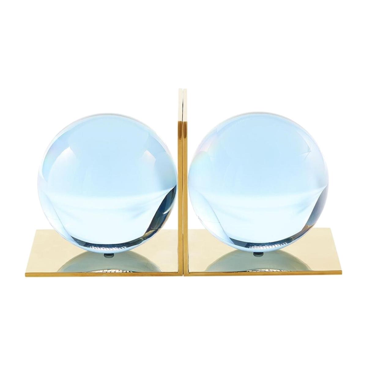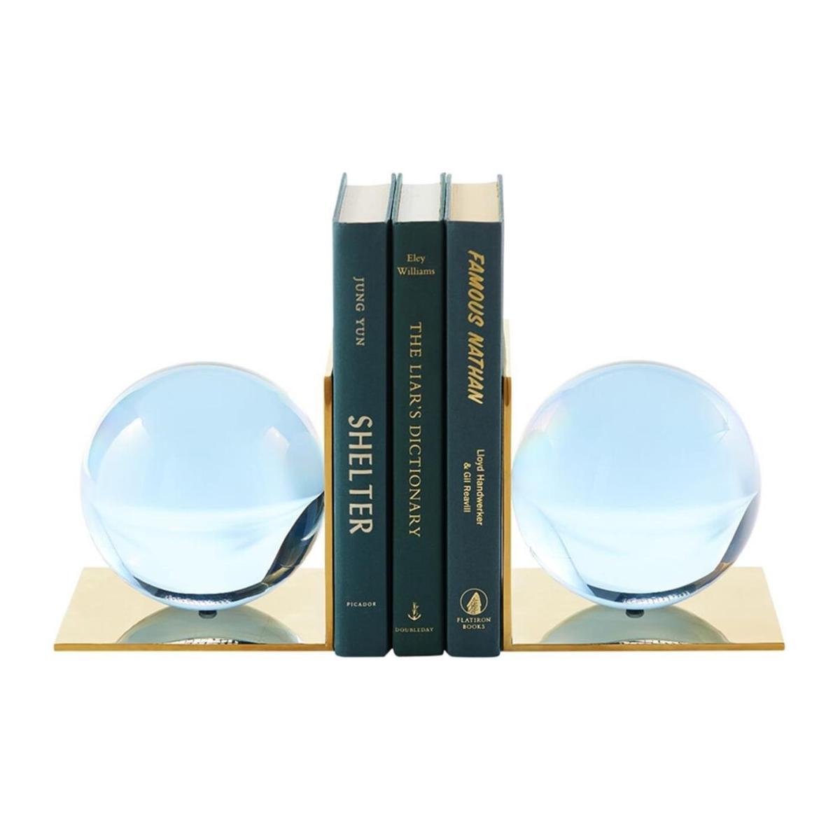 I love this pair of crystal ball bookends for their sleek, modern look that adds a touch of sophistication to any shelf or desk. They work particularly well in contemporary and minimalist interiors, where clean lines and subtle accents are key. For styling, consider placing them with art books or decorative objects to create a balanced display, or use them to anchor colourful book collections for a striking contrast. Their transparent quality also makes them versatile, allowing them to fit seamlessly into both monochrome and more vibrant decor schemes. Practical tip: position them slightly apart to avoid overcrowding, ensuring both functionality and visual appeal.