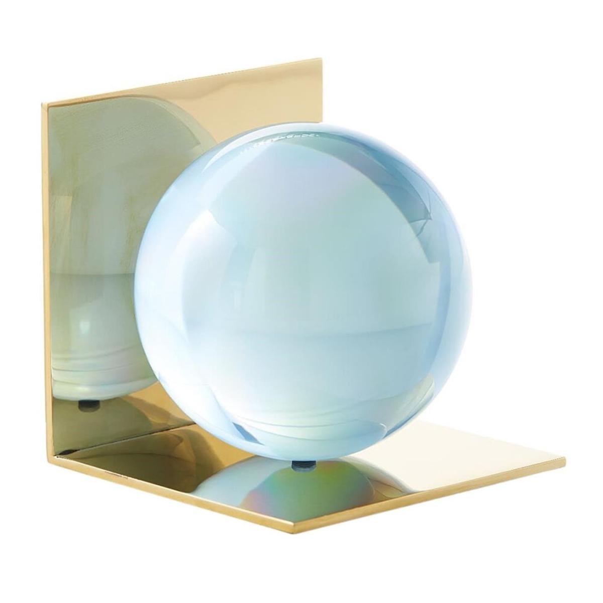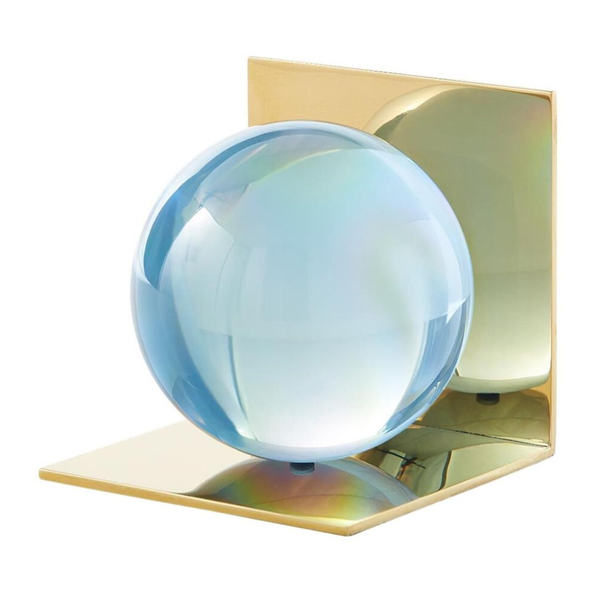Step into Jonathan Adler's fantastical realm of mesmerising spheres and cabochons. Drawing inspiration from striking and opulent cocktail rings, every Globo Bookend showcases a radiant acrylic globe resting on an L-shaped brass base. Employ them jointly to prevent your books from falling over.
