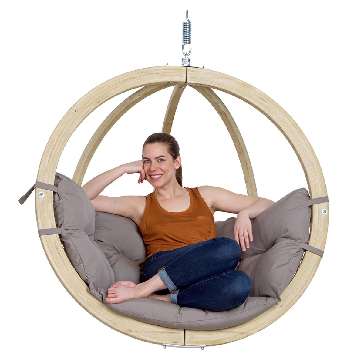 The Globo Hanging Chair by Amazonas is the most extraordinarily comfortable chair. Handmade with a unique wooden frame, whether you hang this chair from a tree for those long summer days in the shade or you're enjoying a good book in the sunshine, it is the ideal place to relax out in the garden! The Globo chair is equipped with a big soft taupe cushion designed with a detachable and washable cover for quick and simple maintenance and with a weatherproof cushion cover and filling, your hanging chair can remain outside come rain or shine. Available as a single or double size and with a choice of 6 gorgeous colours, make sure everyone can sit in style!.