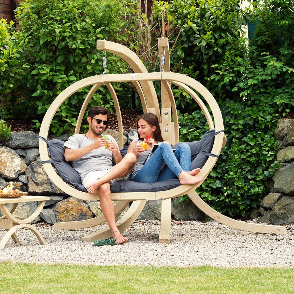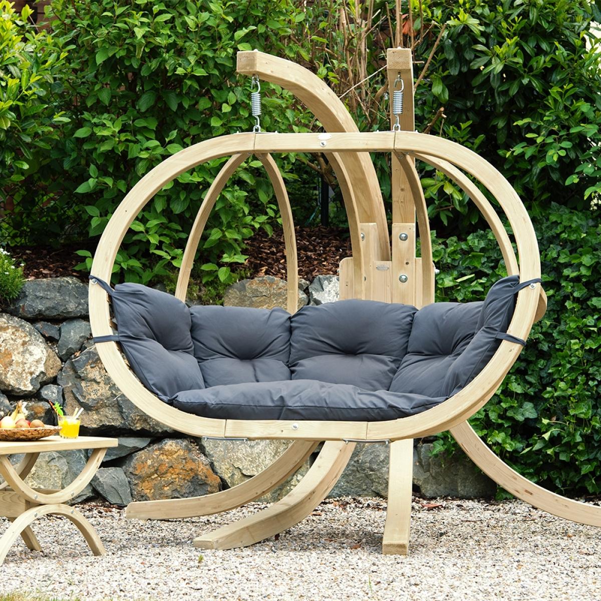 Offering space for 2 people, the Globo Royal Hanging Chair by Amazonas is the most extraordinarily comfortable chair. Handmade with a unique wooden frame, whether you hang this chair from a tree for those long summer days in the shade or you've paired yours with the matching stand, it is the ideal place to relax out in the garden! The Globo Royal Chair is equipped with a large, plush Anthracite grey cushion designed with a detachable and washable cover for quick and simple maintenance and made with a weatherproof fabric and filling, your hanging chair can remain outside come rain or shine. Available as a double or a single size and in a choice of 6 gorgeous colours, all of the family can sit in style!.