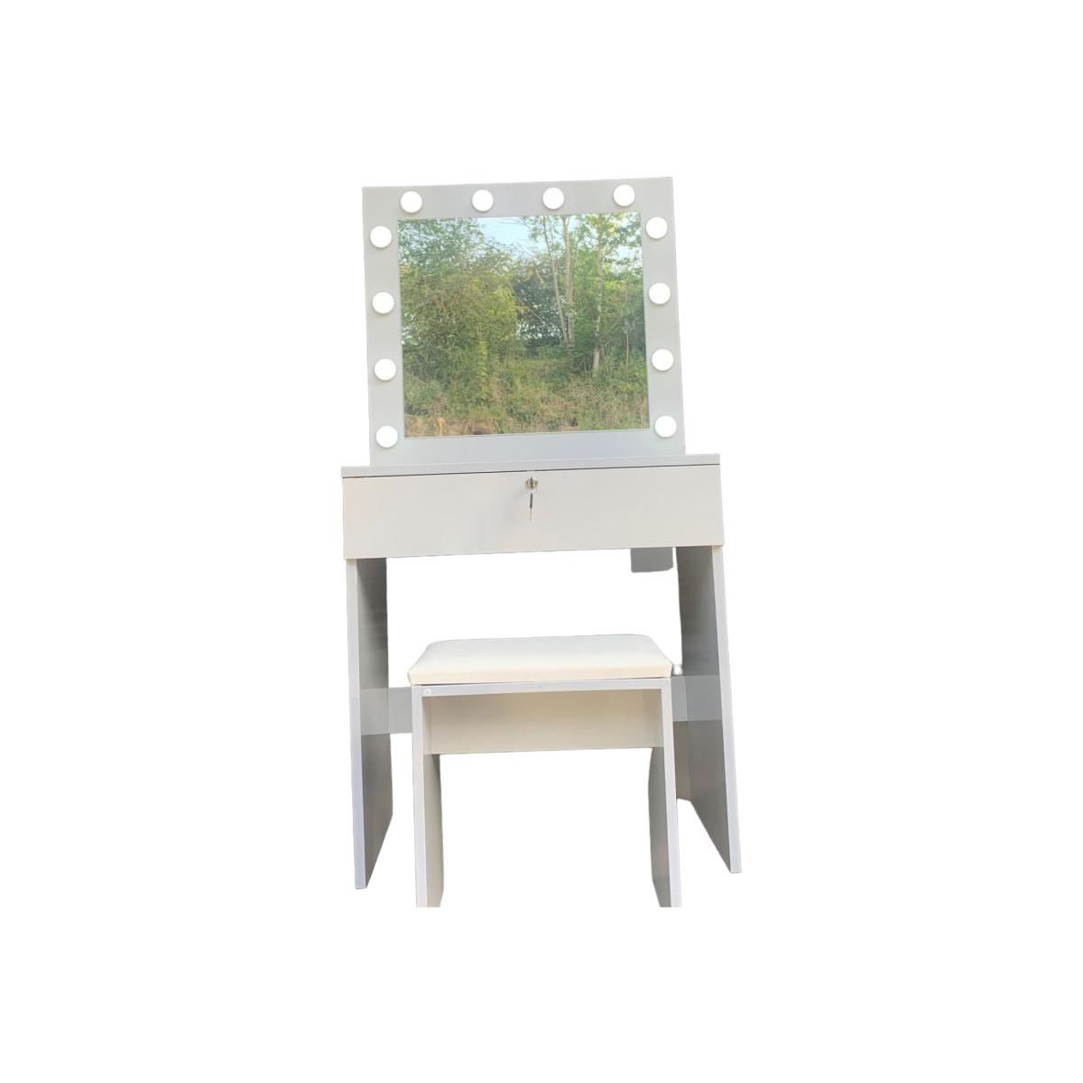 Glossy Dressing Make Up Table with Stool, light Bulbs and Mirror - White