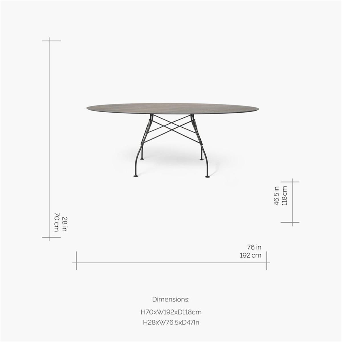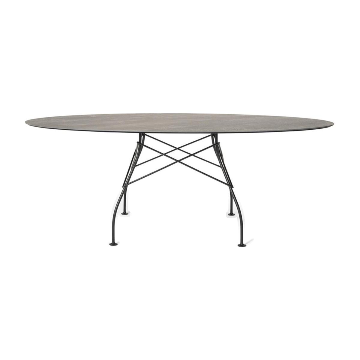 Transform your dining space indoors or outdoors with this Glossy dining table from Kartell. With a light steel structure with crossed elements that support the stoneware top, this table is available in a selection of finishes.