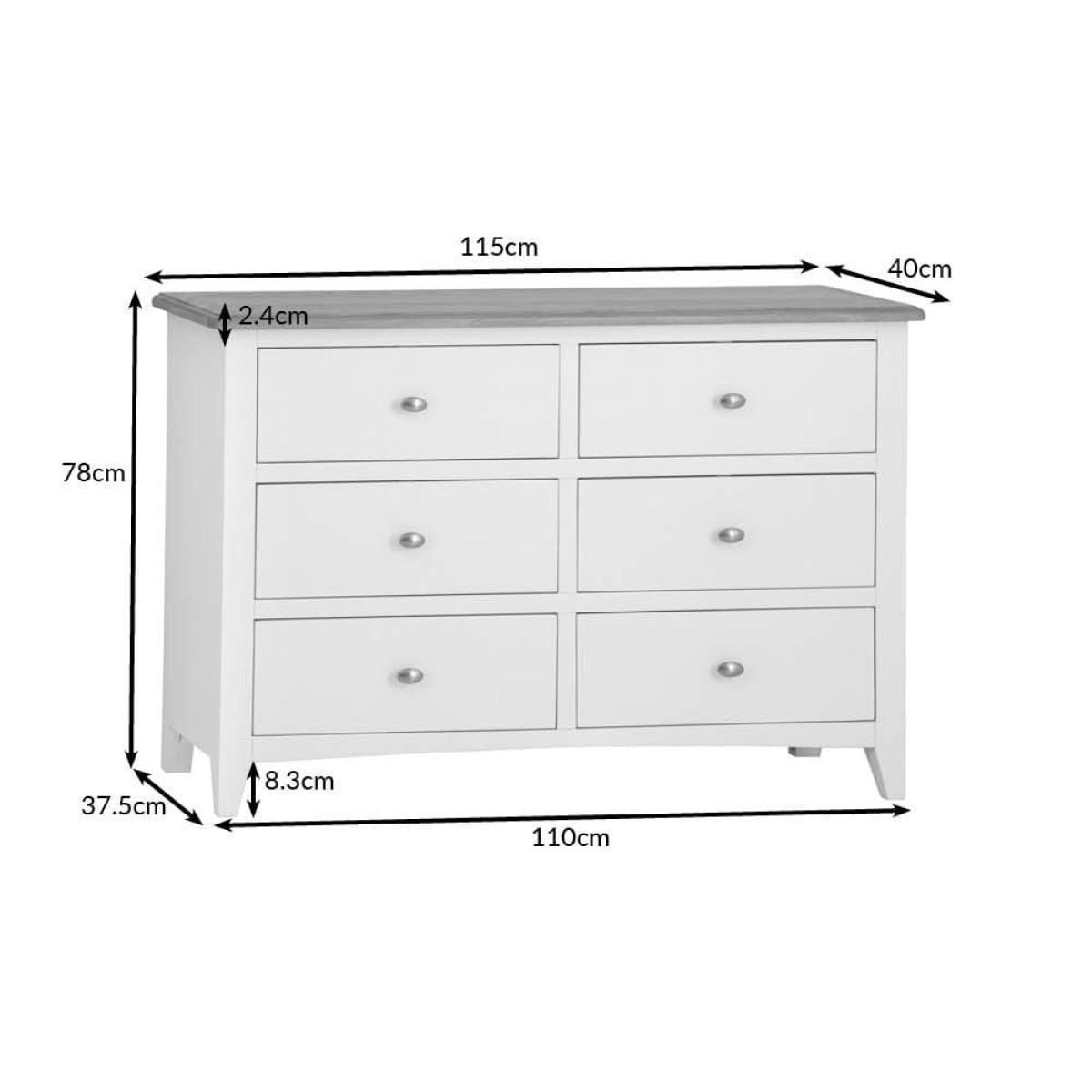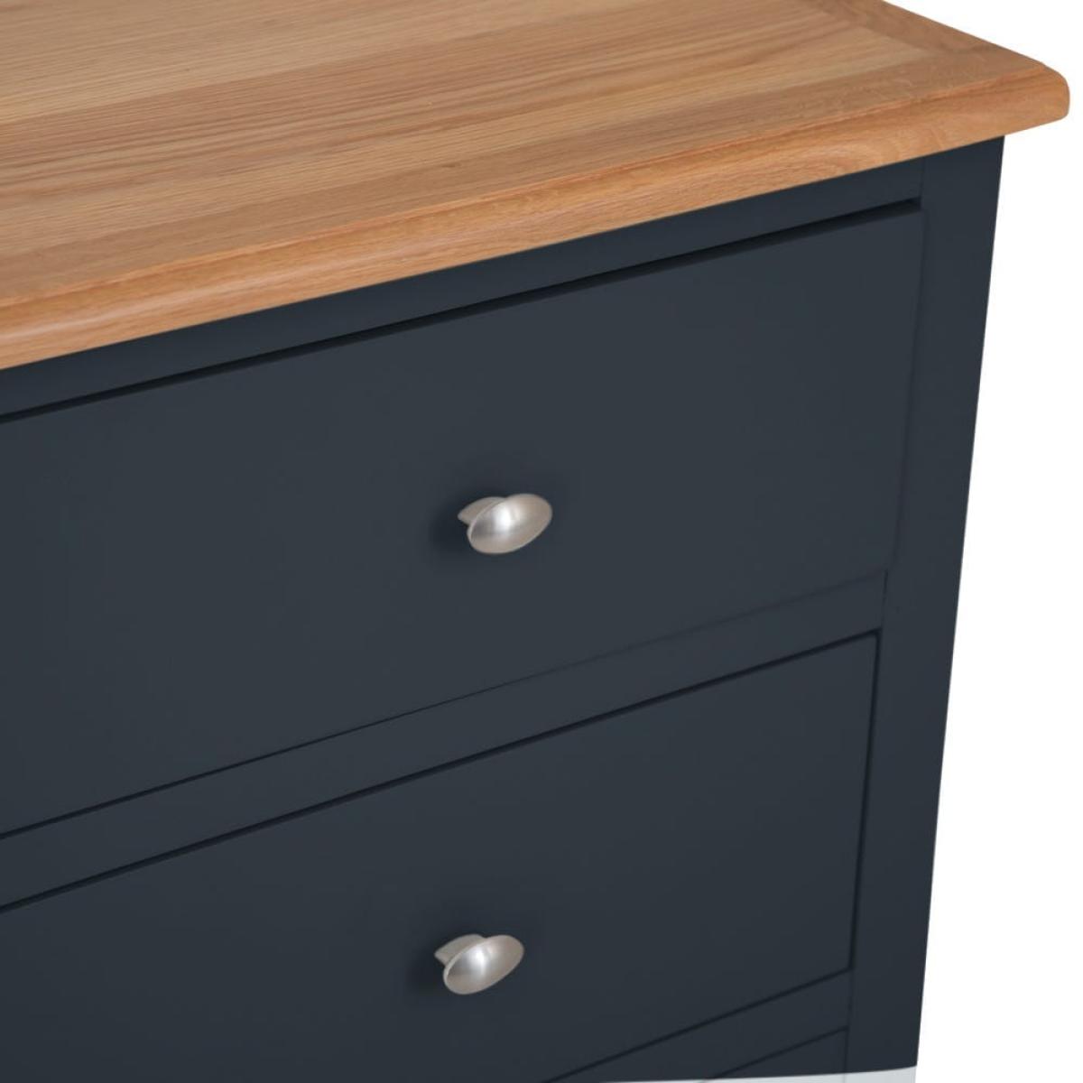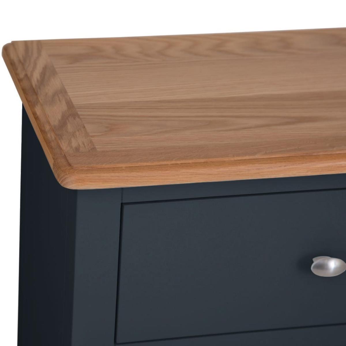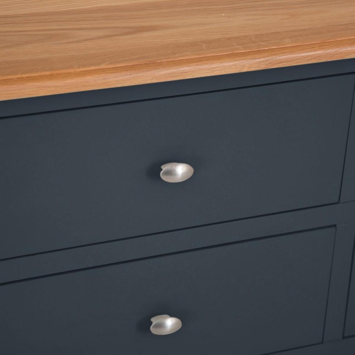 Bring a sense of summer into your bedroom by placing a vase of fresh flowers on your new Gloucester midnight grey painted chest of 6 drawers. Bright blooms will contrast with this piece’s dark grey finish, particularly with the deep blue undertones that allow these drawers to blend into a range of bedroom colour schemes. A solid wood construction, sleek tapered legs and brushed metal handles also add sophistication to your space. This item consists of six roomy drawers that can store summer tops or winter cover-ups - just the thing for when the weather is between seasons.