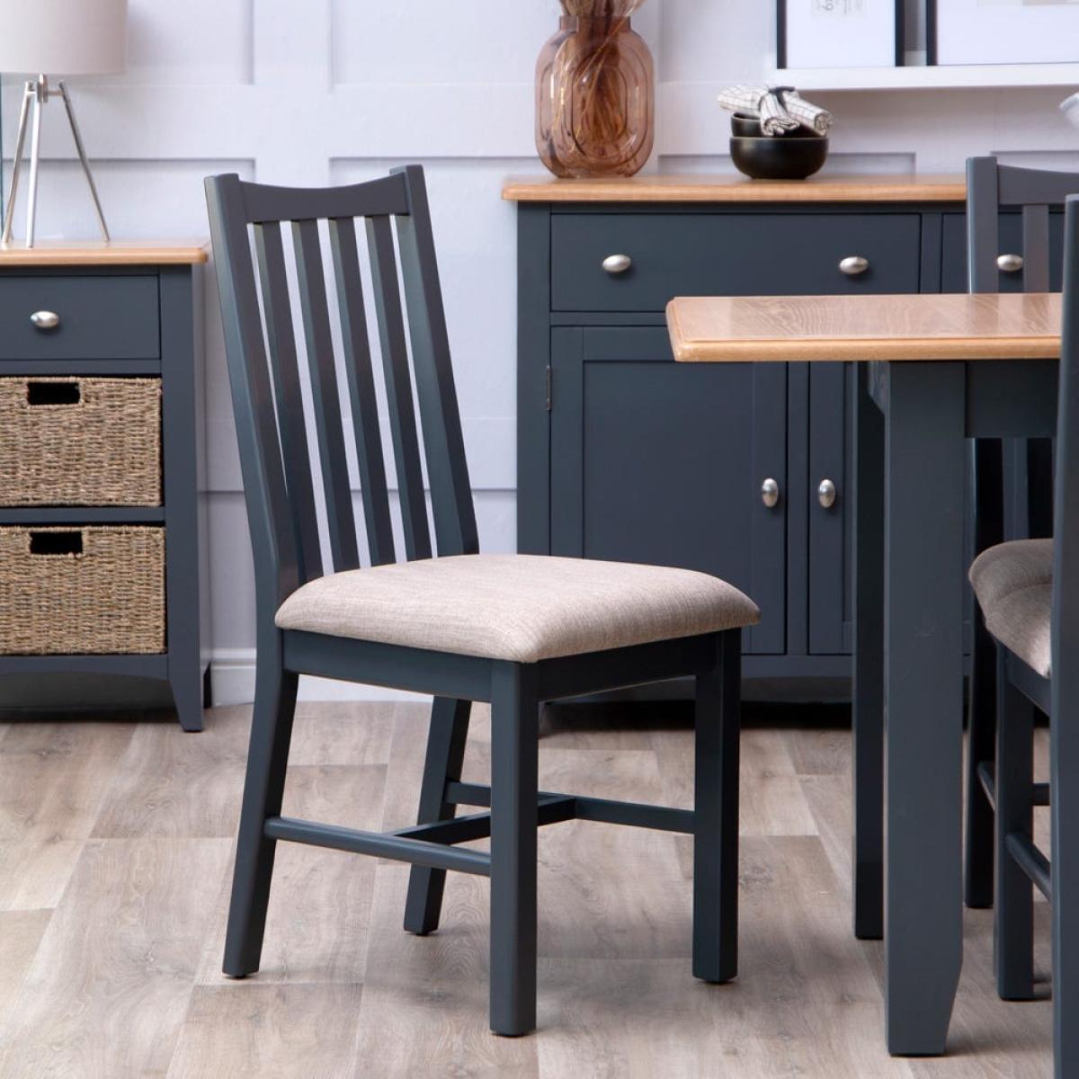 Make space for everyone round the table when there’s a feast on the way. A family’s worth of our Gloucester midnight grey painted dining chairs with fabric seats will keep everyone comfy – big and small. Slip these seats smoothly under a modern table – they’ll fit into your current decor with their slatted backs, solid wood construction and dark grey painted finish. Suitable for everyone from kid to grandad, their 48cm height gives everyone a fighting chance at the roast potatoes. They come with an upholstered fabric seat pad which is comfortable enough to let you linger throughout the meal – and longer.