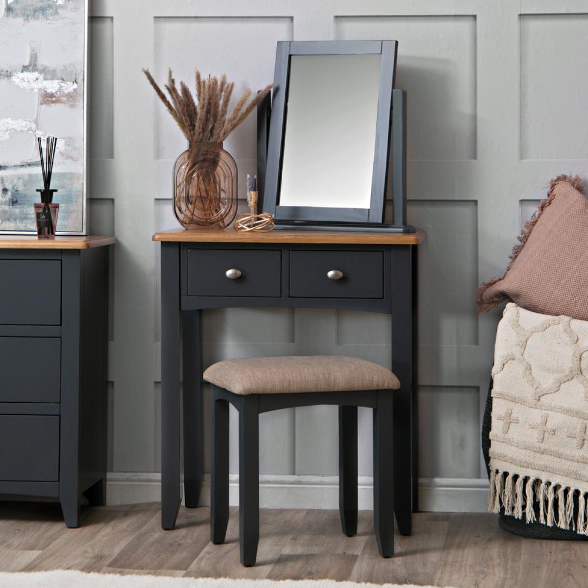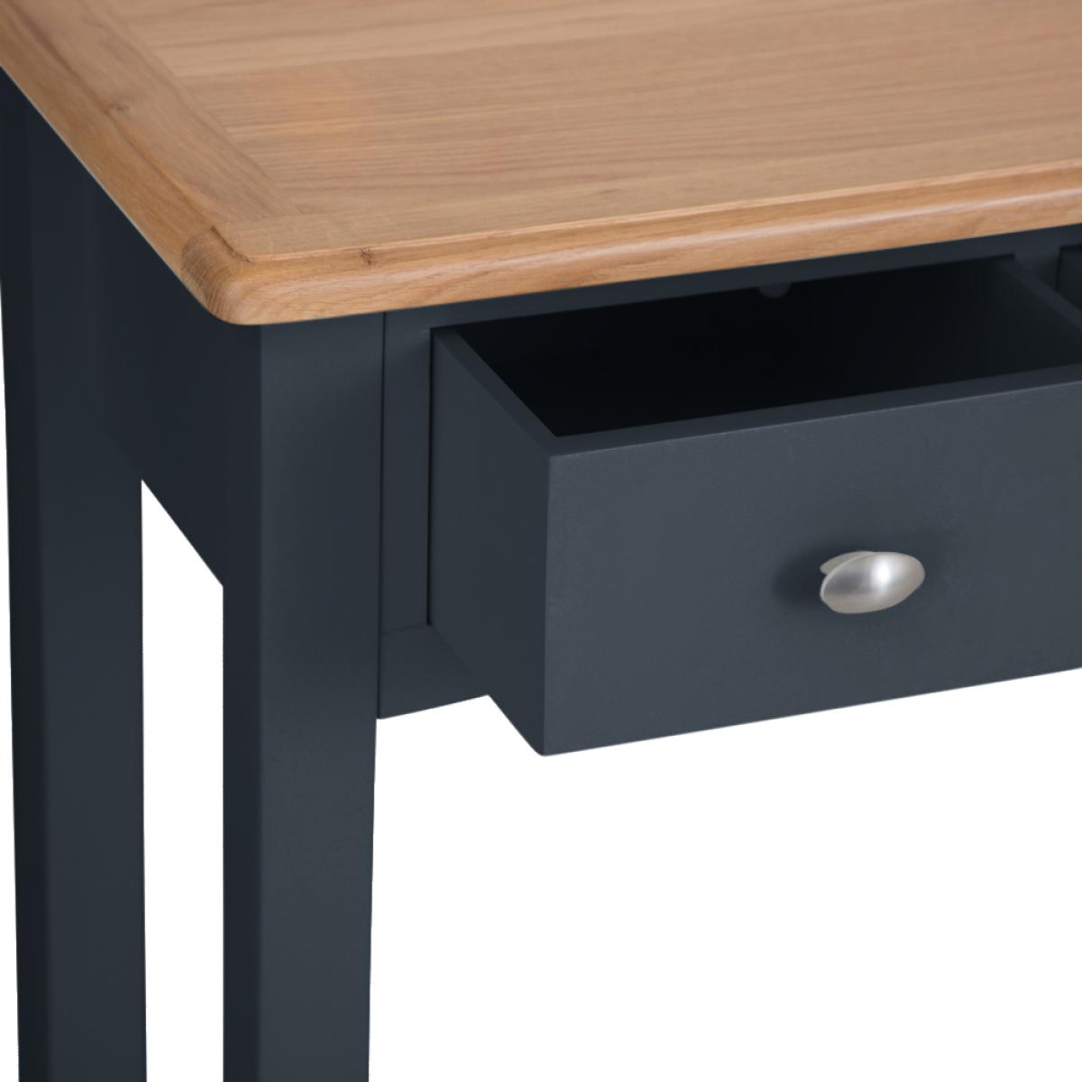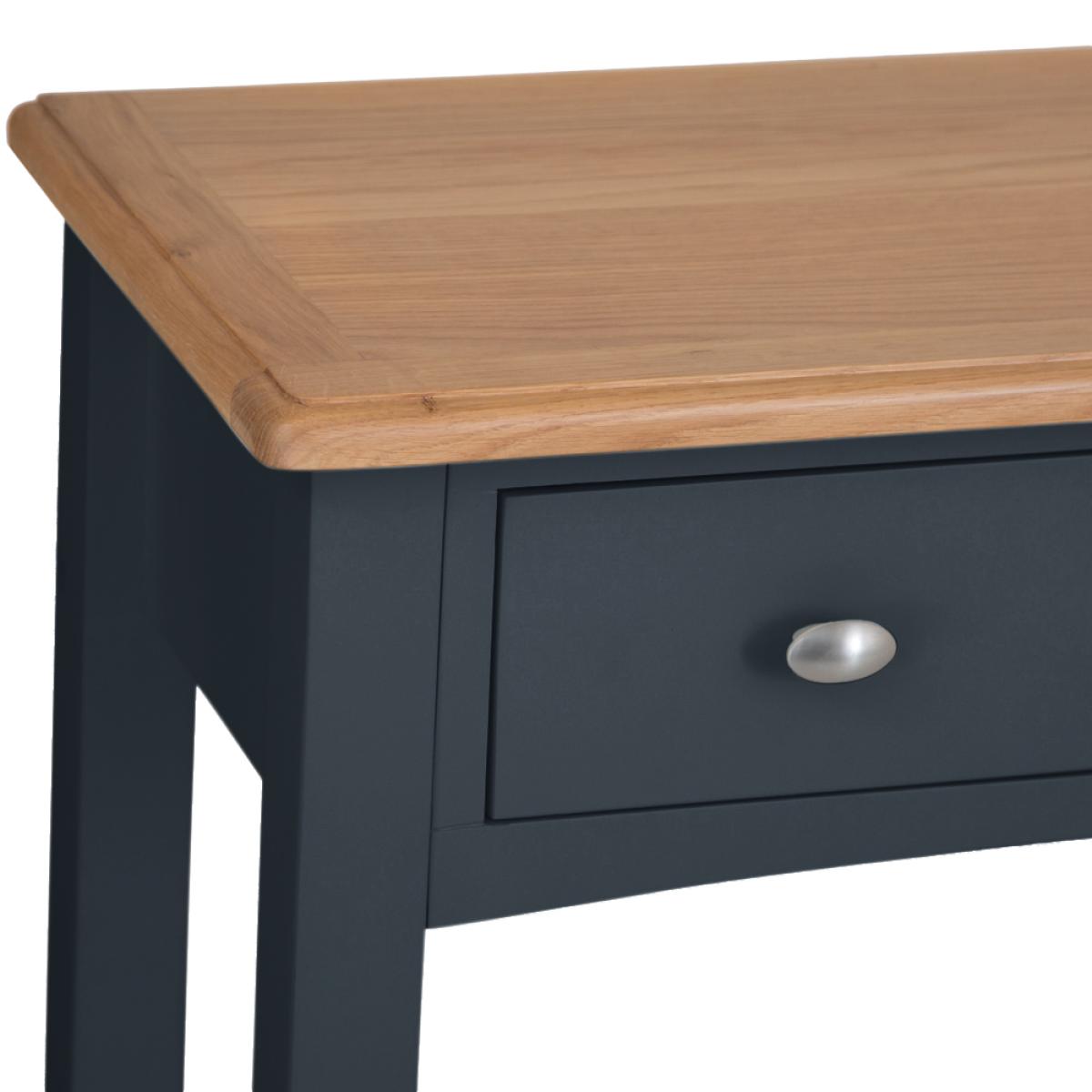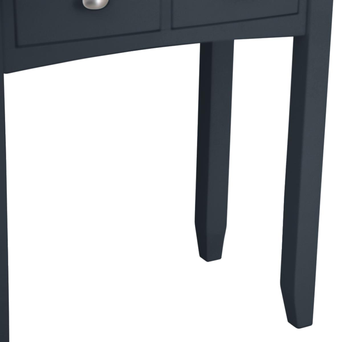 Modernise your Hallway, Bedroom, Living Room and Dining Room this season with the must-have Gloucester Midnight Grey Painted Collection. A comprehensive collection of grey furniture, the most interesting feature of Gloucester Midnight Grey is the oblong brushed metal knob handle, which is unique amongst our painted collections. The subtlety of this handle allows the other stand-out characteristics of each furniture item to come to the fore, such as tapered legs and bevelled detailing on the top surface. Surprisingly versatile considering the eye-catching colour, and suitable for a host of interior styles, the grey paint used has some blue undertones which produces an unforgettable finish. This Range is also available from Chiltern Oak Furniture in an unpainted finish, called Gloucester Oak, and a White Painted finish, called Gloucester White.