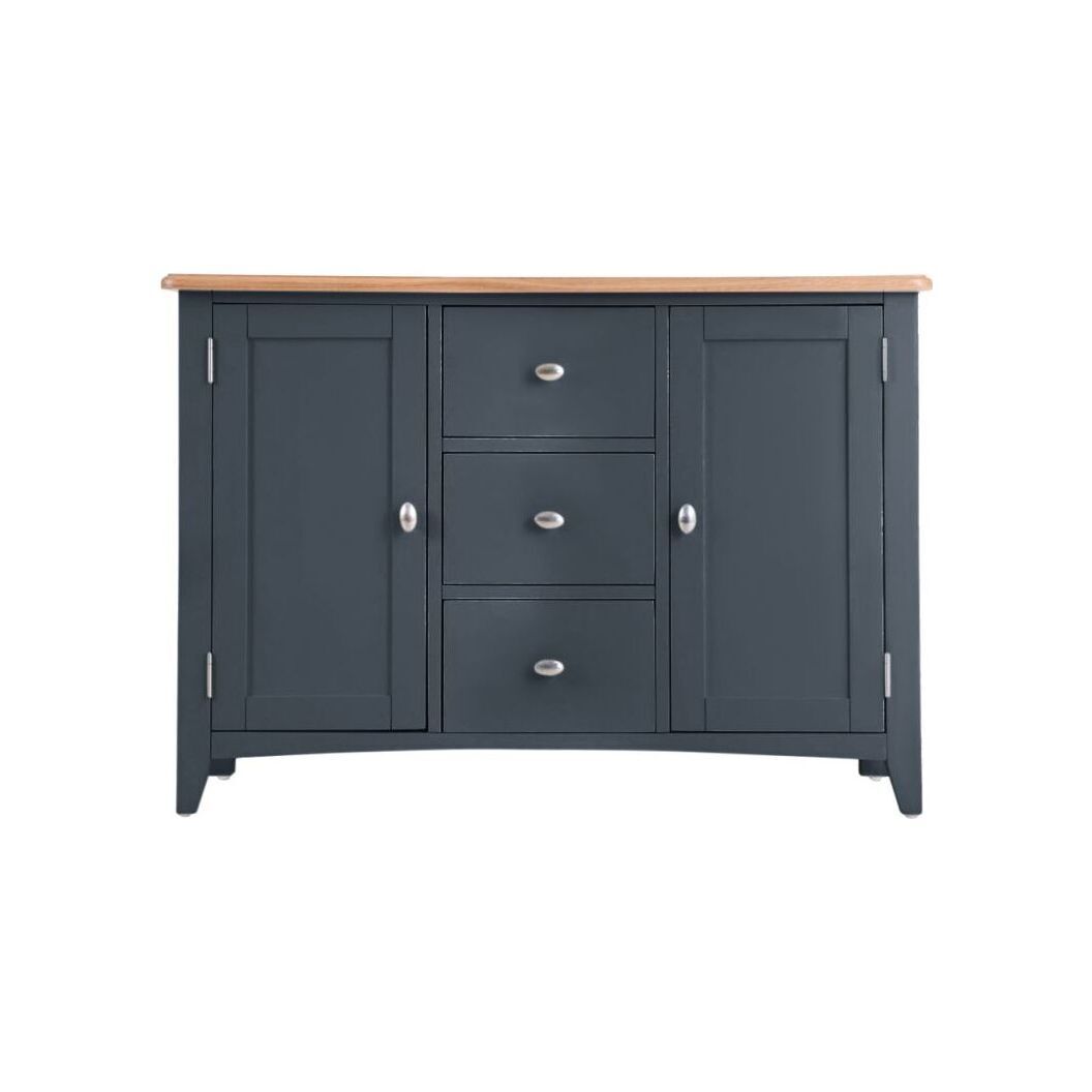 Modernise your Hallway, Bedroom, Living Room and Dining Room this season with the must-have Gloucester Midnight Grey Painted Collection. A comprehensive collection of grey furniture, the most interesting feature of Gloucester Midnight Grey is the oblong brushed metal knob handle, which is unique amongst our painted collections. The subtlety of this handle allows the other stand-out characteristics of each furniture item to come to the fore, such as tapered legs and bevelled detailing on the top surface. Surprisingly versatile considering the eye-catching colour, and suitable for a host of interior styles, the grey paint used has some blue undertones which produces an unforgettable finish. This Range is also available from Chiltern Oak Furniture in an unpainted finish, called Gloucester Oak, and a White Painted finish, called Gloucester White.