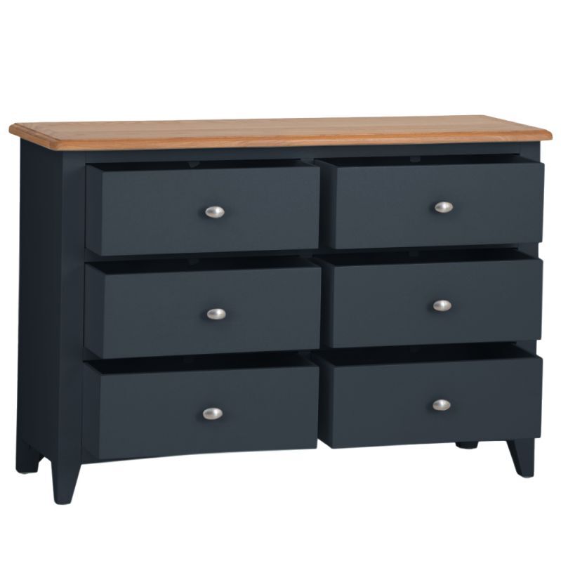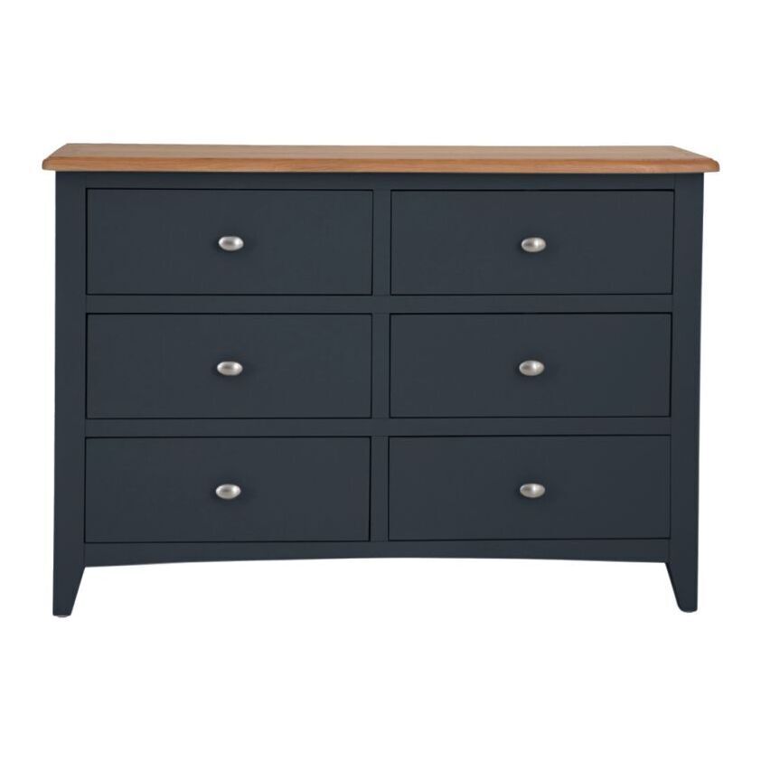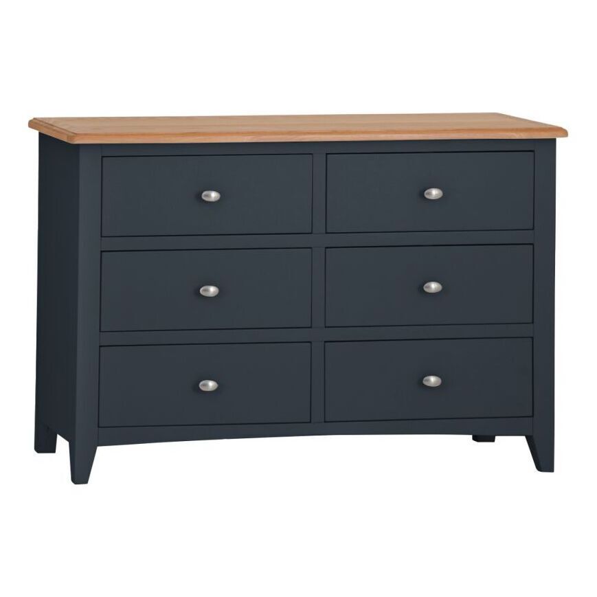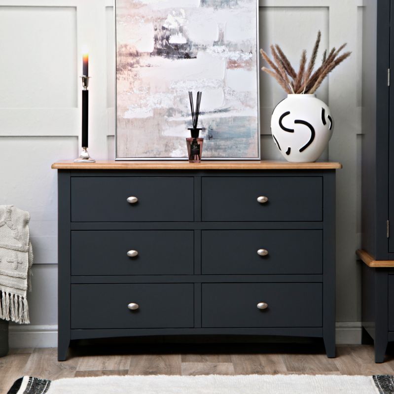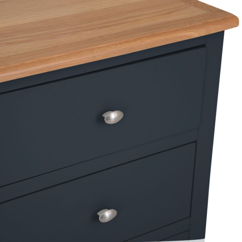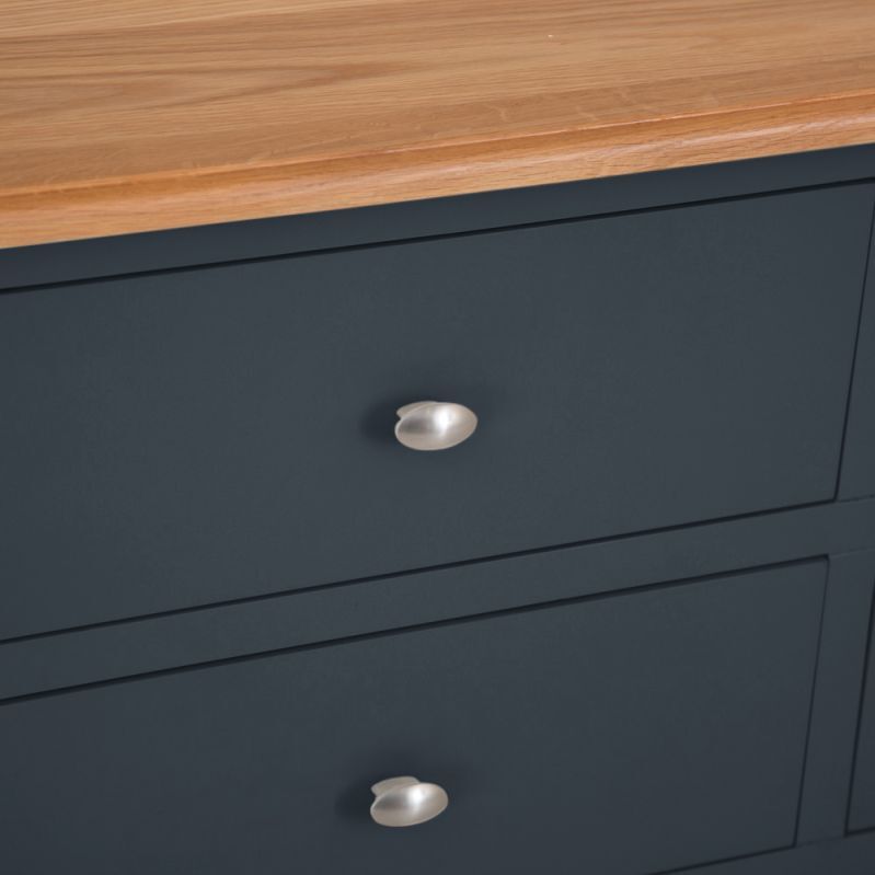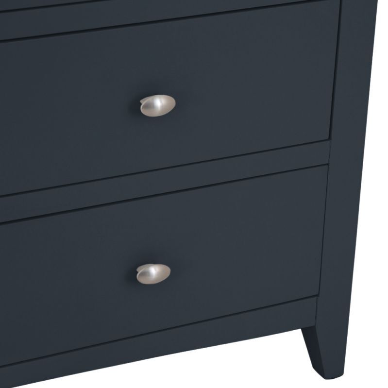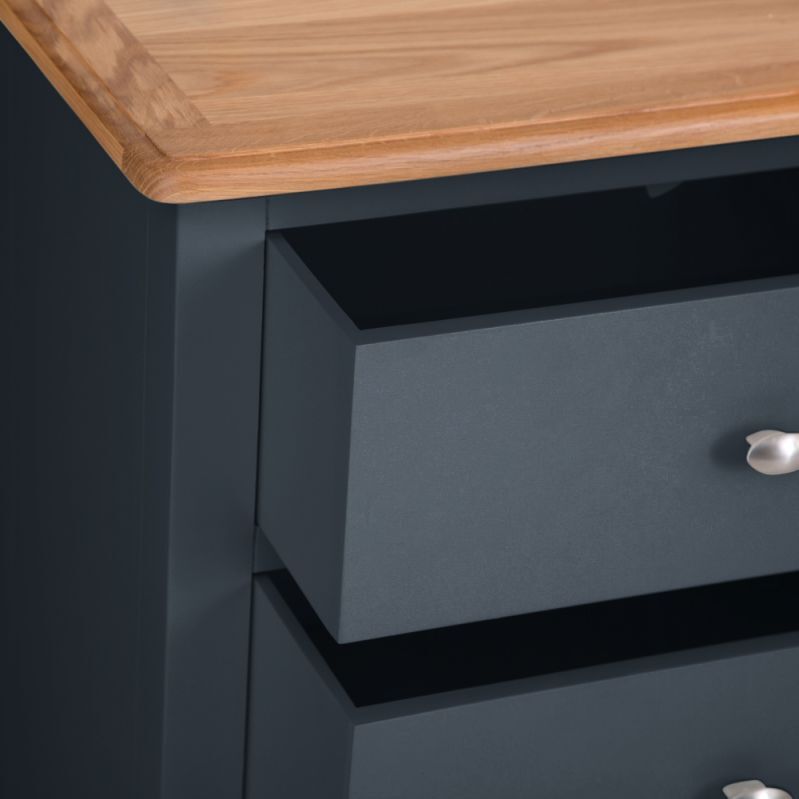 Modernise your Hallway, Bedroom, Living Room and Dining Room this season with the must-have Gloucester Midnight Grey Painted Oak Collection. A comprehensive collection of blue furniture, the most interesting feature of Gloucester Midnight Grey is the oblong brushed metal knob handle, which is unique amongst our painted collections. The subtlety of this handle allows the other stand-out characteristics of each furniture item to come to the fore, such as tapered legs and bevelled detailing on the top surface. Surprisingly versatile considering the eye-catching colour, and suitable for a host of interior styles, the grey paint used has some blue undertones which produces an unforgettable finish. This Range is also available from Chiltern Oak Furniture in an unpainted finish, called Gloucester Oak, and a White Painted finish, called Gloucester White.