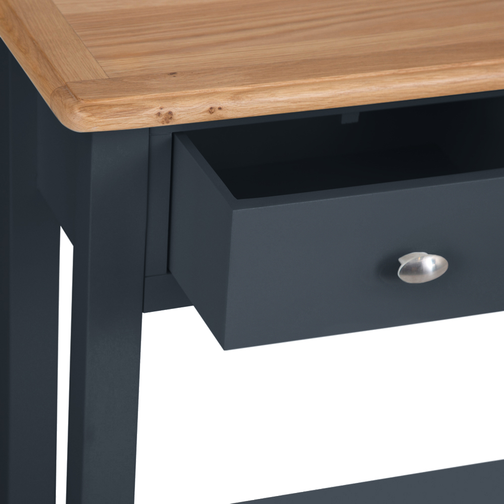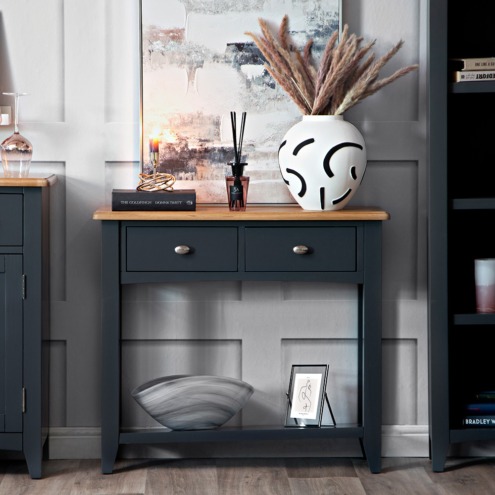 Modernise your Hallway, Bedroom, Living Room and Dining Room this season with the must-have Gloucester Midnight Grey Painted Collection. A comprehensive collection of grey furniture, the most interesting feature of Gloucester Midnight Grey is the oblong brushed metal knob handle, which is unique amongst our painted collections. The subtlety of this handle allows the other stand-out characteristics of each furniture item to come to the fore, such as tapered legs and bevelled detailing on the top surface. Surprisingly versatile considering the eye-catching colour, and suitable for a host of interior styles, the grey paint used has some blue undertones which produces an unforgettable finish. This Range is also available from Chiltern Oak Furniture in an unpainted finish, called Gloucester Oak, and a White Painted finish, called Gloucester White.