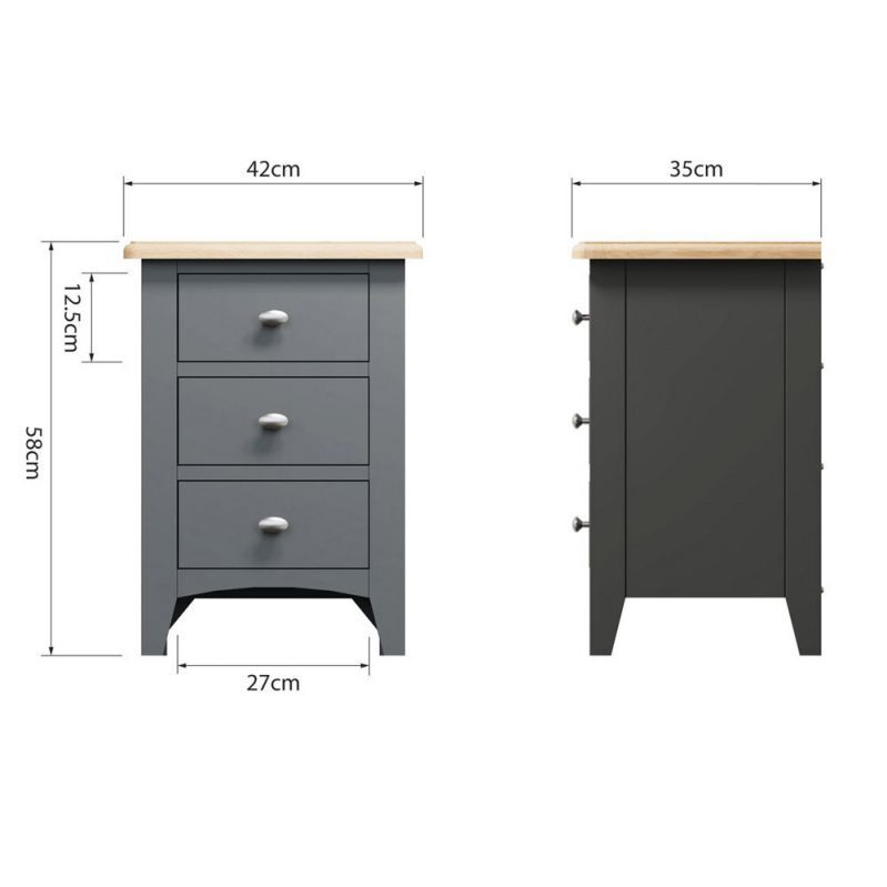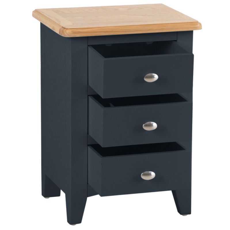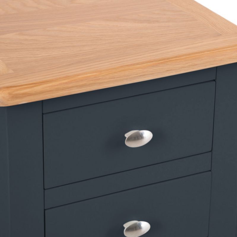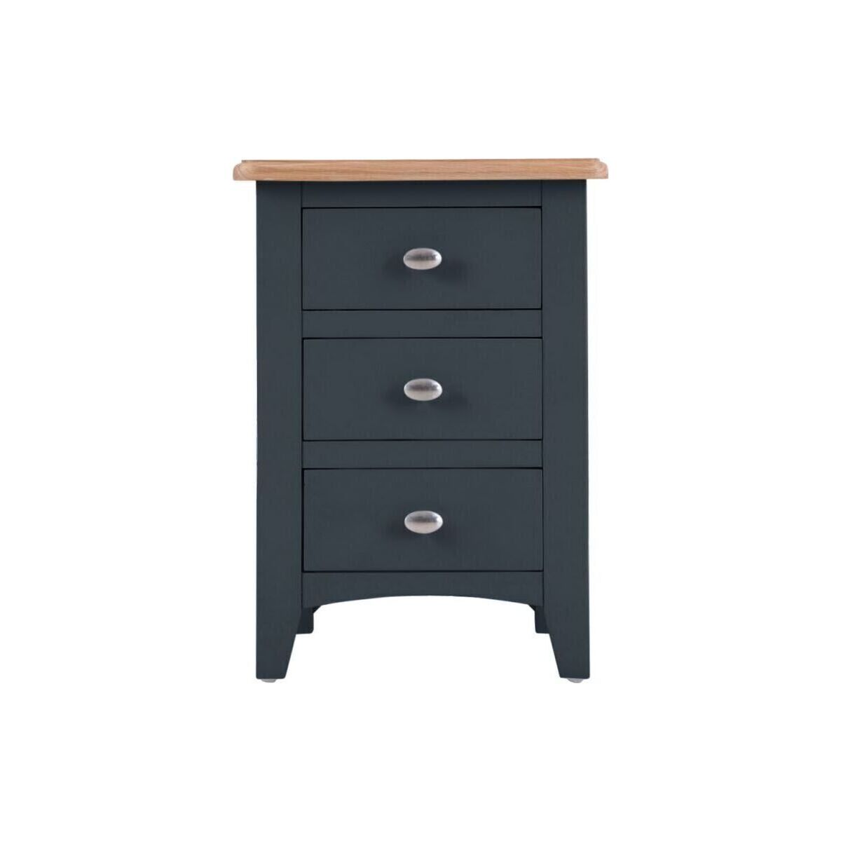 Modernise your Hallway, Bedroom, Living Room and Dining Room this season with the must-have Gloucester Midnight Grey Painted Collection. A comprehensive collection of grey furniture, the most interesting feature of Gloucester Midnight Grey is the oblong brushed metal knob handle, which is unique amongst our painted collections. The subtlety of this handle allows the other stand-out characteristics of each furniture item to come to the fore, such as tapered legs and bevelled detailing on the top surface. Surprisingly versatile considering the eye-catching colour, and suitable for a host of interior styles, the grey paint used has some blue undertones which produces an unforgettable finish. This Range is also available from Chiltern Oak Furniture in an unpainted finish, called Gloucester Oak, and a White Painted finish, called Gloucester White.