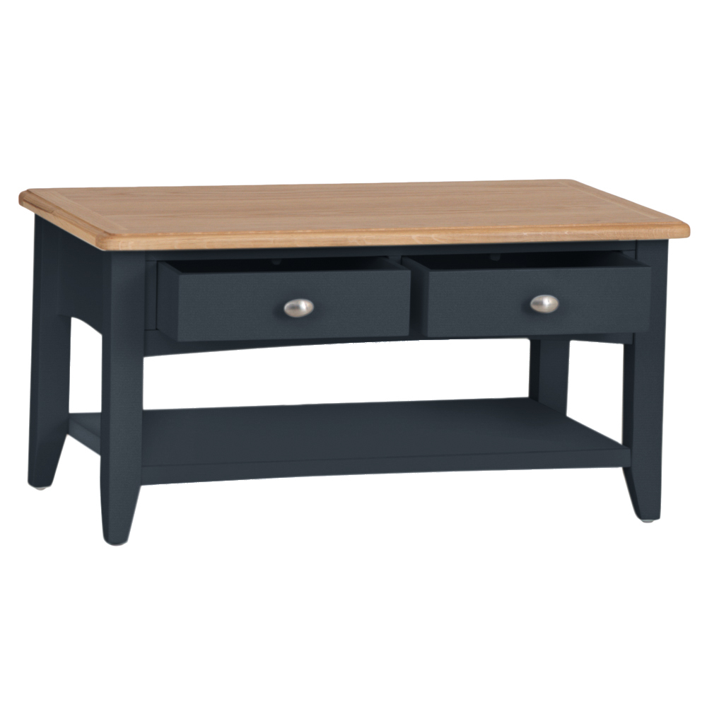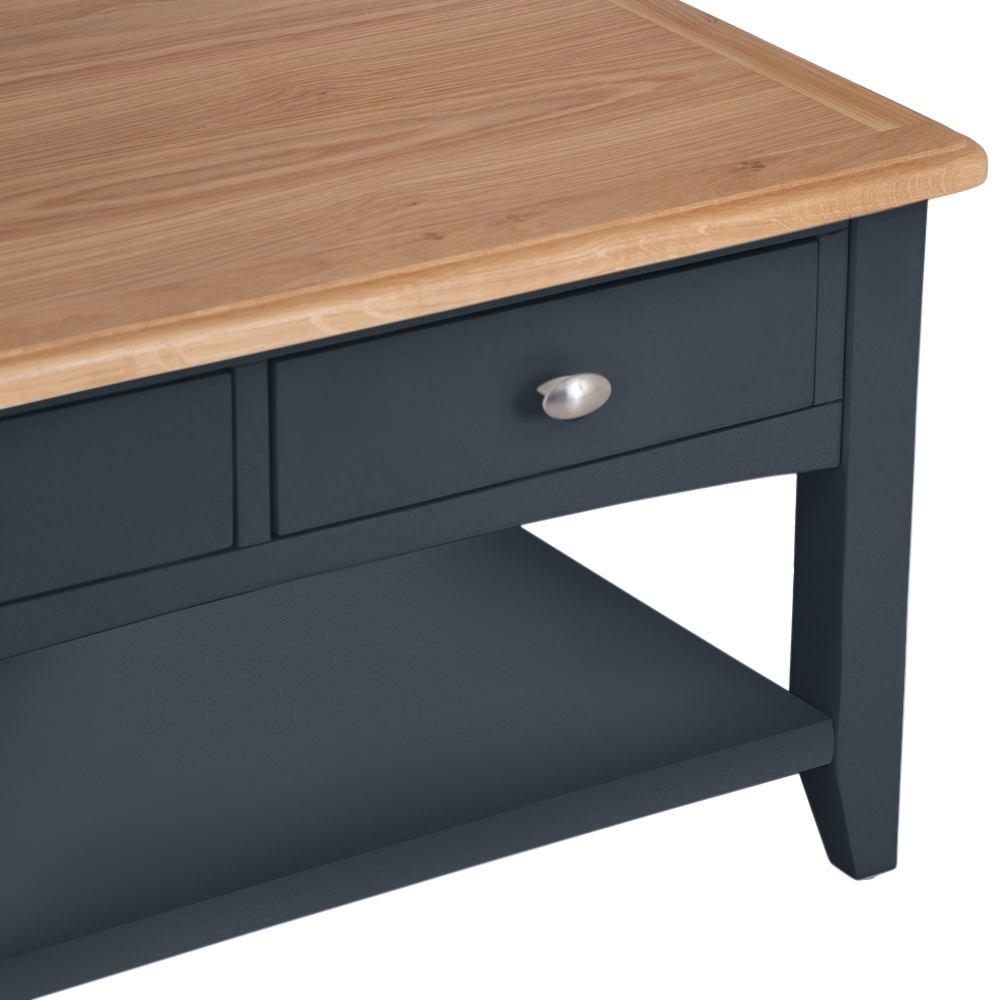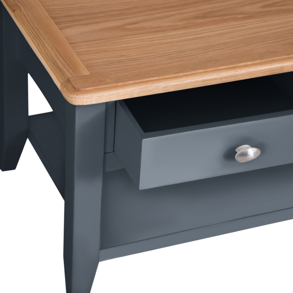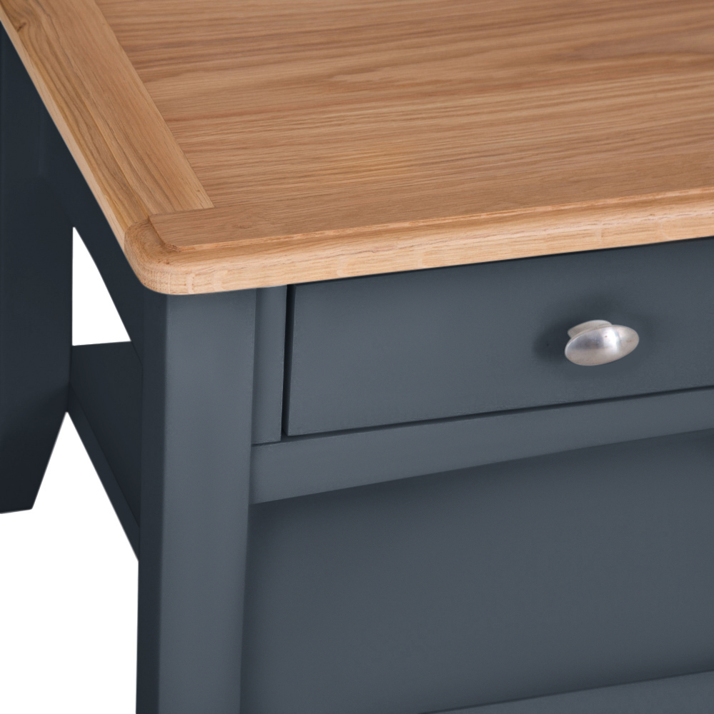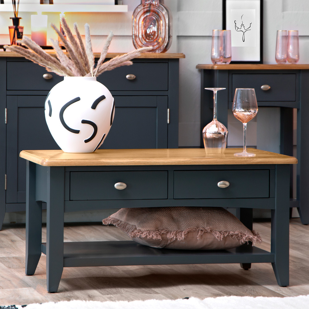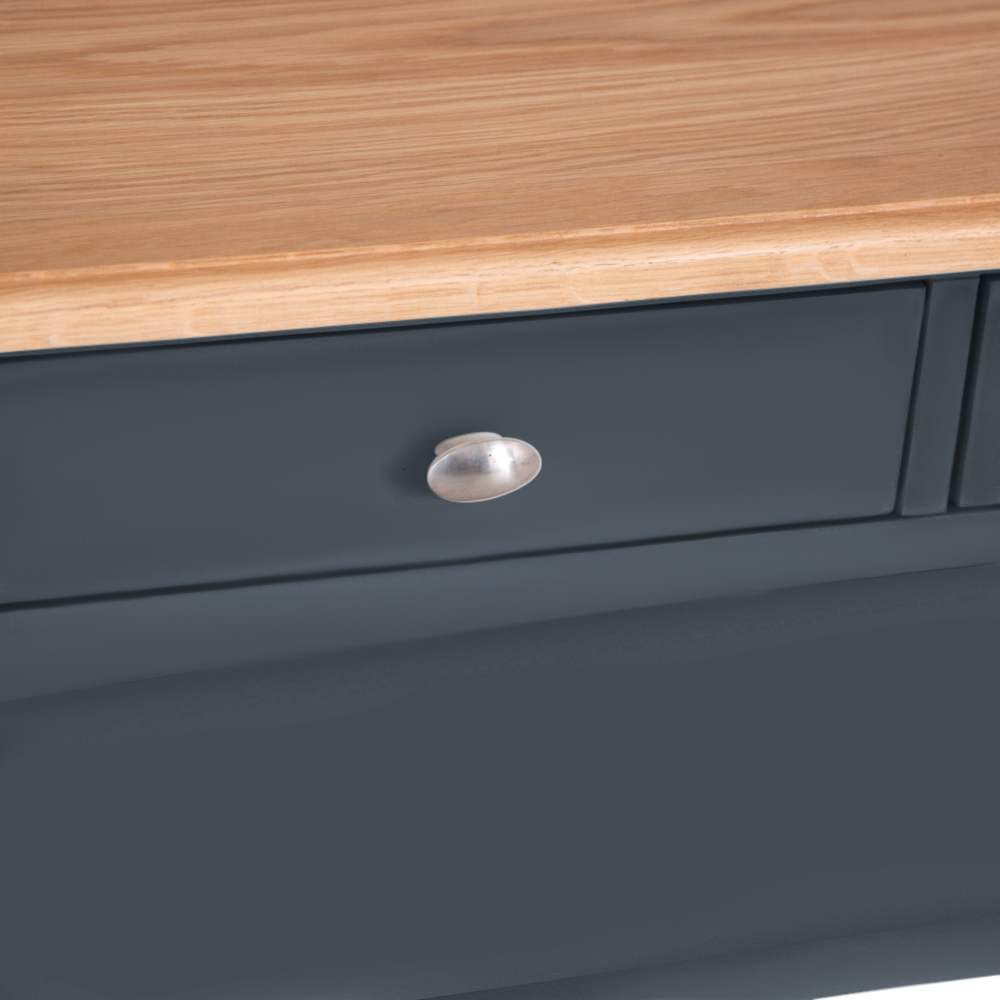 Modernise your Hallway, Bedroom, Living Room and Dining Room this season with the must-have Gloucester Midnight Grey Painted Oak Collection. A comprehensive collection of blue furniture, the most interesting feature of Gloucester Midnight Grey is the oblong brushed metal knob handle, which is unique amongst our painted collections. The subtlety of this handle allows the other stand-out characteristics of each furniture item to come to the fore, such as tapered legs and bevelled detailing on the top surface. Surprisingly versatile considering the eye-catching colour, and suitable for a host of interior styles, the grey paint used has some blue undertones which produces an unforgettable finish. This Range is also available from Chiltern Oak Furniture in an unpainted finish, called Gloucester Oak, and a White Painted finish, called Gloucester White.
