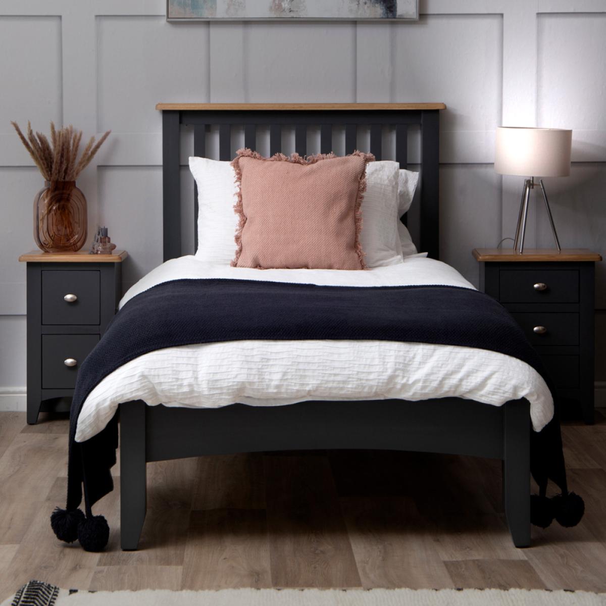 Modernise your Hallway, Bedroom, Living Room and Dining Room this season with the must-have Gloucester Midnight Grey Painted Collection. A comprehensive collection of grey furniture, the most interesting feature of Gloucester Midnight Grey is the oblong brushed metal knob handle, which is unique amongst our painted collections. The subtlety of this handle allows the other stand-out characteristics of each furniture item to come to the fore, such as tapered legs and bevelled detailing on the top surface. Surprisingly versatile considering the eye-catching colour, and suitable for a host of interior styles, the grey paint used has some blue undertones which produces an unforgettable finish. This Range is also available from Chiltern Oak Furniture in an unpainted finish, called Gloucester Oak, and a White Painted finish, called Gloucester White.