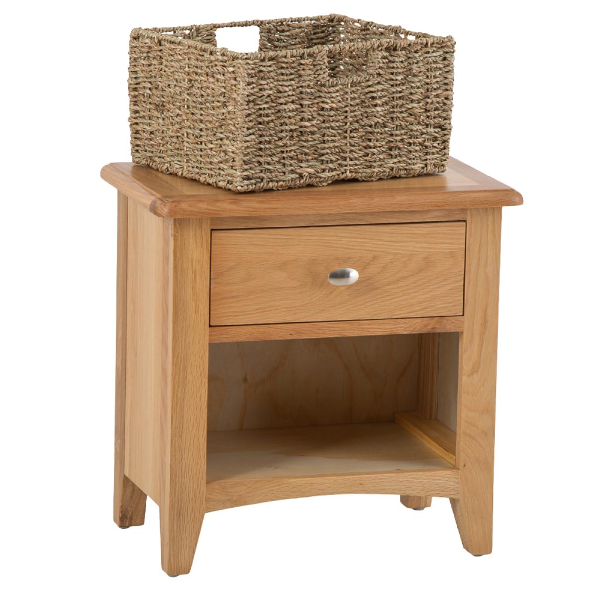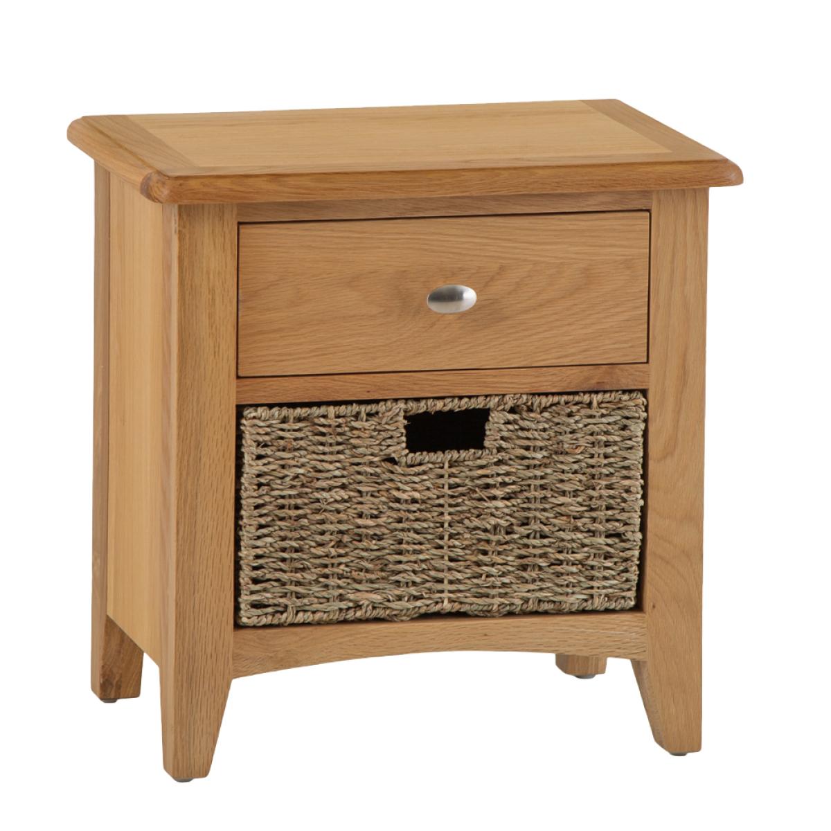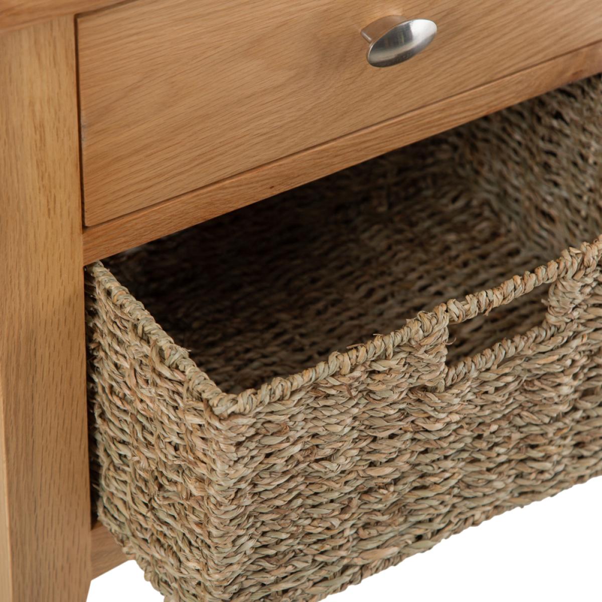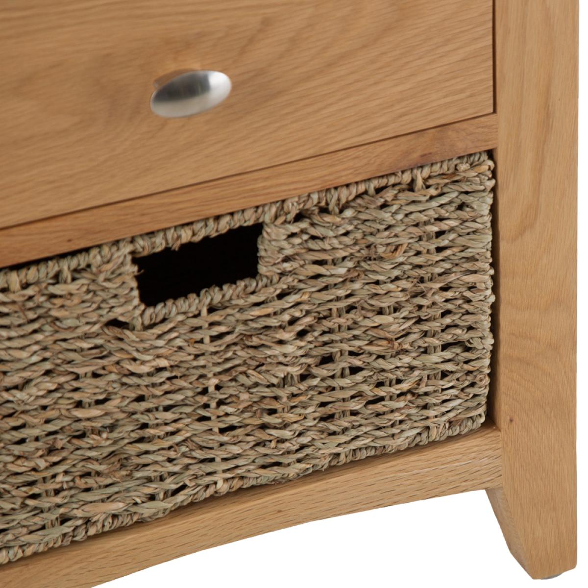 When it’s time for school but there are toys all over the floor, sweep them away into our Gloucester oak 1 drawer 1 wicker basket cabinet – you can deal with them properly later. This smart little cabinet is made from solid wood with a light lacquered finished that allows it to blend straight into wood-inspired decor. Its tapered legs, brushed metal drawer handle and sturdy surface make it a practical and urbane choice. It comes with a drawer and – below that – a shelf with a removable wicker basket.