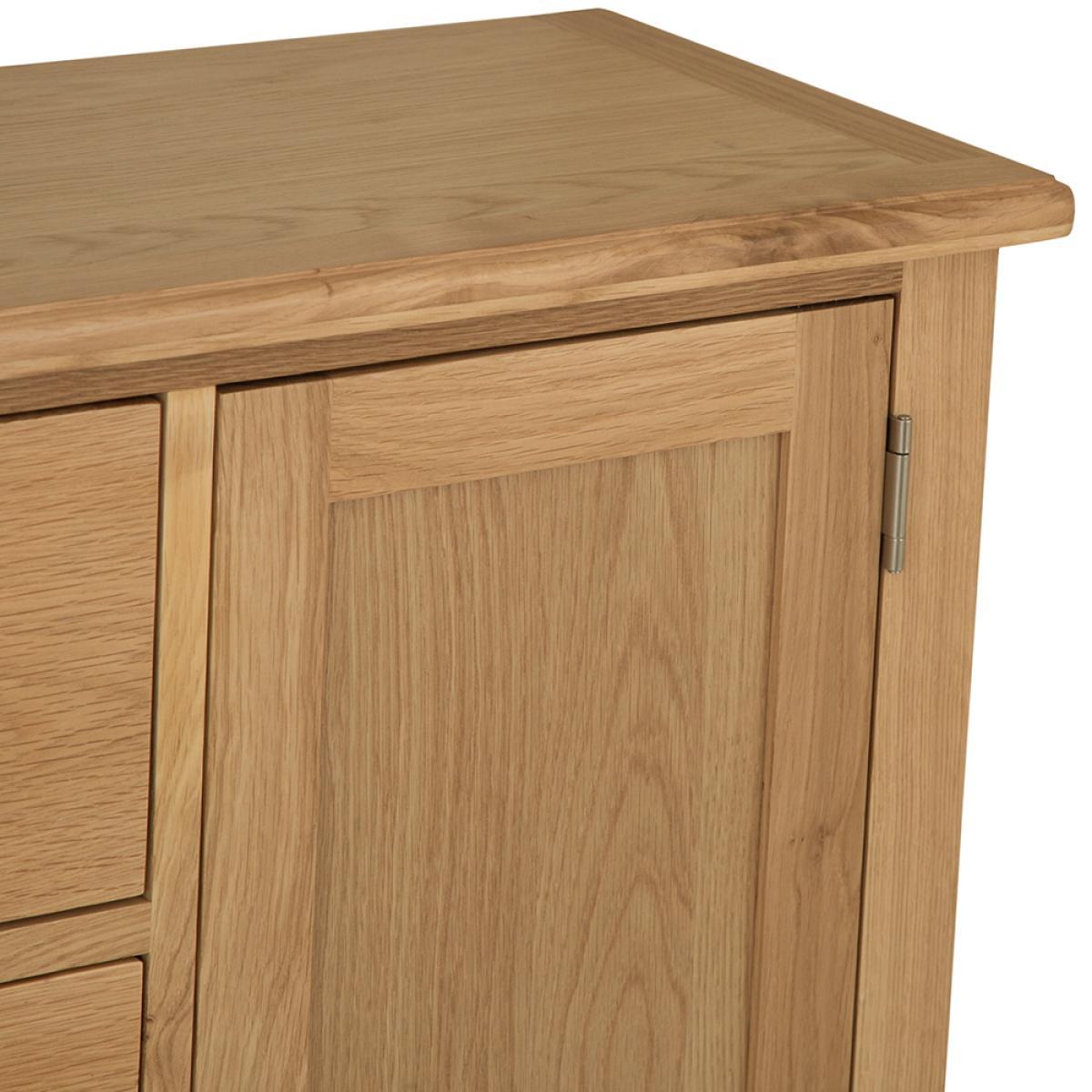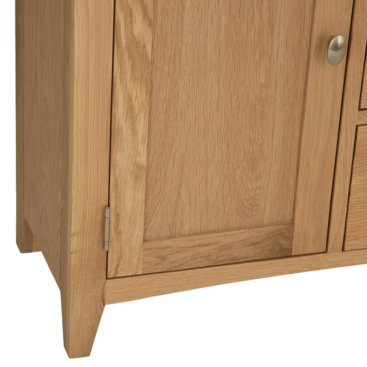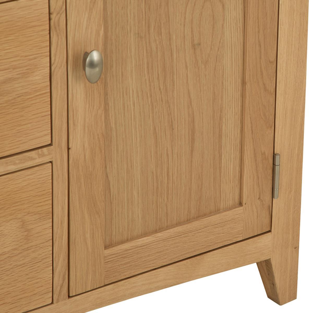 Lighten up your home this season with an injection of natural oak. Lovingly crafted from solid oak and real oak veneer, the Gloucester Oak Collection features dovetailed drawers and tapered legs as standard and offers exceptional value for money as a result. Offering a contemporary twist on a traditional style, look closely and you will see bevelled detailing on top surfaces and of course a unique brushed metal handle that really sets this range apart from any other. A versatile Collection of Living, Dining and Bedroom furniture, Gloucester Oak works wonderfully with a host of interior styles as a result of its natural, light appearance. Packed with detail and features you'd expect to find on furniture much more expensive, this is an oak furniture range that simply won't disappoint.