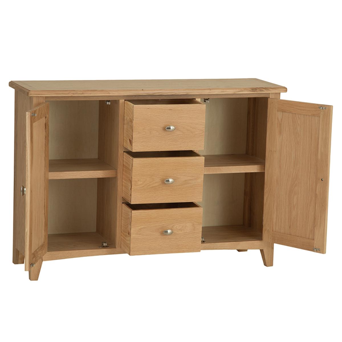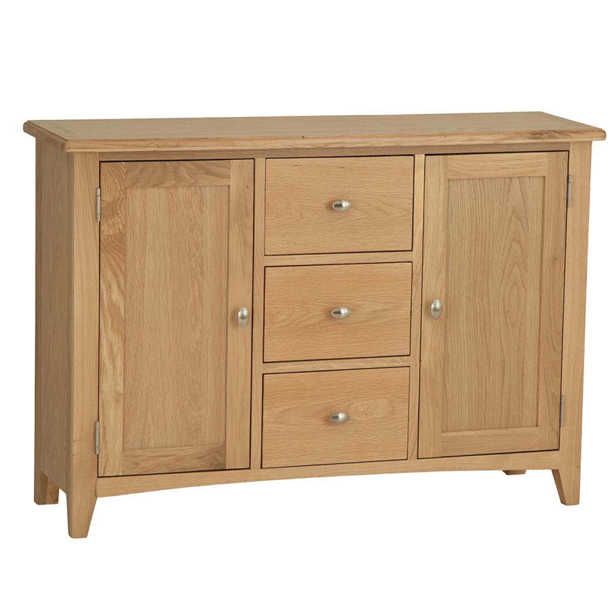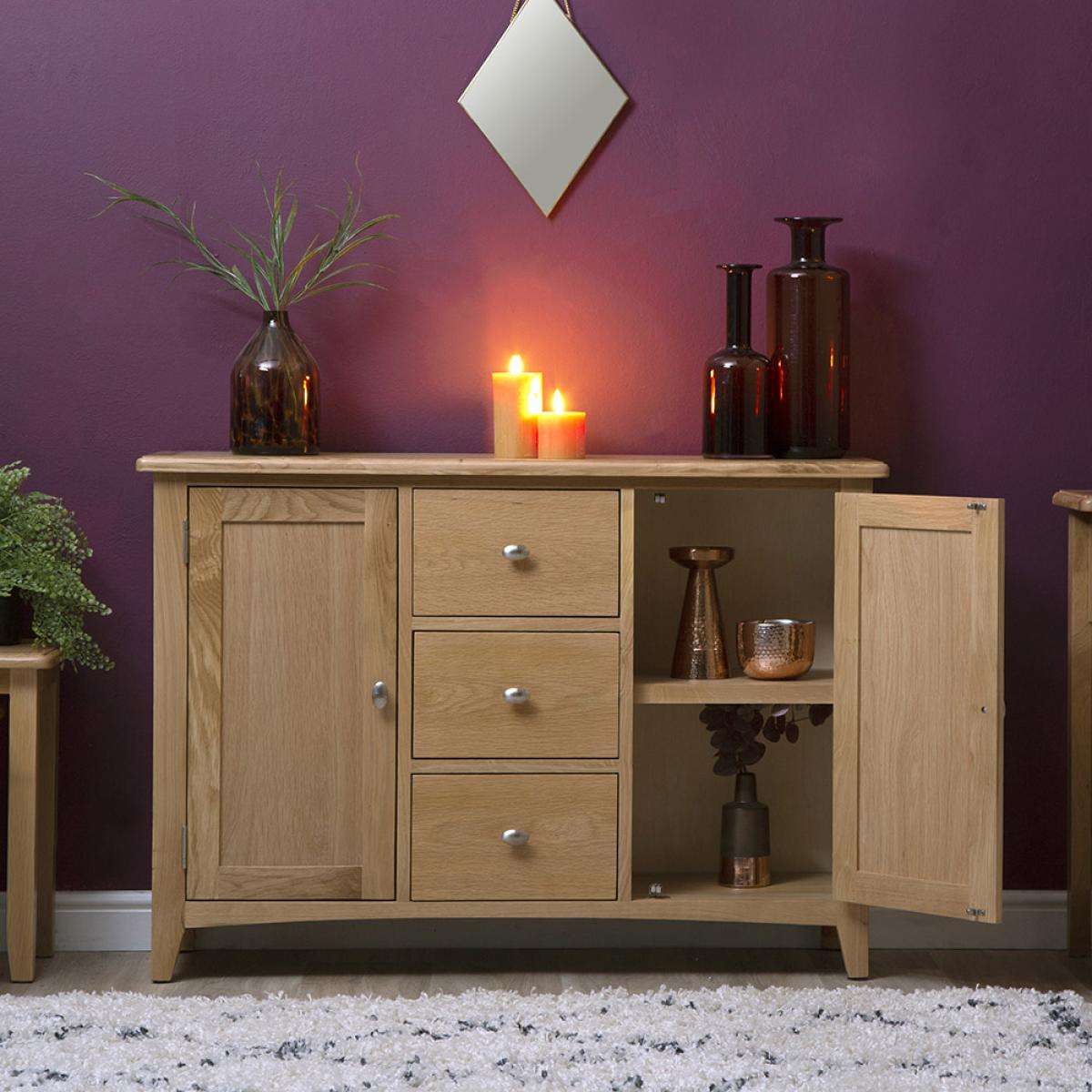 Lighten up your home this season with an injection of natural oak. Lovingly crafted from solid oak and real oak veneer, the Gloucester Oak Collection features dovetailed drawers and tapered legs as standard and offers exceptional value for money as a result. Offering a contemporary twist on a traditional style, look closely and you will see bevelled detailing on top surfaces and of course a unique brushed metal handle that really sets this range apart from any other. A versatile Collection of Living, Dining and Bedroom furniture, Gloucester Oak works wonderfully with a host of interior styles as a result of its natural, light appearance. Packed with detail and features you'd expect to find on furniture much more expensive, this is an oak furniture range that simply won't disappoint.