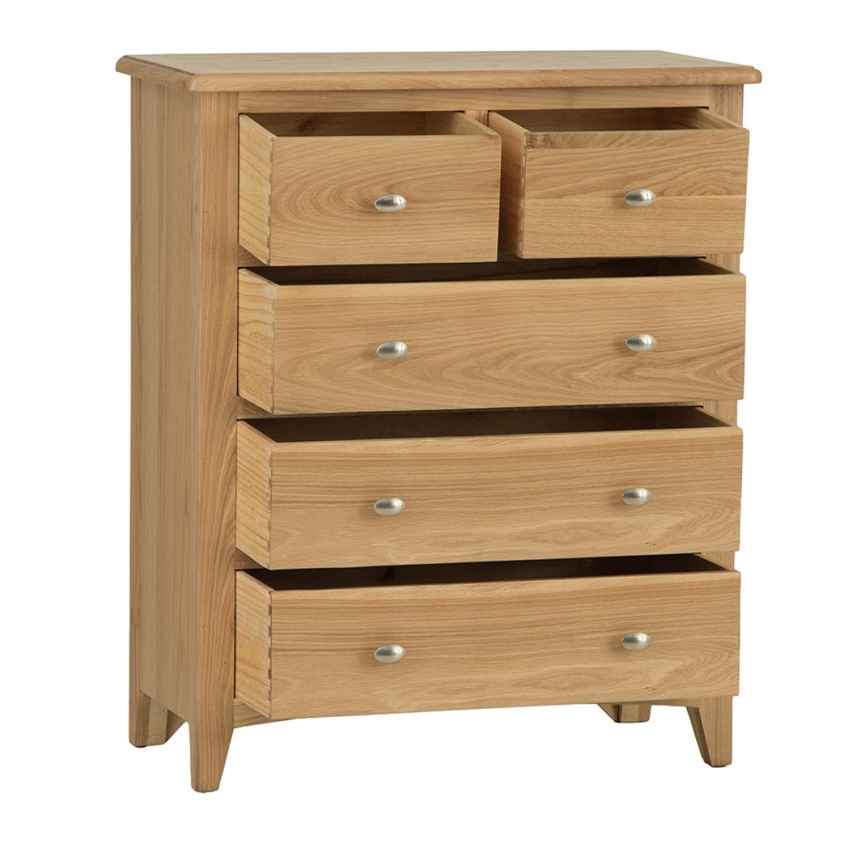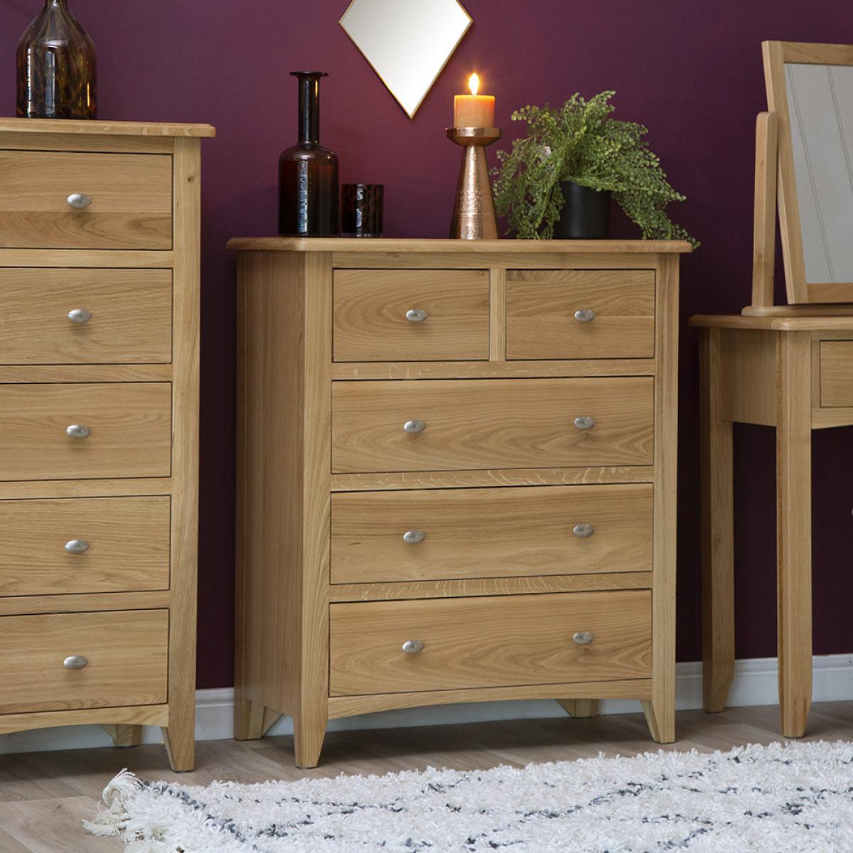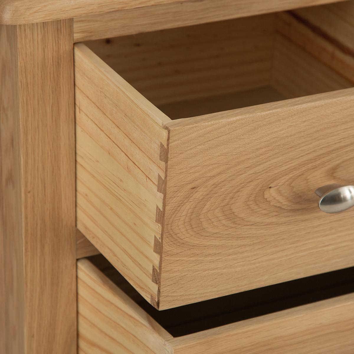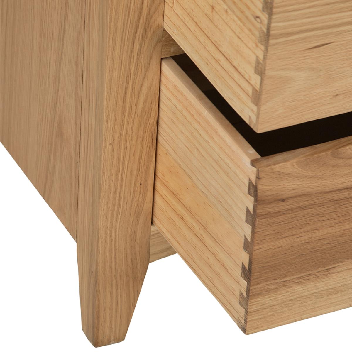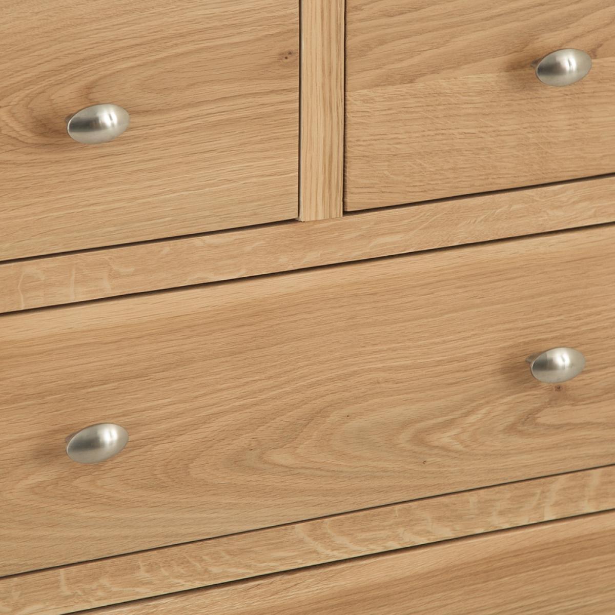 Lighten up your home this season with an injection of natural oak. Lovingly crafted from solid oak and real oak veneer, the Gloucester Oak Collection features dovetailed drawers and tapered legs as standard and offers exceptional value for money as a result. Offering a contemporary twist on a traditional style, look closely and you will see bevelled detailing on top surfaces and of course a unique brushed metal handle that really sets this range apart from any other. A versatile Collection of Living, Dining and Bedroom furniture, Gloucester Oak works wonderfully with a host of interior styles as a result of its natural, light appearance. Packed with detail and features you'd expect to find on furniture much more expensive, this is an oak furniture range that simply won't disappoint.