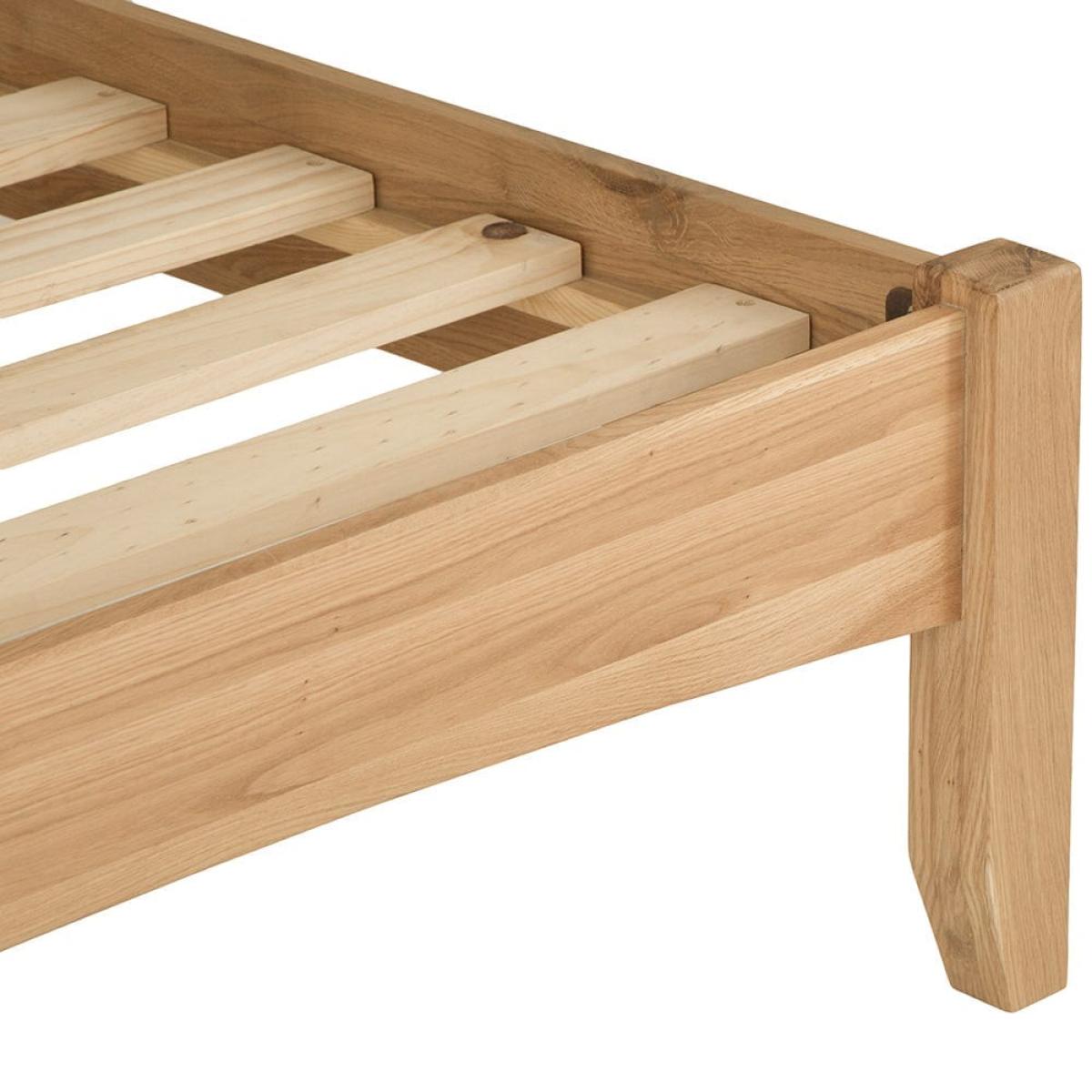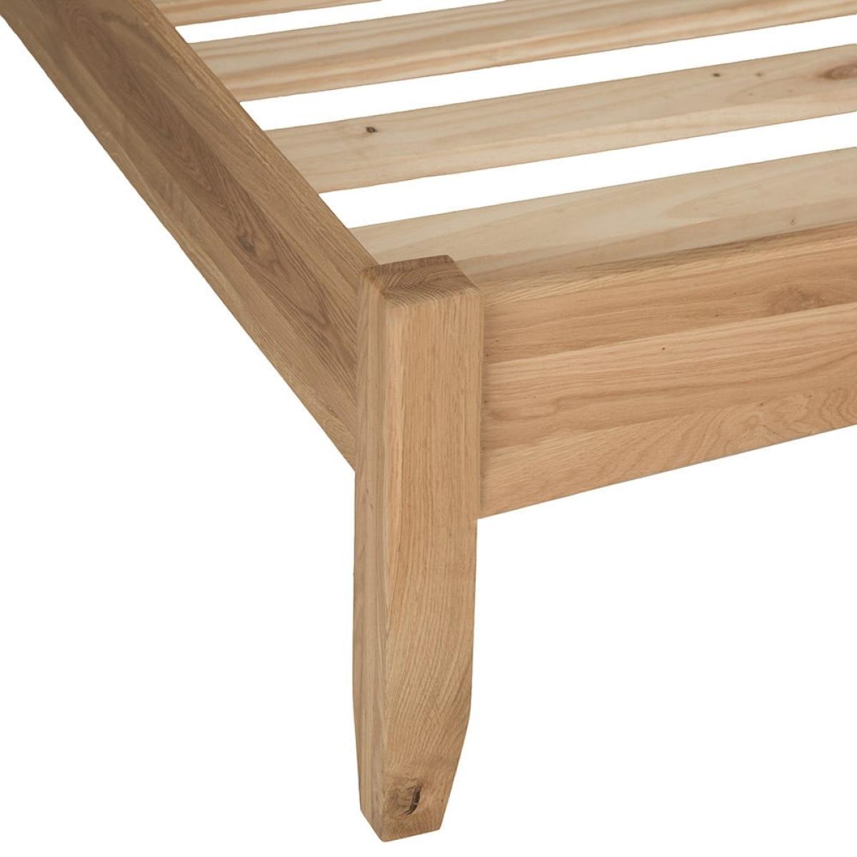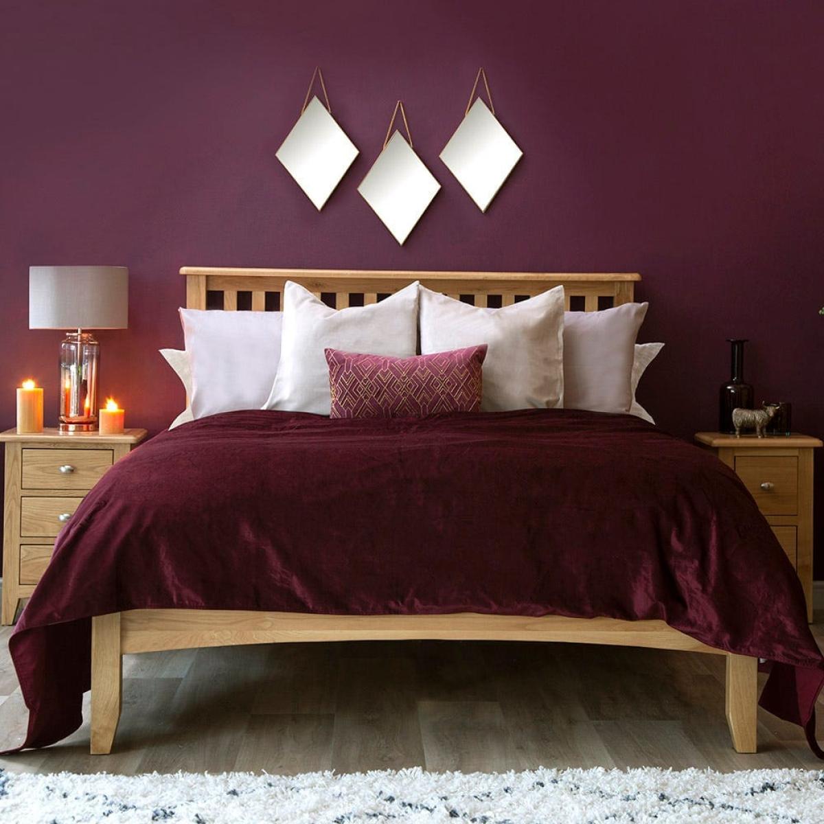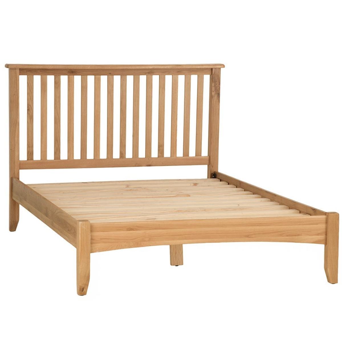 After a long week, you’ll drift off to sleep with ease when you’re lying on one of our Gloucester oak double bed frames. It’s made from solid wood with a light lacquered finish that makes it pop against dark walls and blend in with pastel colour themes. The slatted headboard gives reliable support, while the low footboard means there’s room for tall snoozers to stretch out without feeling hemmed in. Its double size gives it lots of space for fluffy duvets, piles of pillows and perhaps even a soft toy or two.