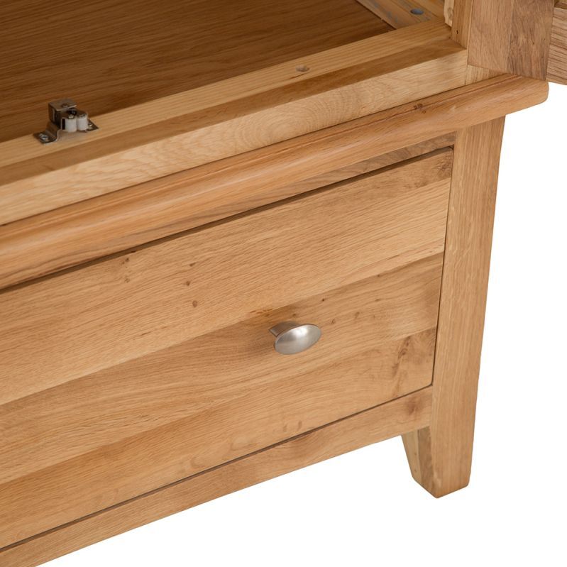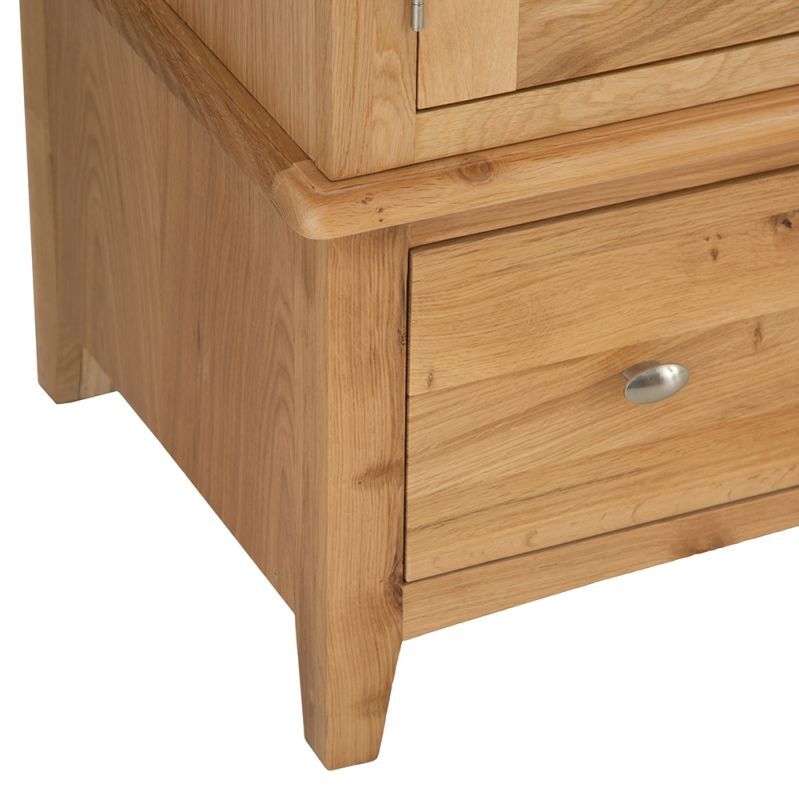 Lighten up your home this season with an injection of natural oak. Lovingly crafted from solid oak and real oak veneer, the Gloucester Oak Collection features dovetailed drawers and tapered legs as standard and offers exceptional value for money as a result. Offering a contemporary twist on a traditional style, look closely and you will see bevelled detailing on top surfaces and of course a unique brushed metal handle that really sets this range apart from any other. A versatile Collection of Living, Dining and Bedroom furniture, Gloucester Oak works wonderfully with a host of interior styles as a result of its natural, light appearance. Packed with detail and features you'd expect to find on furniture much more expensive, this is an oak furniture range that simply won't disappoint.