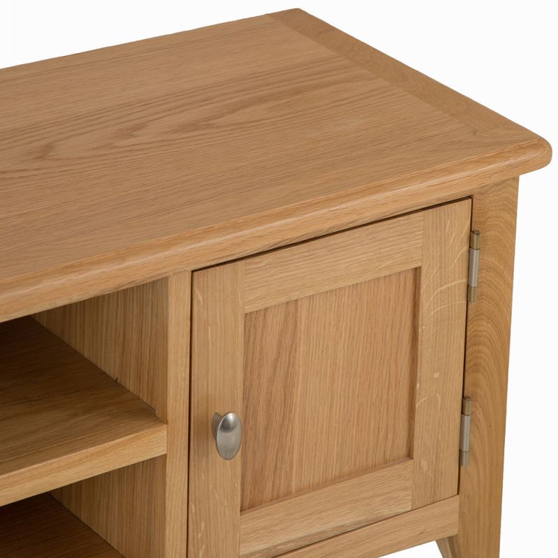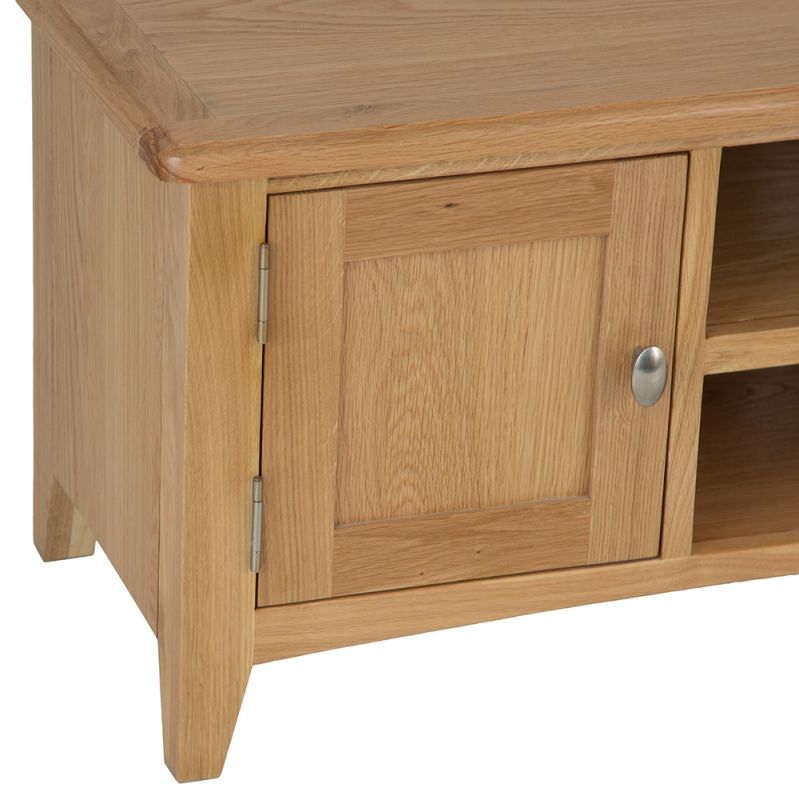 Lighten up your home this season with an injection of natural oak. Lovingly crafted from solid oak and real oak veneer, the Gloucester Oak Collection features dovetailed drawers and tapered legs as standard and offers exceptional value for money as a result. Offering a contemporary twist on a traditional style, look closely and you will see bevelled detailing on top surfaces and of course a unique brushed metal handle that really sets this range apart from any other. A versatile Collection of Living, Dining and Bedroom furniture, Gloucester Oak works wonderfully with a host of interior styles as a result of its natural, light appearance. Packed with detail and features you'd expect to find on furniture much more expensive, this is an oak furniture range that simply won't disappoint.