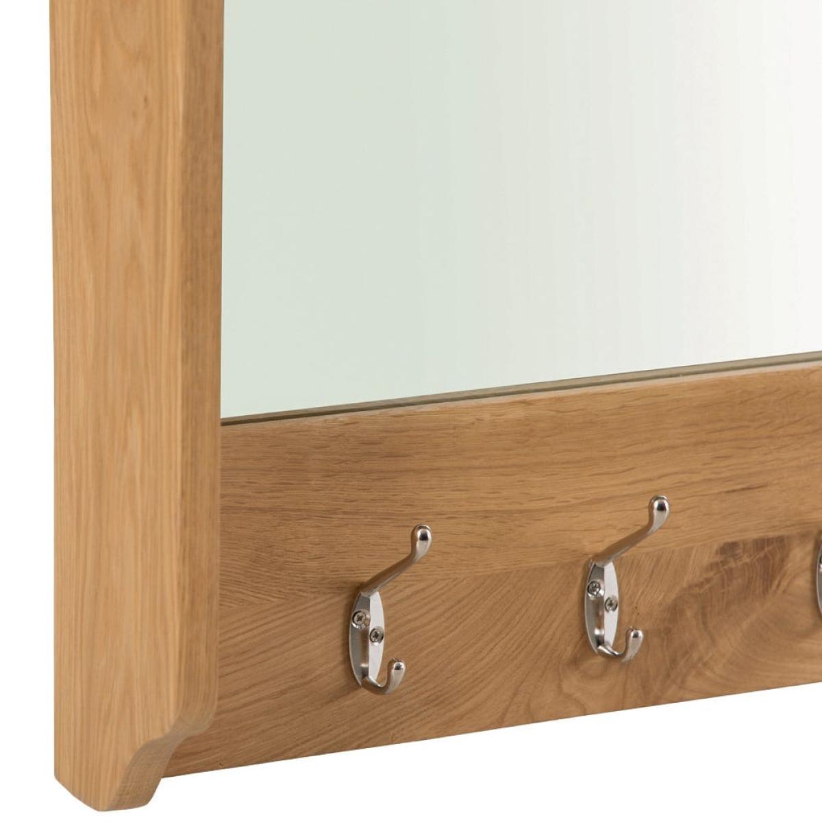 Before you leave the house, take a quick peek in your Gloucester oak mirrored coat rack to ensure your hair looks just as good as it did in your bedroom. This solid wood piece has retained its natural grain and has a lacquered finish. Its light shade makes it a versatile choice – fitting in with both dark and neutral colour schemes. This coat rack’s uses are twofold: it’s not just a large mirror, there are also five secure metal pegs beneath it. Assign one to each member of the family where they can hang their coats, scarves, backpacks and keys.