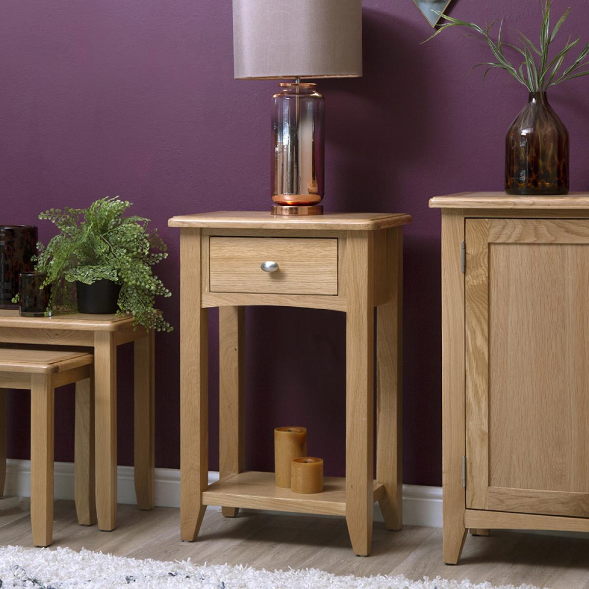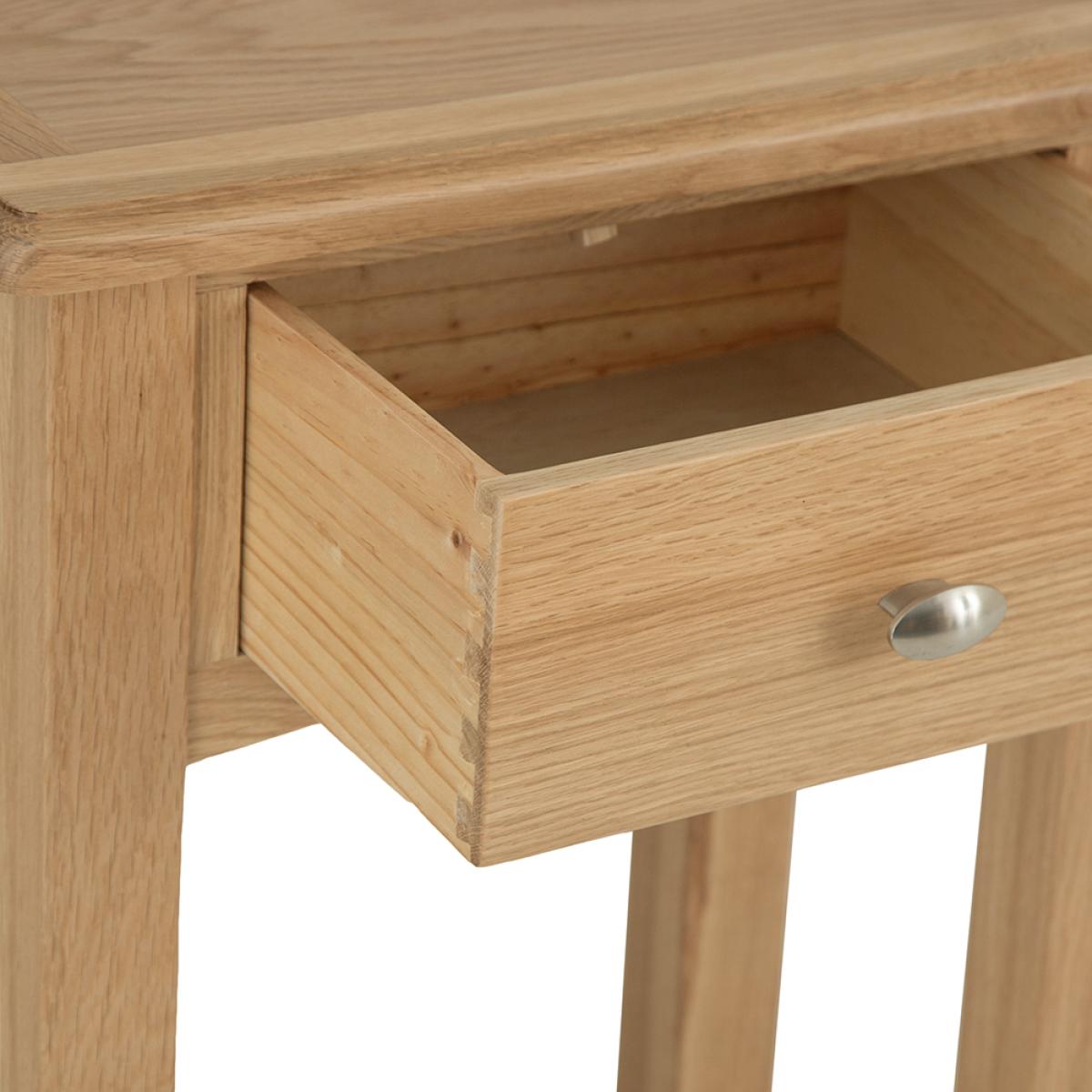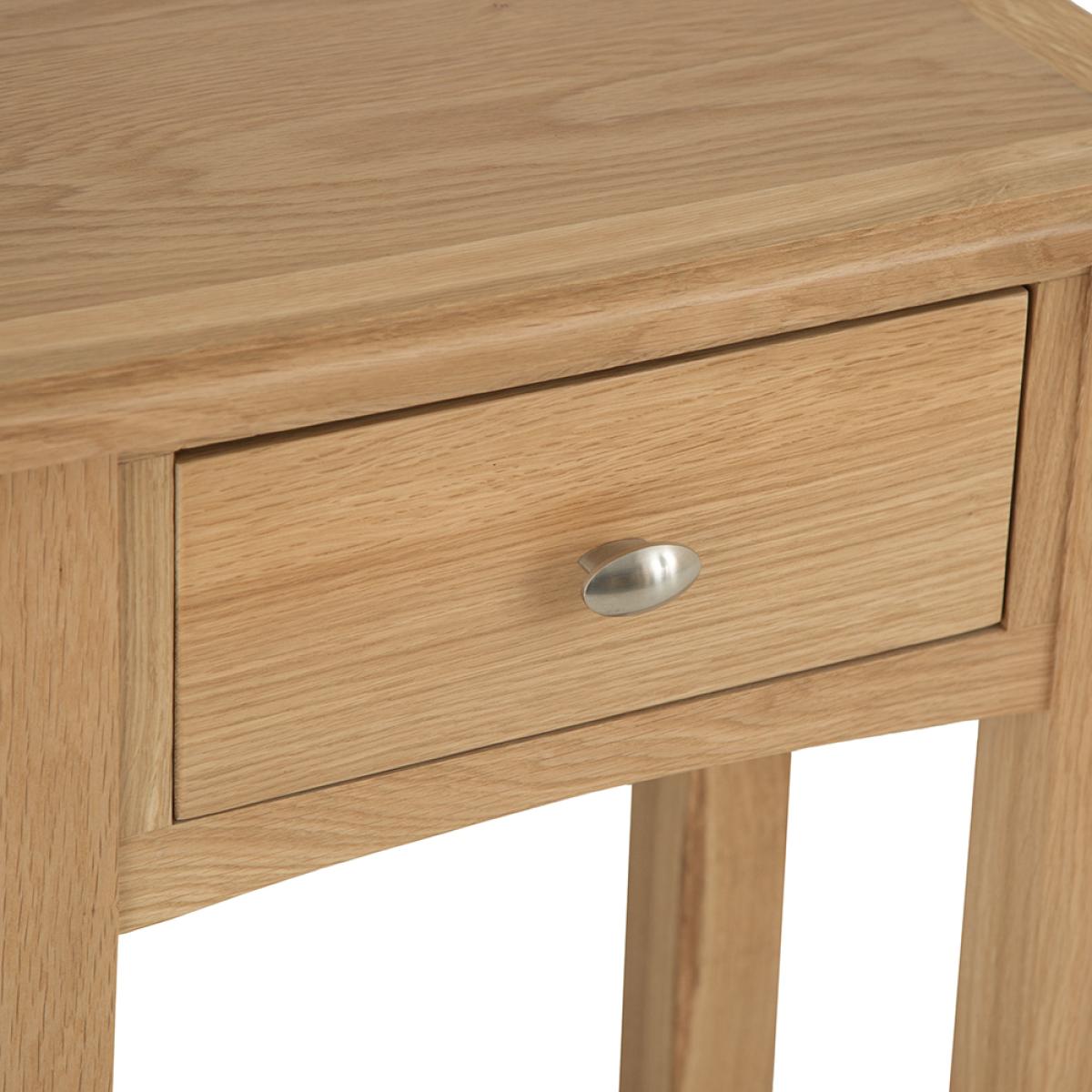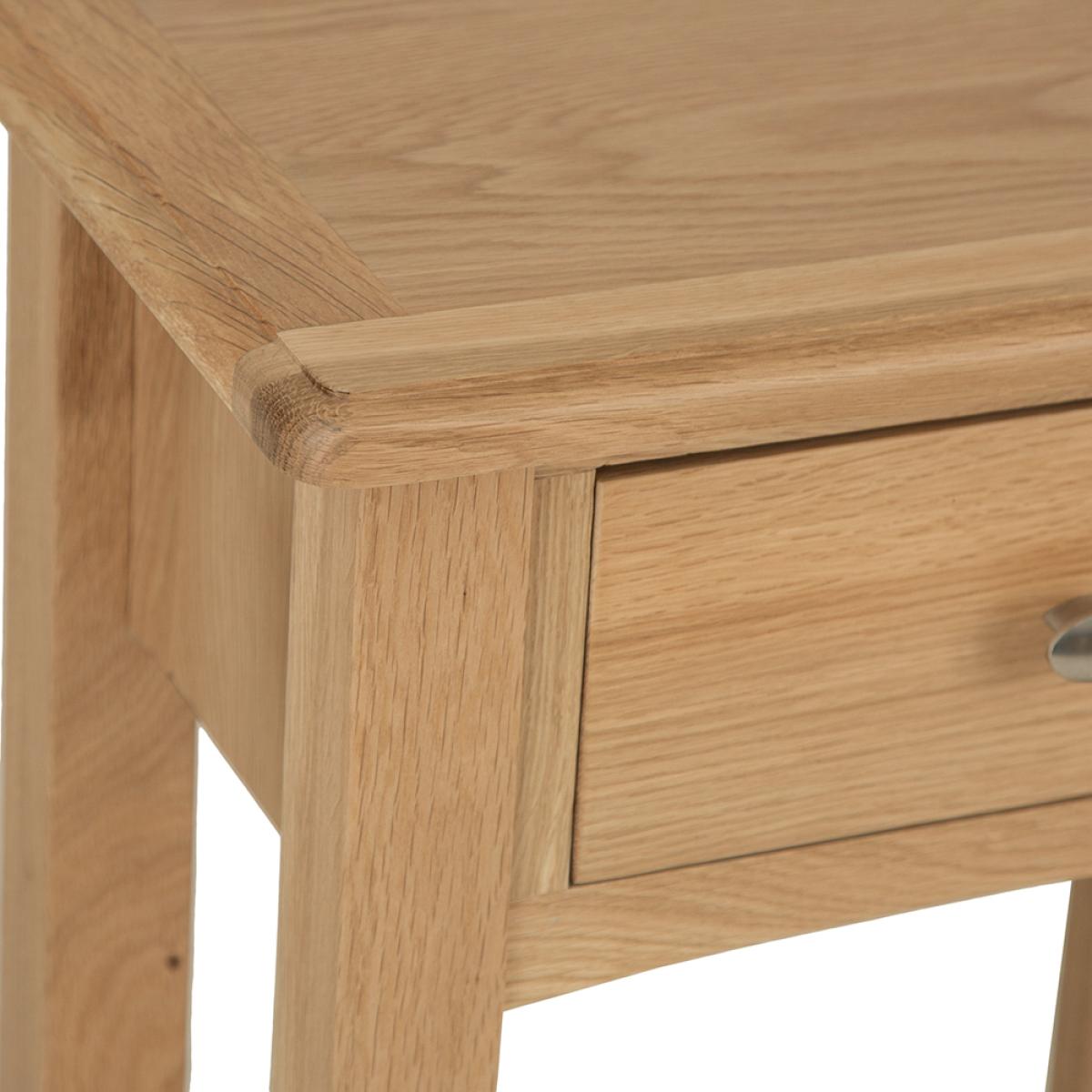 Lighten up your home this season with an injection of natural oak. Lovingly crafted from solid oak and real oak veneer, the Gloucester Oak Collection features dovetailed drawers and tapered legs as standard and offers exceptional value for money as a result. Offering a contemporary twist on a traditional style, look closely and you will see bevelled detailing on top surfaces and of course a unique brushed metal handle that really sets this range apart from any other. A versatile Collection of Living, Dining and Bedroom furniture, Gloucester Oak works wonderfully with a host of interior styles as a result of its natural, light appearance. Packed with detail and features you'd expect to find on furniture much more expensive, this is an oak furniture range that simply won't disappoint.