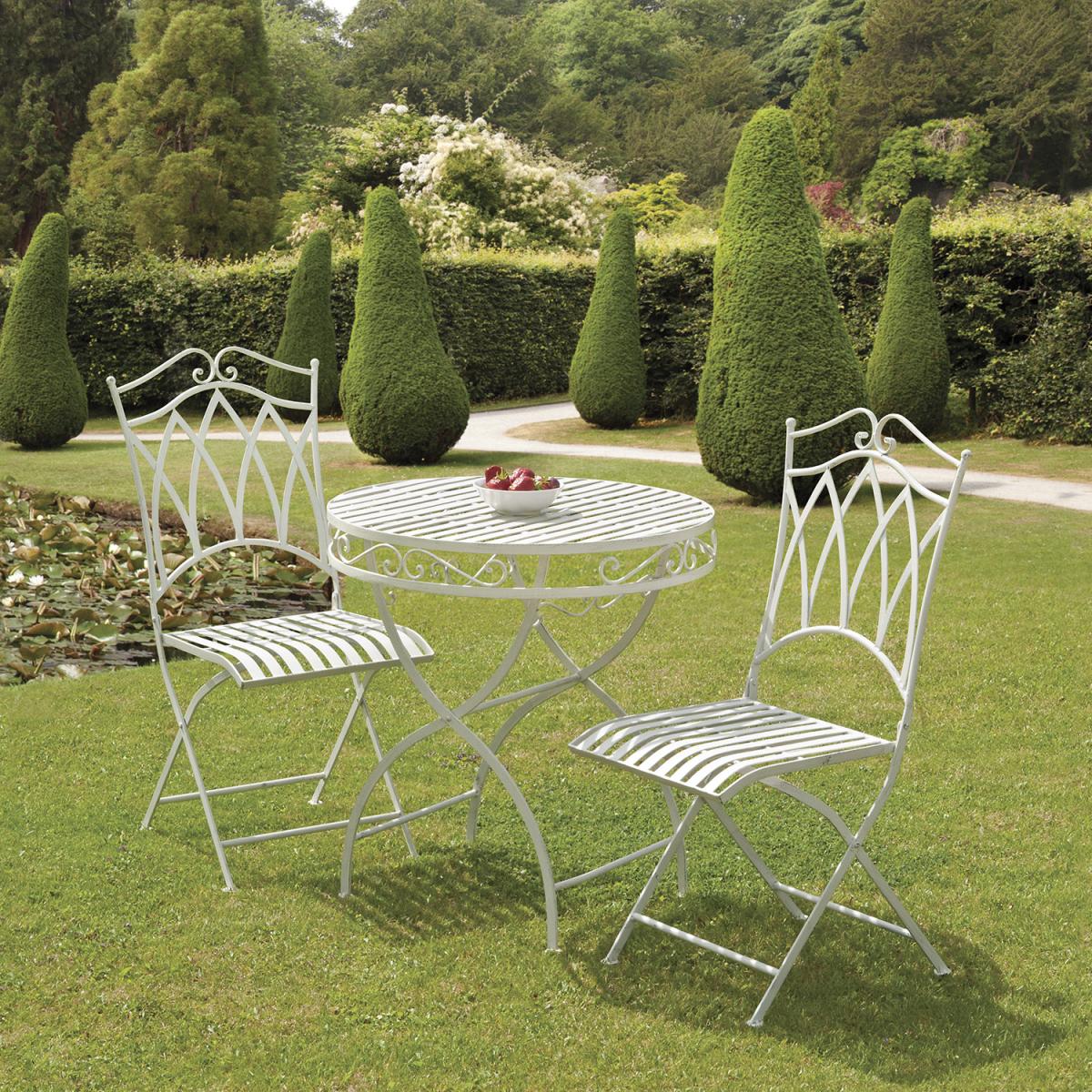 With elegant scrolling and gothic-style iron work our Gloucester White Cast Iron Bistro Set is ideal for either traditional or contemporary garden, patio or conservatory settings. The chairs fold away flat for easy storage and have rounded button feet for surface protection. The set has a soft antique white colour and delicately distressed pattern to blend with any decor.