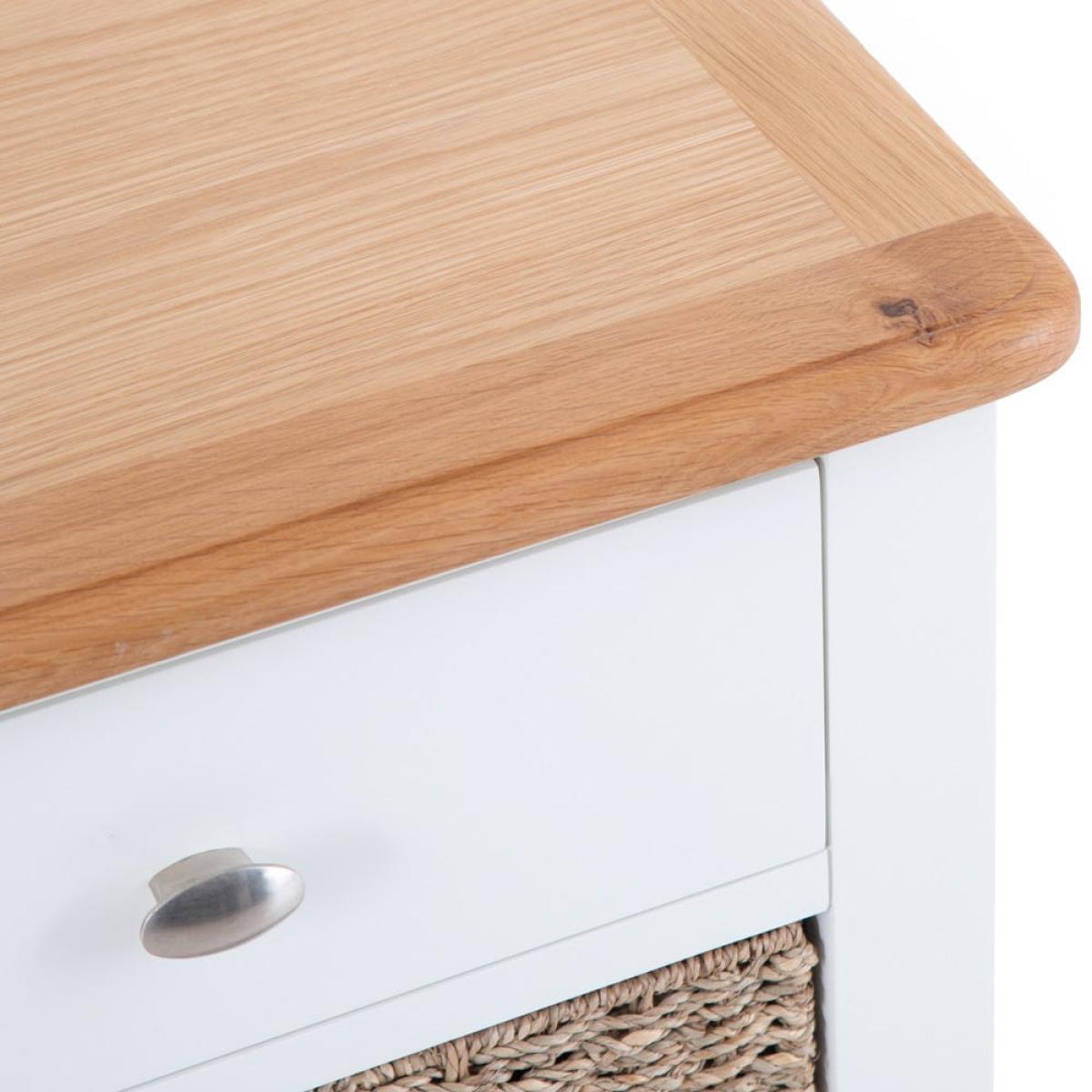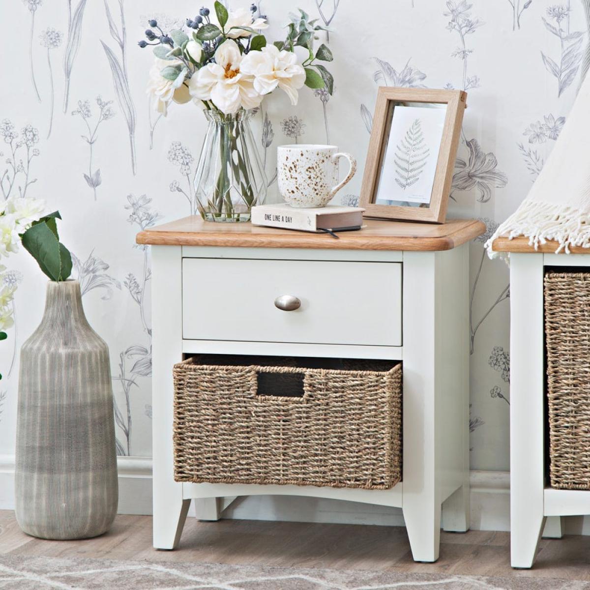 Your child can keep their toys, books and games at hand – great if they’re prone to waking up early at weekends – in our Gloucester white painted 1 drawer 1 wicker basket cabinet. This homely piece is made from solid wood that’s painted white to match the decor in either a child or adult’s bedroom. The contrasting coloured surface and tapered legs speak to a country style of craftsmanship. There’s a drawer for story and nursery rhyme books and a removable wicker basket that’ll help them practise tidying away the day’s fun when evening falls. Please note:This item is not pure/brilliant White. It is an off-white, described as 'old white'.