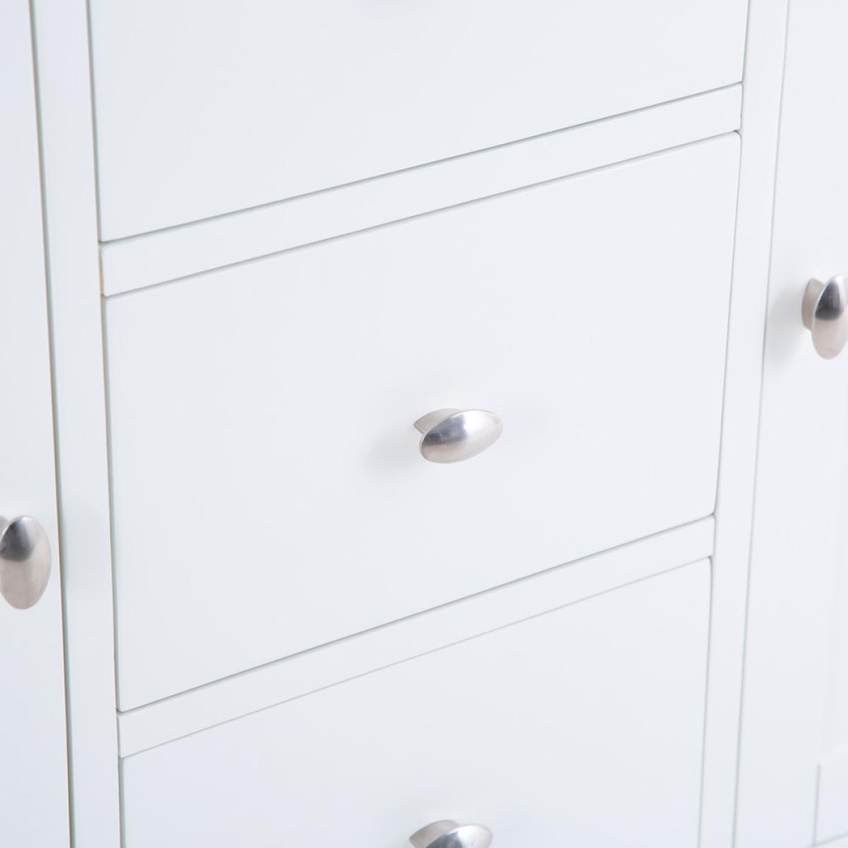 Brighten up and modernise your Hallway, Bedroom, Living Room and Dining Room this season with the must-have Gloucester White Painted Collection. A comprehensive collection of white furniture, the most interesting feature of Gloucester White is the oblong brushed metal knob handle, which is unique amongst our painted collections. The subtlety of this handle allows the other stand-out characteristics of each furniture item to come to the fore, such as tapered legs and bevelled detailing on the top surface. The very slightly off-white paint used on this gorgeous Collection ensures a neutrality that makes this range an especially versatile one, complimenting a host of interior colours and styles. This Range is also available from Chiltern Oak Furniture in an unpainted finish, called Gloucester Oak, and a Grey Painted finish, called Gloucester Midnight Grey.