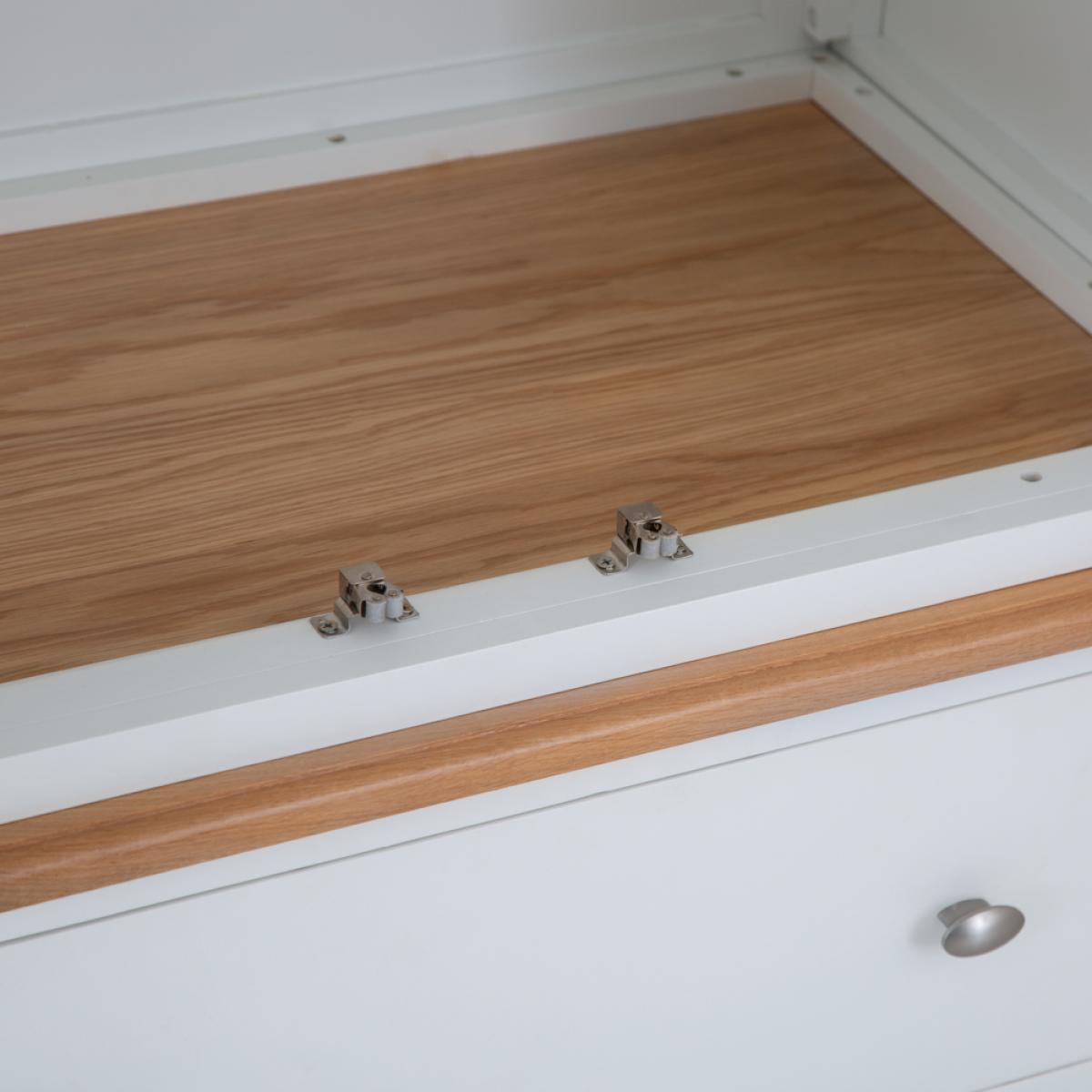 Brighten up and modernise your Hallway, Bedroom, Living Room and Dining Room this season with the must-have Gloucester White Painted Collection. A comprehensive collection of white furniture, the most interesting feature of Gloucester White is the oblong brushed metal knob handle, which is unique amongst our painted collections. The subtlety of this handle allows the other stand-out characteristics of each furniture item to come to the fore, such as tapered legs and bevelled detailing on the top surface. The very slightly off-white paint used on this gorgeous Collection ensures a neutrality that makes this range an especially versatile one, complimenting a host of interior colours and styles. This Range is also available from Chiltern Oak Furniture in an unpainted finish, called Gloucester Oak, and a Grey Painted finish, called Gloucester Midnight Grey.