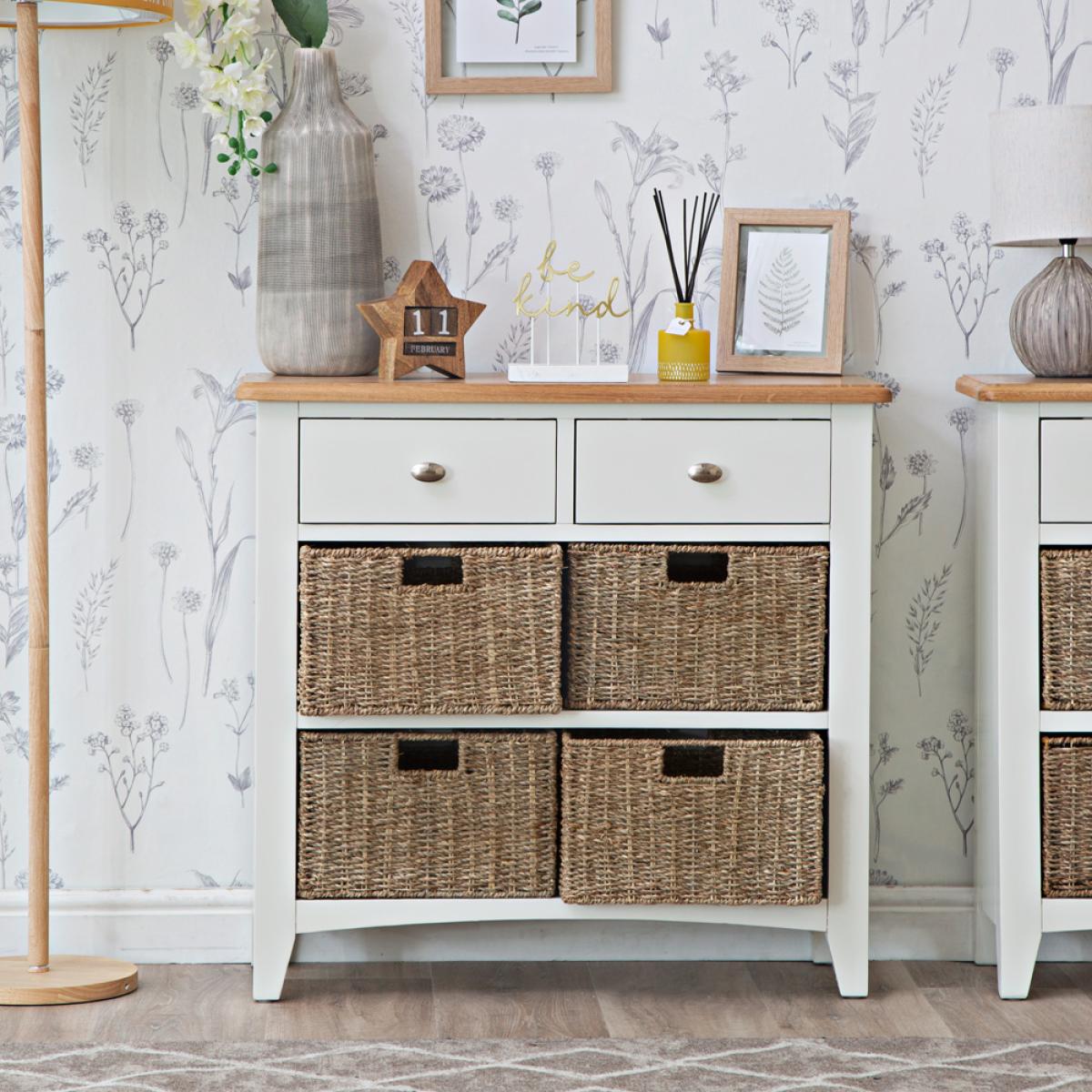 Brighten up and modernise your Hallway, Bedroom, Living Room and Dining Room this season with the must-have Gloucester White Painted Collection. A comprehensive collection of white furniture, the most interesting feature of Gloucester White is the oblong brushed metal knob handle, which is unique amongst our painted collections. The subtlety of this handle allows the other stand-out characteristics of each furniture item to come to the fore, such as tapered legs and bevelled detailing on the top surface. The very slightly off-white paint used on this gorgeous Collection ensures a neutrality that makes this range an especially versatile one, complimenting a host of interior colours and styles. This Range is also available from Chiltern Oak Furniture in an unpainted finish, called Gloucester Oak, and a Grey Painted finish, called Gloucester Midnight Grey.