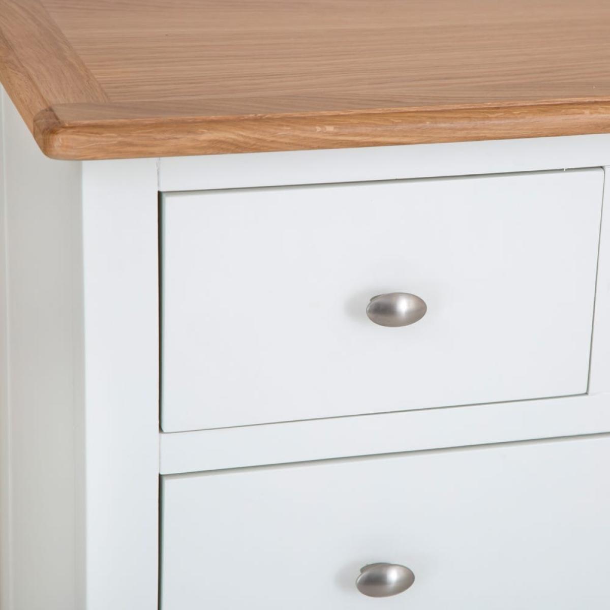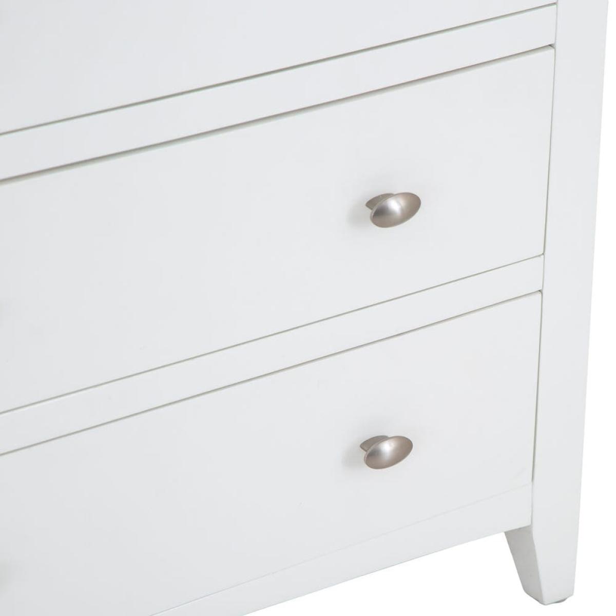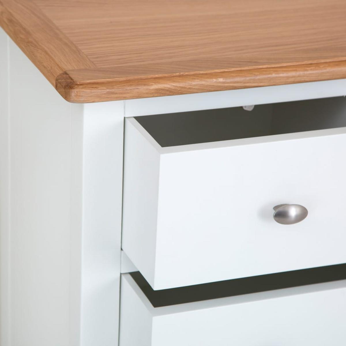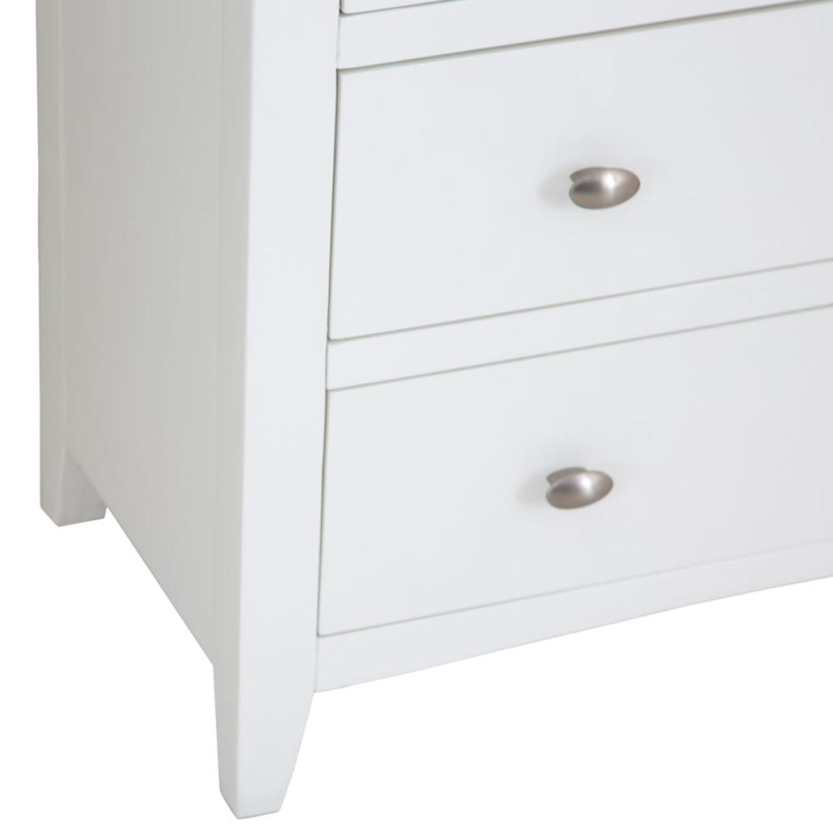 Grab your gym stuff quickly when you’re up early to work out. They’ll be close at hand when you have our Gloucester white painted 2 over 3 chest in your room. Its solid wood frame brings a touch of farmhouse living to your bedroom – with a modern, white-finished twist. A sturdy contrasting coloured surface and strong tapered legs add to this old-school aesthetic. Two smaller drawers sit at the top to keep your smalls and socks safe. Three larger ones are stacked underneath them – use these for joggers, gym tees and sporty tank tops. Please note: This item is not pure/brilliant White. It is an off-white, described as 'old white'.