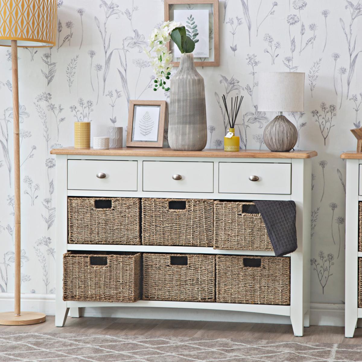 Brighten up and modernise your Hallway, Bedroom, Living Room and Dining Room this season with the must-have Gloucester White Painted Collection. A comprehensive collection of white furniture, the most interesting feature of Gloucester White is the oblong brushed metal knob handle, which is unique amongst our painted collections. The subtlety of this handle allows the other stand-out characteristics of each furniture item to come to the fore, such as tapered legs and bevelled detailing on the top surface. The very slightly off-white paint used on this gorgeous Collection ensures a neutrality that makes this range an especially versatile one, complimenting a host of interior colours and styles. This Range is also available from Chiltern Oak Furniture in an unpainted finish, called Gloucester Oak, and a Grey Painted finish, called Gloucester Midnight Grey.