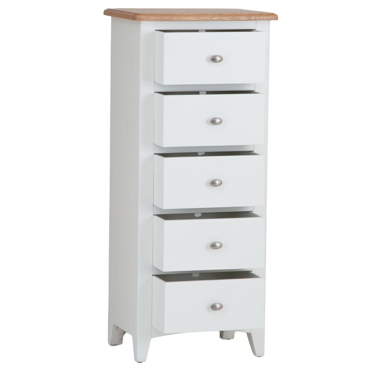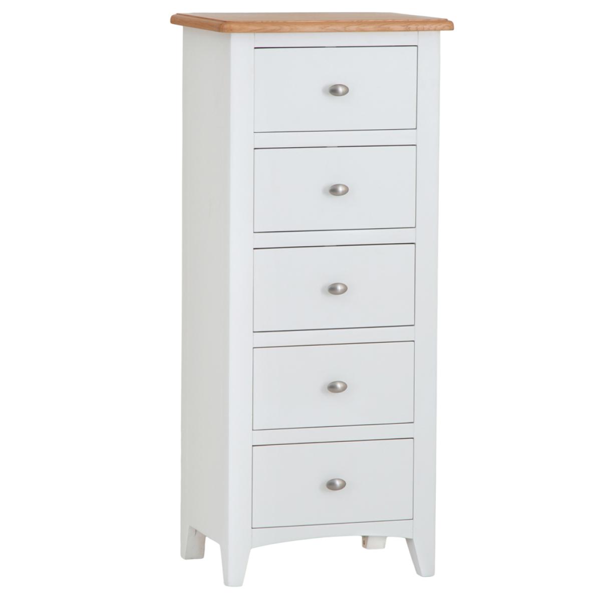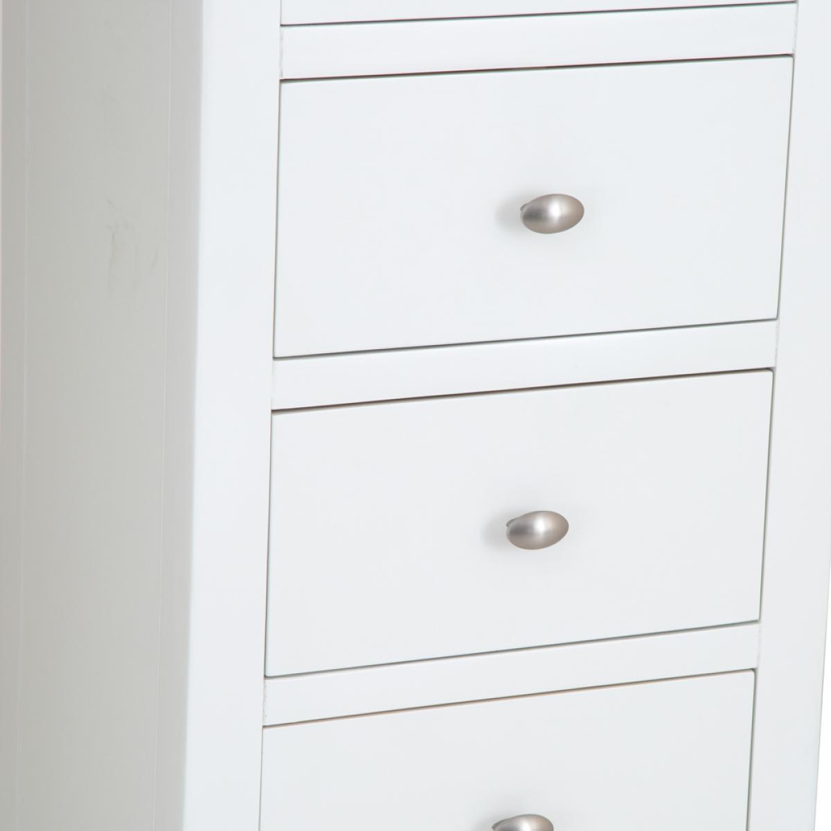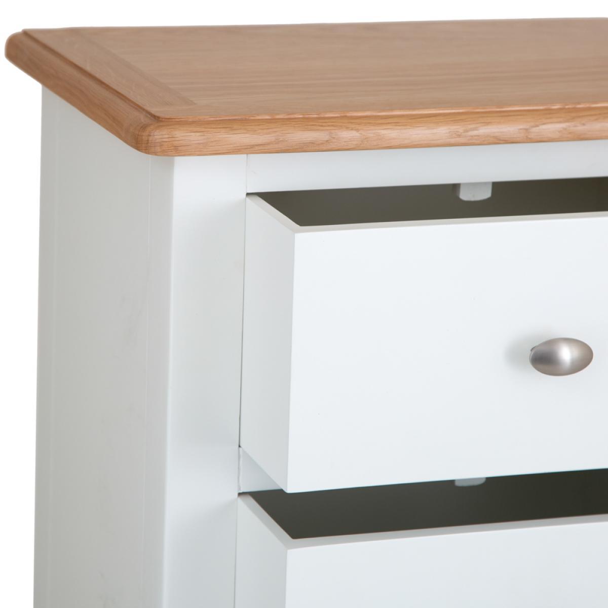 Brighten up and modernise your Hallway, Bedroom, Living Room and Dining Room this season with the must-have Gloucester White Painted Collection. A comprehensive collection of white furniture, the most interesting feature of Gloucester White is the oblong brushed metal knob handle, which is unique amongst our painted collections. The subtlety of this handle allows the other stand-out characteristics of each furniture item to come to the fore, such as tapered legs and bevelled detailing on the top surface. The very slightly off-white paint used on this gorgeous Collection ensures a neutrality that makes this range an especially versatile one, complimenting a host of interior colours and styles. This Range is also available from Chiltern Oak Furniture in an unpainted finish, called Gloucester Oak, and a Grey Painted finish, called Gloucester Midnight Grey.