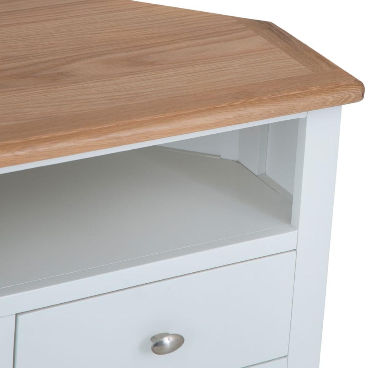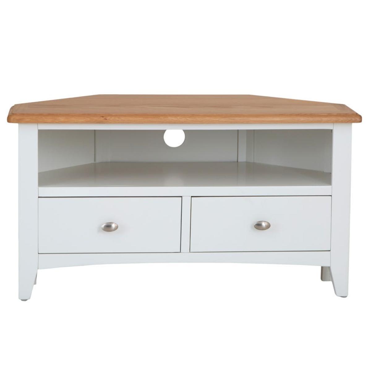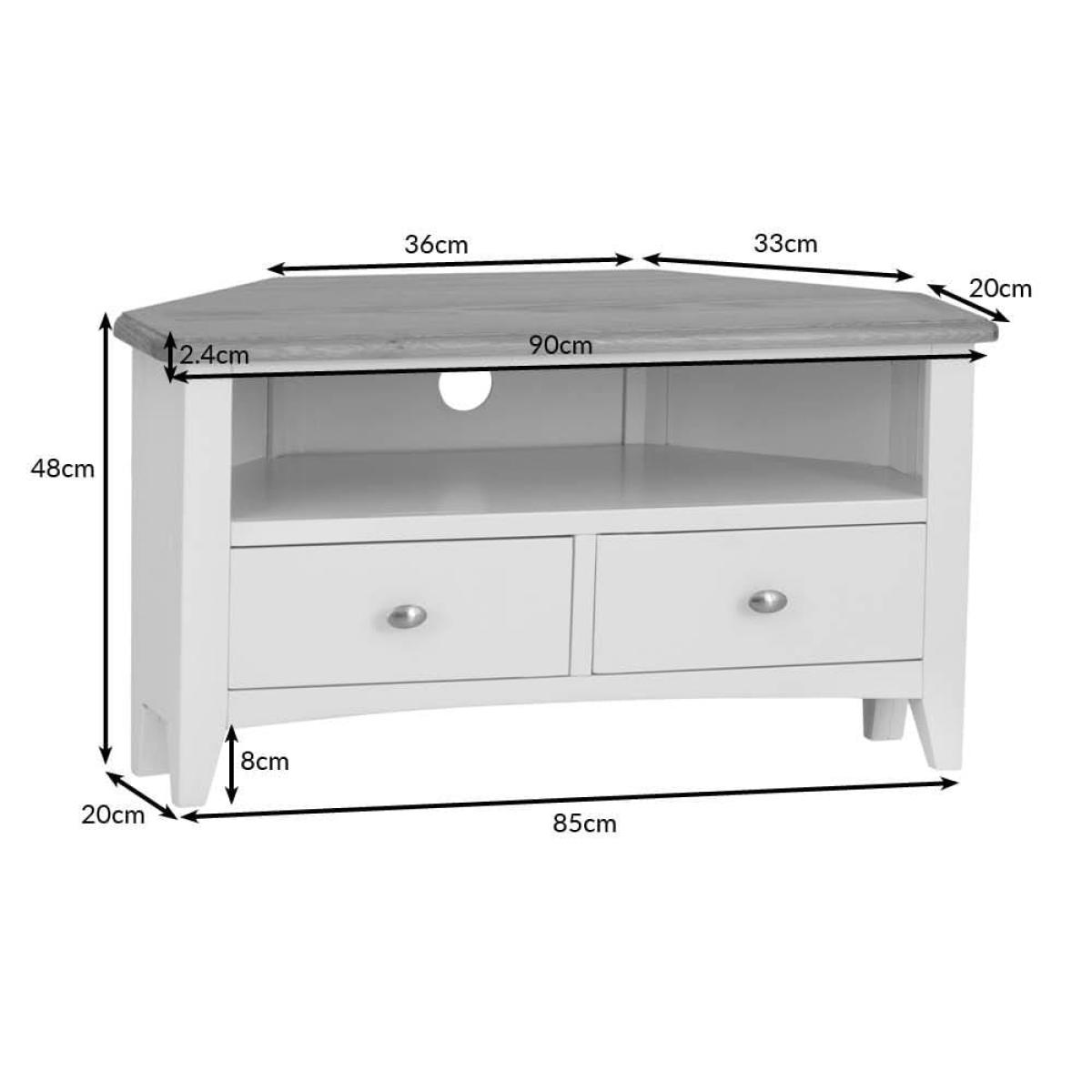 Time for a family gaming tournament? Your equipment is safe and secure on your new Gloucester white painted corner TV unit. Since it’s designed to fit into the corner of your room, everyone will have a good view of the on-screen action. The unit will also blend in with your living room design with its painted white finish and discreet brushed metal detailing. The piece comprises one large open shelf space where you can store DVD players or consoles. A pre-drilled hole at the back lets you keep wires and cables out of the way. Two shelves underneath are perfectly placed to keep your games and DVDs. Please note: This item is not pure/brilliant White. It is an off-white, described as 'old white'.