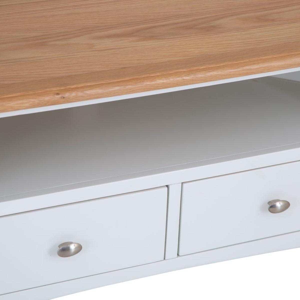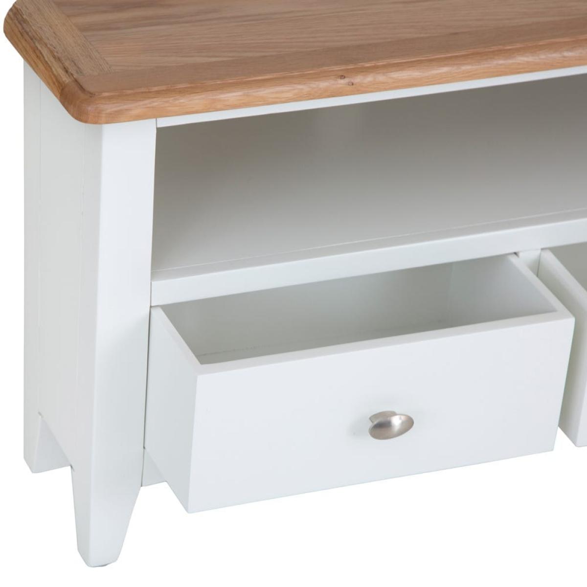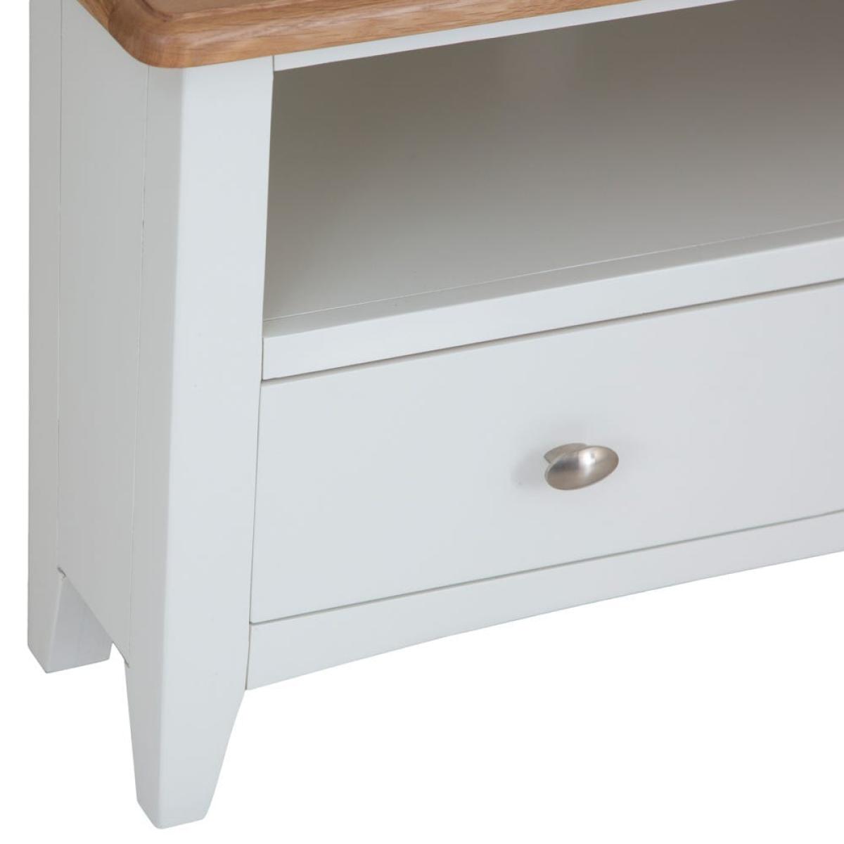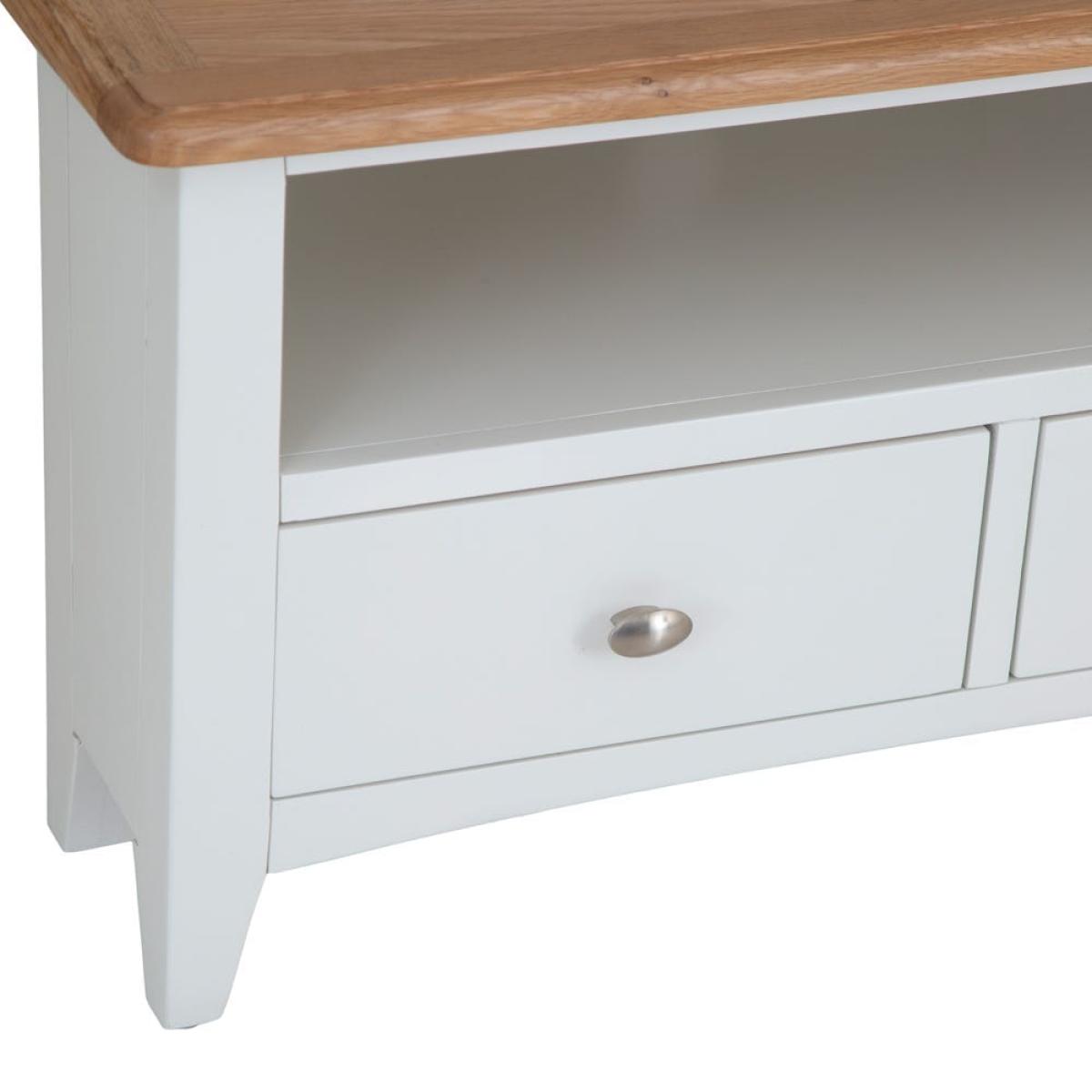 Time for a family gaming tournament? Your equipment is safe and secure on your new Gloucester white painted corner TV unit. Since it’s designed to fit into the corner of your room, everyone will have a good view of the on-screen action. The unit will also blend in with your living room design with its painted white finish and discreet brushed metal detailing. The piece comprises one large open shelf space where you can store DVD players or consoles. A pre-drilled hole at the back lets you keep wires and cables out of the way. Two shelves underneath are perfectly placed to keep your games and DVDs. Please note: This item is not pure/brilliant White. It is an off-white, described as 'old white'.