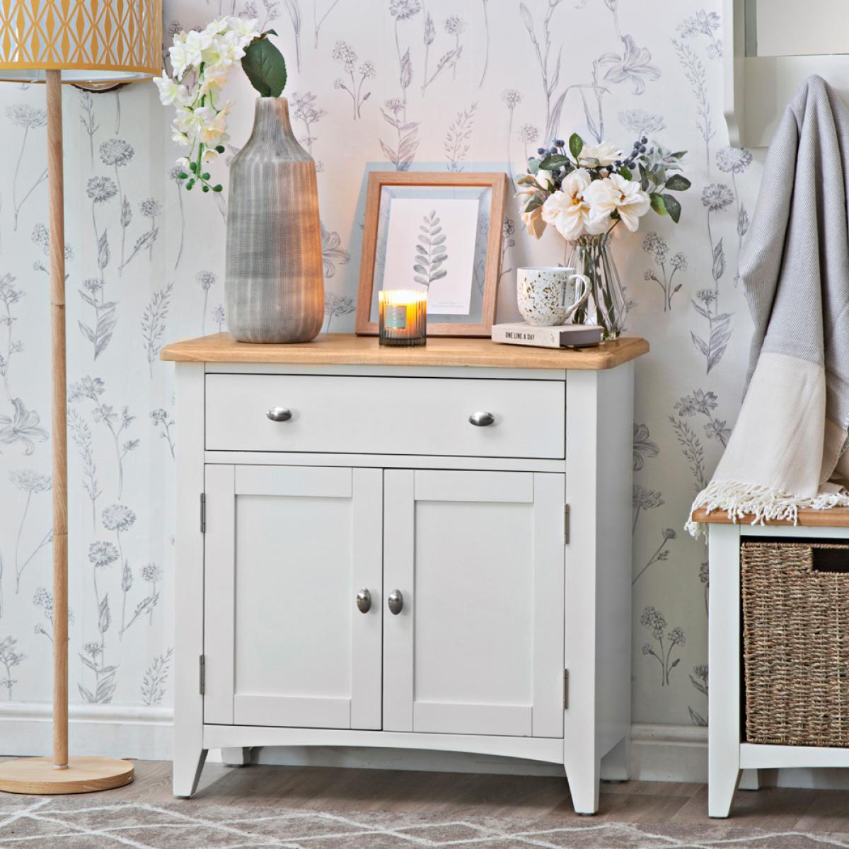 Brighten up and modernise your Hallway, Bedroom, Living Room and Dining Room this season with the must-have Gloucester White Painted Collection. A comprehensive collection of white furniture, the most interesting feature of Gloucester White is the oblong brushed metal knob handle, which is unique amongst our painted collections. The subtlety of this handle allows the other stand-out characteristics of each furniture item to come to the fore, such as tapered legs and bevelled detailing on the top surface. The very slightly off-white paint used on this gorgeous Collection ensures a neutrality that makes this range an especially versatile one, complimenting a host of interior colours and styles. This Range is also available from Chiltern Oak Furniture in an unpainted finish, called Gloucester Oak, and a Grey Painted finish, called Gloucester Midnight Grey.