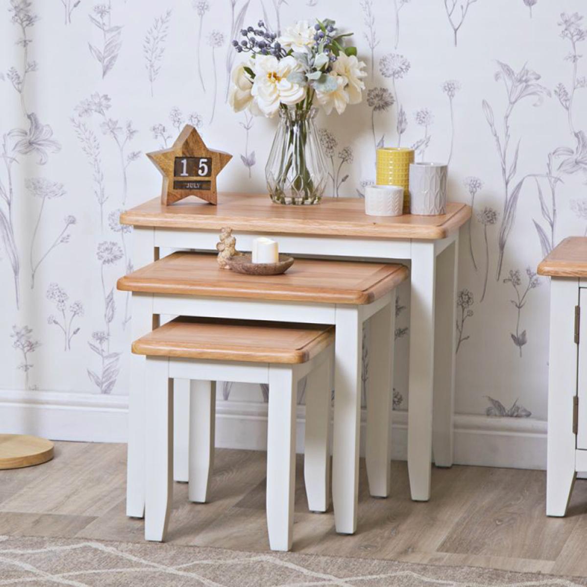 Brighten up and modernise your Hallway, Bedroom, Living Room and Dining Room this season with the must-have Gloucester White Painted Collection. A comprehensive collection of white furniture, the most interesting feature of Gloucester White is the oblong brushed metal knob handle, which is unique amongst our painted collections. The subtlety of this handle allows the other stand-out characteristics of each furniture item to come to the fore, such as tapered legs and bevelled detailing on the top surface. The very slightly off-white paint used on this gorgeous Collection ensures a neutrality that makes this range an especially versatile one, complimenting a host of interior colours and styles. This Range is also available from Chiltern Oak Furniture in an unpainted finish, called Gloucester Oak, and a Grey Painted finish, called Gloucester Midnight Grey.