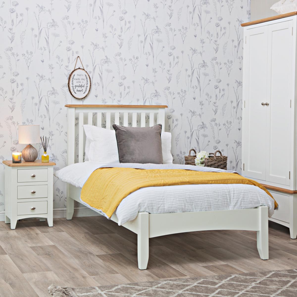Brighten up and modernise your Hallway, Bedroom, Living Room and Dining Room this season with the must-have Gloucester White Painted Collection. A comprehensive collection of white furniture, the most interesting feature of Gloucester White is the oblong brushed metal knob handle, which is unique amongst our painted collections. The subtlety of this handle allows the other stand-out characteristics of each furniture item to come to the fore, such as tapered legs and bevelled detailing on the top surface. The very slightly off-white paint used on this gorgeous Collection ensures a neutrality that makes this range an especially versatile one, complimenting a host of interior colours and styles. This Range is also available from Chiltern Oak Furniture in an unpainted finish, called Gloucester Oak, and a Grey Painted finish, called Gloucester Midnight Grey.