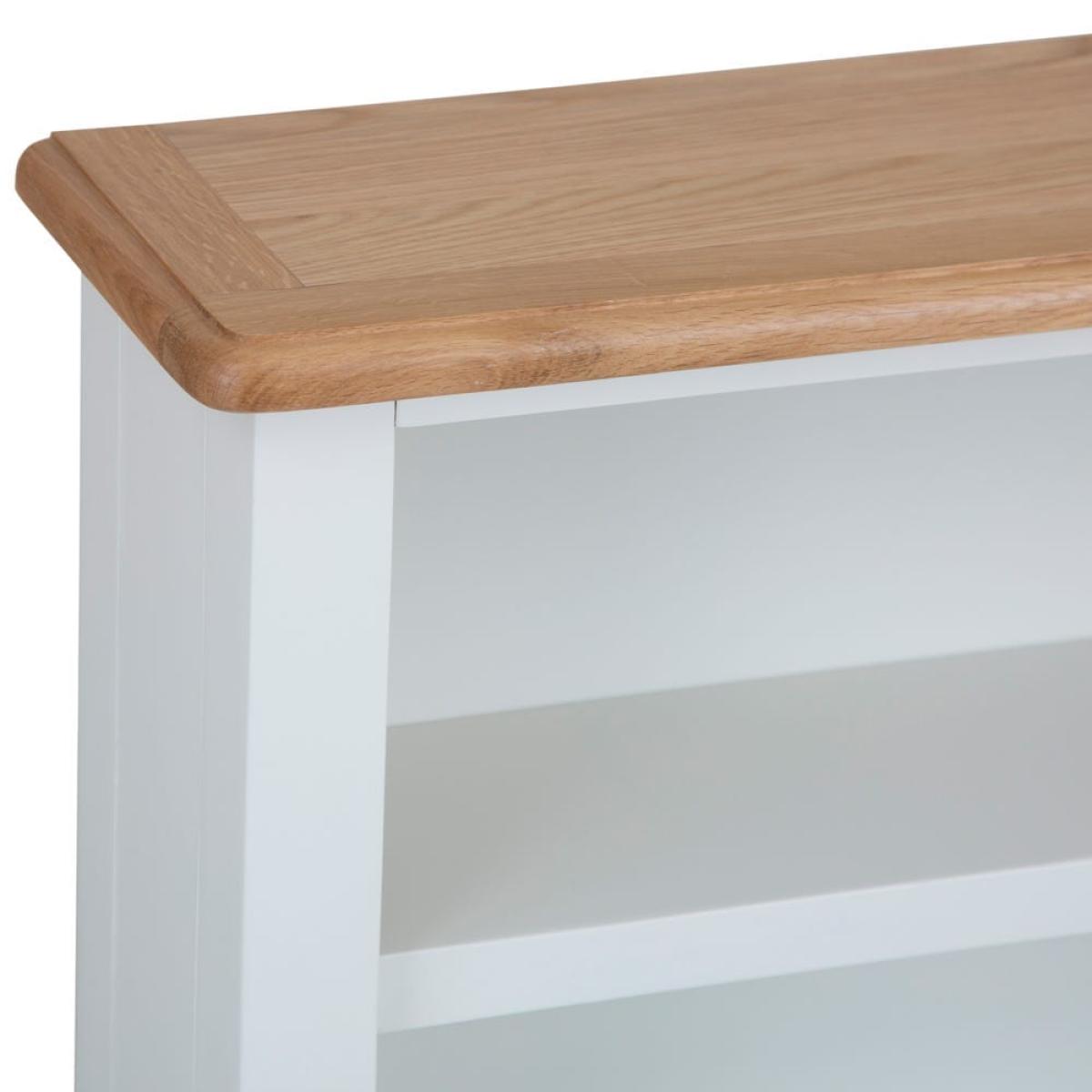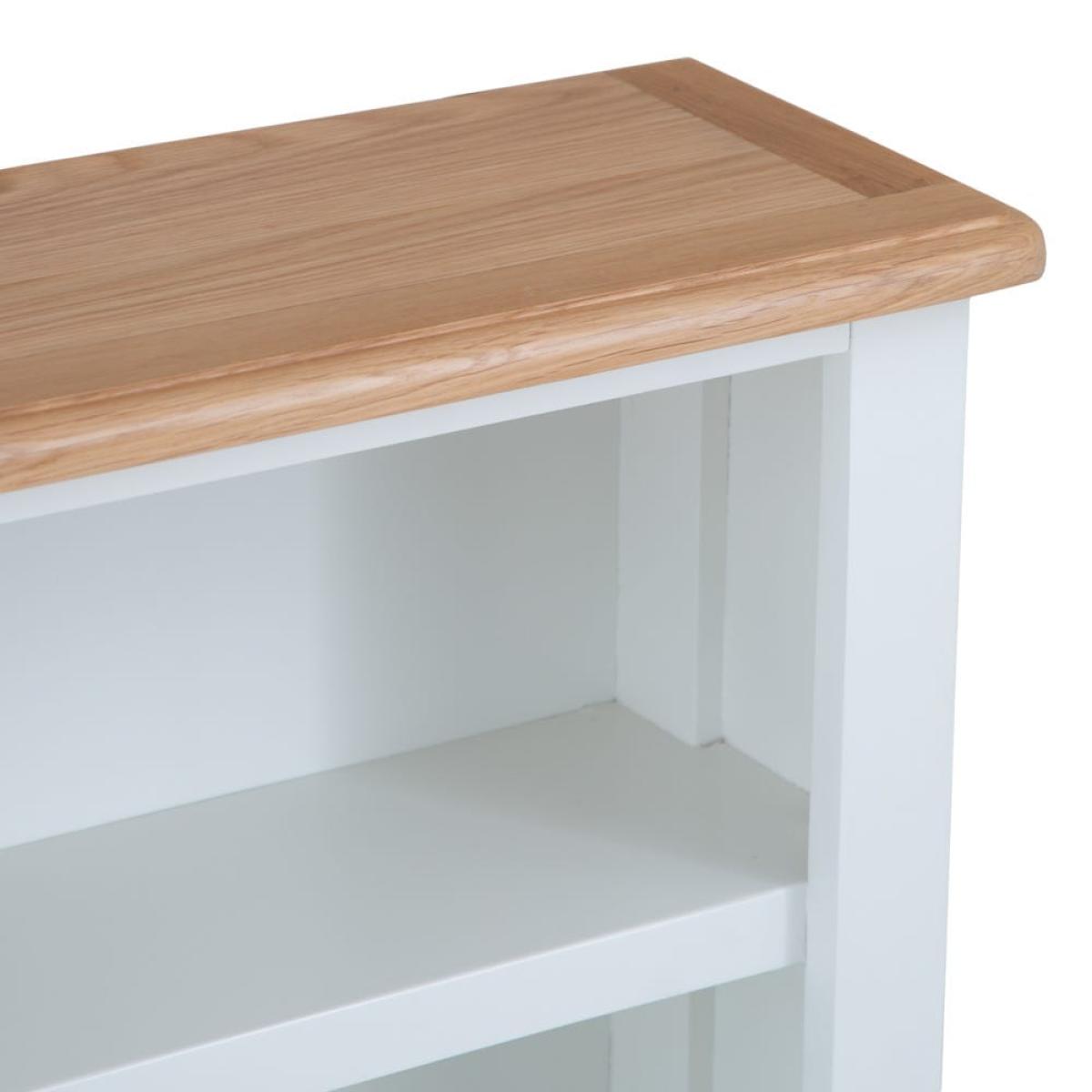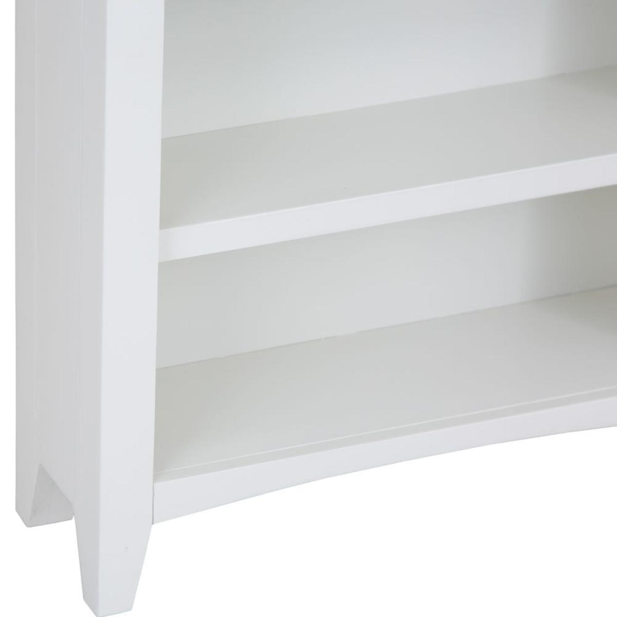Incurable bookaholic? This Gloucester white painted small wide bookcase has plenty of shelf space for all your favourite reads. It’s crafted from solid pine and features a gentle arch at the base, plus delicate tapered legs. The slightly off-white finish has a timeless appeal to suit any bedroom or living area, and the honey-coloured oak and oak veneer top adds complementary warmth. Dress it up with a table lamp or some mini succulents to make it your own. With its low shelves and sturdy frame, this piece is ideal for a child’s bedroom to let your budding bookworm curate their own little library. Please note: This item is not pure/brilliant White. It is an off-white, described as 'old white'.