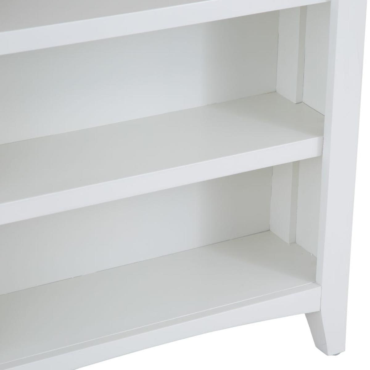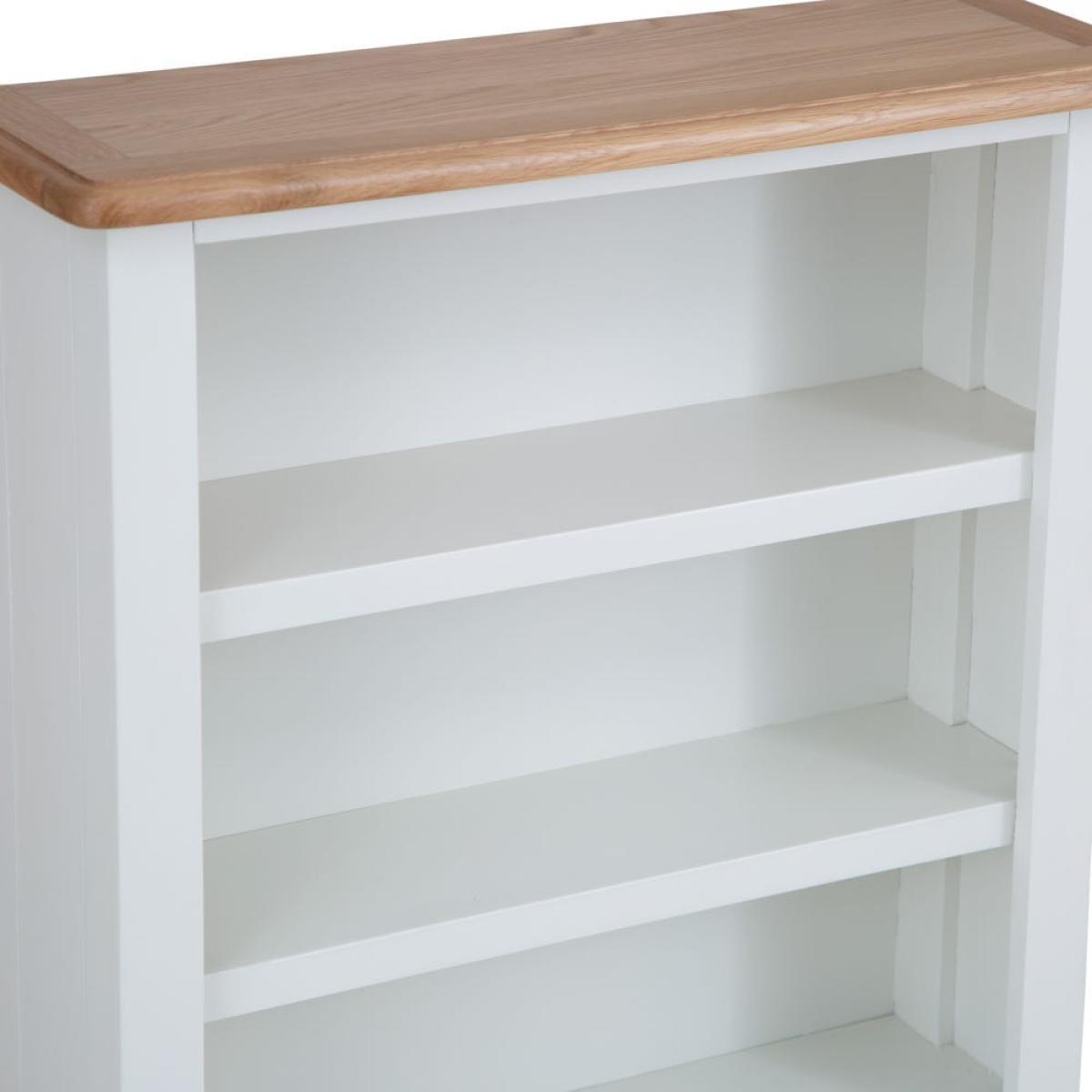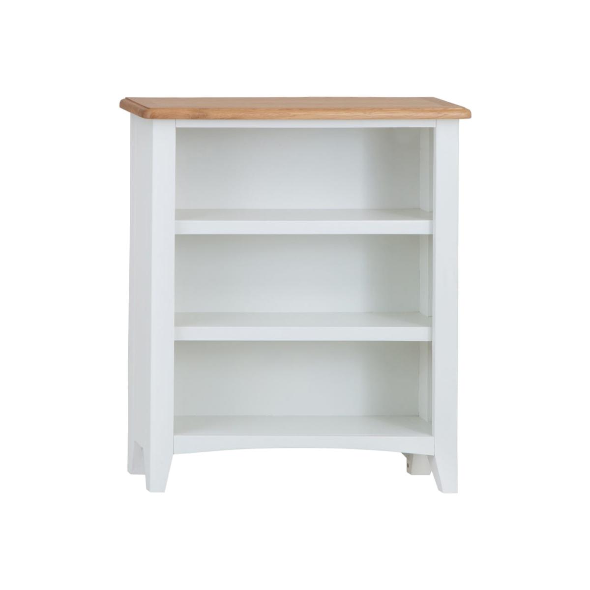 Incurable bookaholic? This Gloucester white painted small wide bookcase has plenty of shelf space for all your favourite reads. It’s crafted from solid pine and features a gentle arch at the base, plus delicate tapered legs. The slightly off-white finish has a timeless appeal to suit any bedroom or living area, and the honey-coloured oak and oak veneer top adds complementary warmth. Dress it up with a table lamp or some mini succulents to make it your own. With its low shelves and sturdy frame, this piece is ideal for a child’s bedroom to let your budding bookworm curate their own little library. Please note: This item is not pure/brilliant White. It is an off-white, described as 'old white'.