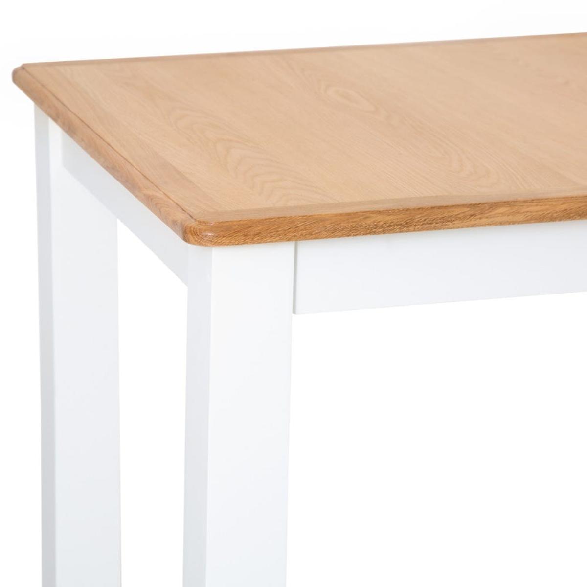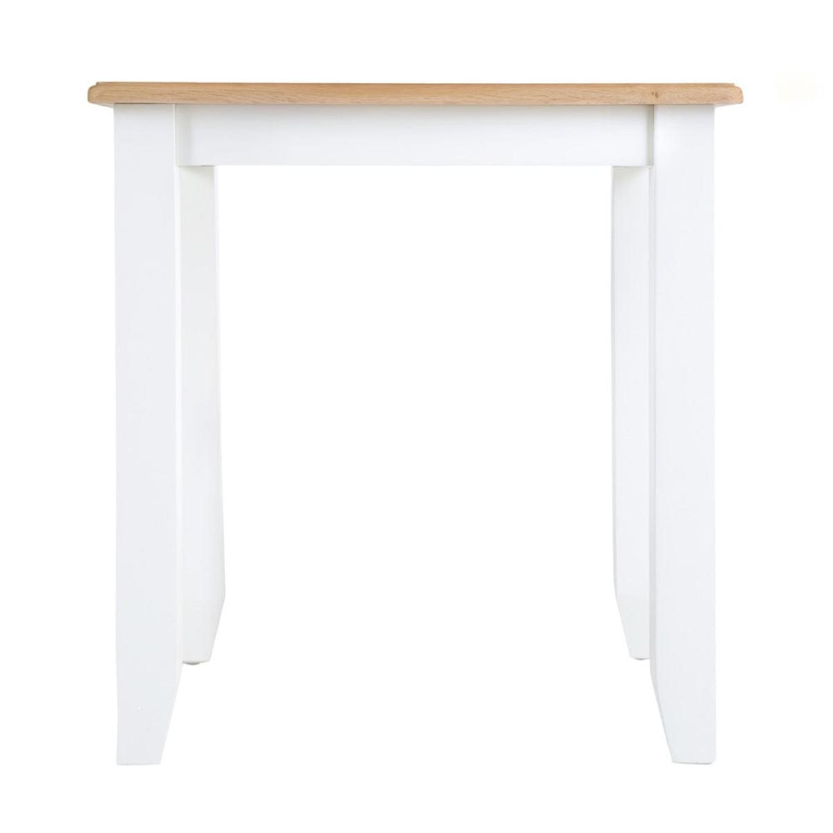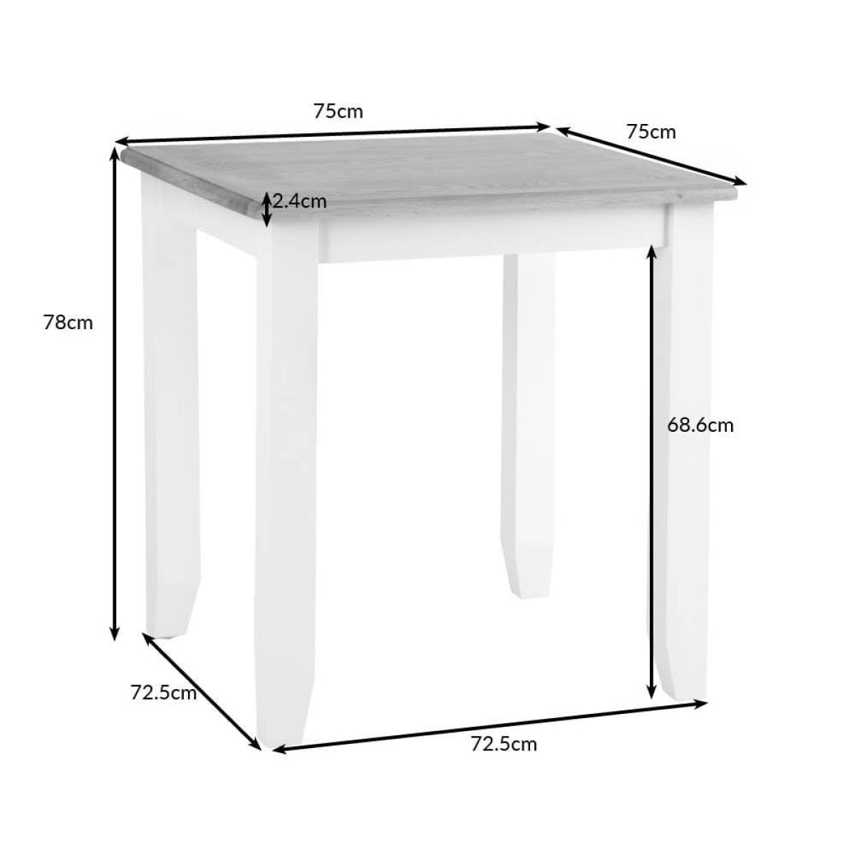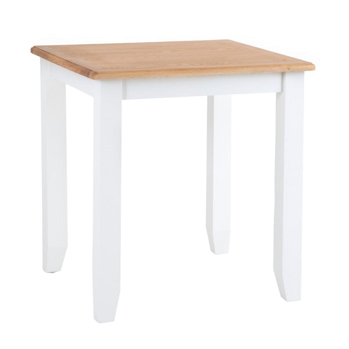 Our compact Gloucester white painted square fixed-top dining table is perfect for cosy kitchen suppers or date nights à deux. The breezy off-white finish on the pine frame has a fresh, contemporary feel that suits both modern and rustic kitchens, and discreet tapering offsets the chunky square legs. At 75cm square, this dining table comfortably seats four, and the robust oak and oak veneer top is built to support hearty meals. Rounded corners and bevelled detailing add an artisan feel. Match this table with any of our Gloucester white dining chairs for a uniform set-up in your kitchen or dining area. Please note:This item is not pure/brilliant White. It is an off-white, described as 'old white'.