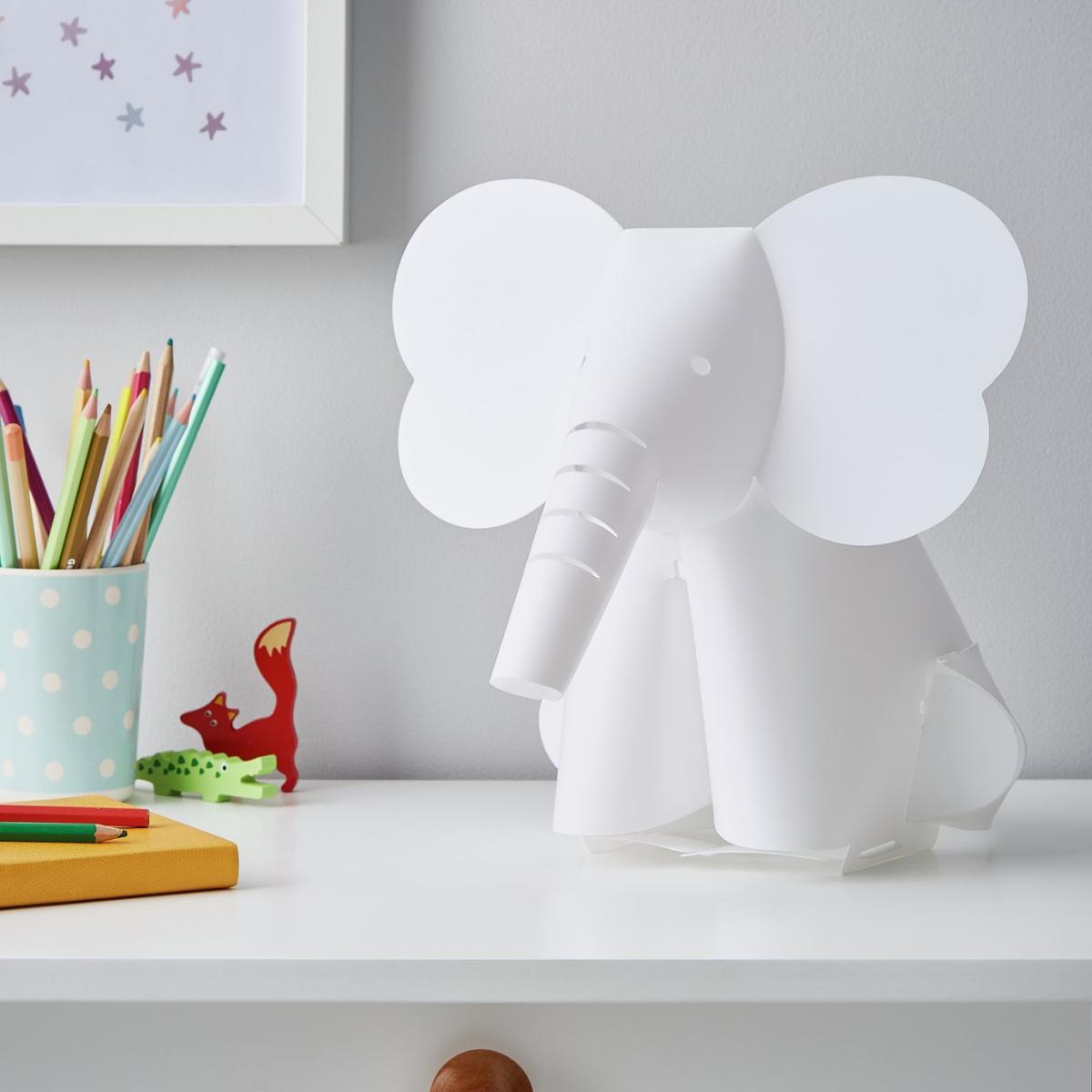 Illuminate your child's room with a touch of adorable charm using the Glow Baby Elephant Table Lamp. This delightful lamp features a cute baby elephant design that adds a playful and whimsical touch to any nursery or kids' room. Its soft glow creates a comforting atmosphere, making it perfect for bedtime stories or late-night feedings. Dimensions: Size H25, W22, D35.5cm, Diameter 22cm. Bulb Information: Energy consumption/1000h (kwh): 0.0025. Enclosed bulb:. Integrated LED (included). Recommended maximum wattage: 2.5 watts. LED bulb only. Colour rendering index 80. Colour temperature 3000. K. Rated luminous flux 120 lumens. General Information: Push on/off switch. IP20 - not suitable for bathroom use. Supplied assembled. Product is mains powered plug in. Suitable for people with epilepsy. This lighting product is a class 3 fitting. Manufacturer's 1 year guarantee.
