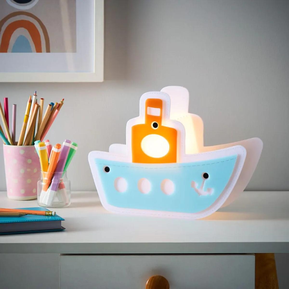 Add a fun and playful lighting element to your children's space with the Glow Boat LED Table Lamp. The quirky styling of this boat table lamp really make it stand out in any room. The white, blue and red colours on this table lamp makes it unisex and suitable for all children, as well as adding a pop of colour into any room. The boat-designed casing surrounding the bulb allows a healthy illumination of light to shine through, giving you the perfect accent lighting element to help your little one see once darkness falls.