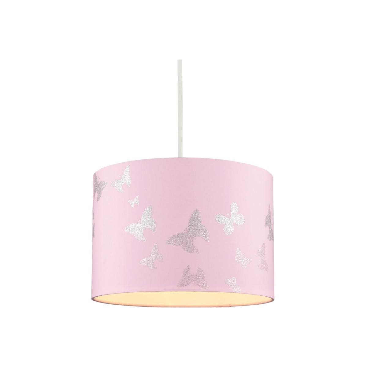 Add a gorgeous lampshade to your children's bedroom with the Butterfly Shade in pink. This lampshade features a beautiful reflective butterfly design and is ideal for lighter coloured bedrooms. It also can easily fit onto pre-existing light fittings and diffuses a warm glow into the room.