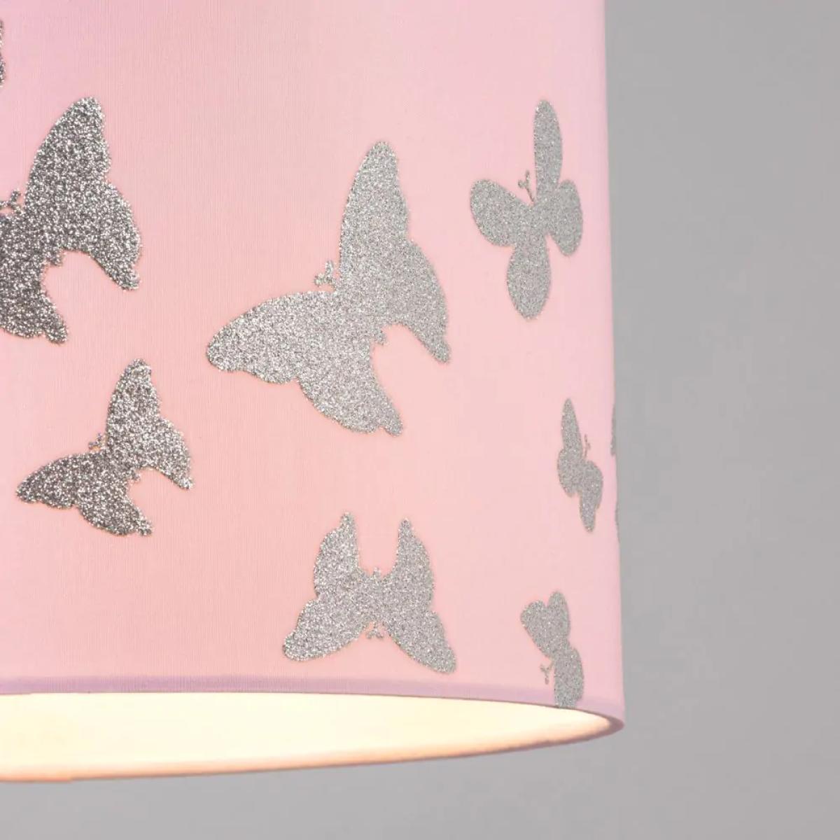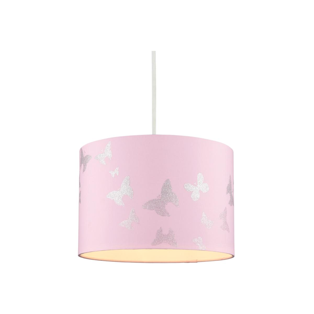 Add a gorgeous lampshade to your children's bedroom with the Butterfly Shade in pink. This lampshade features a beautiful reflective butterfly design and is ideal for lighter coloured bedrooms. It also can easily fit onto pre-existing light fittings and diffuses a warm glow into the room.