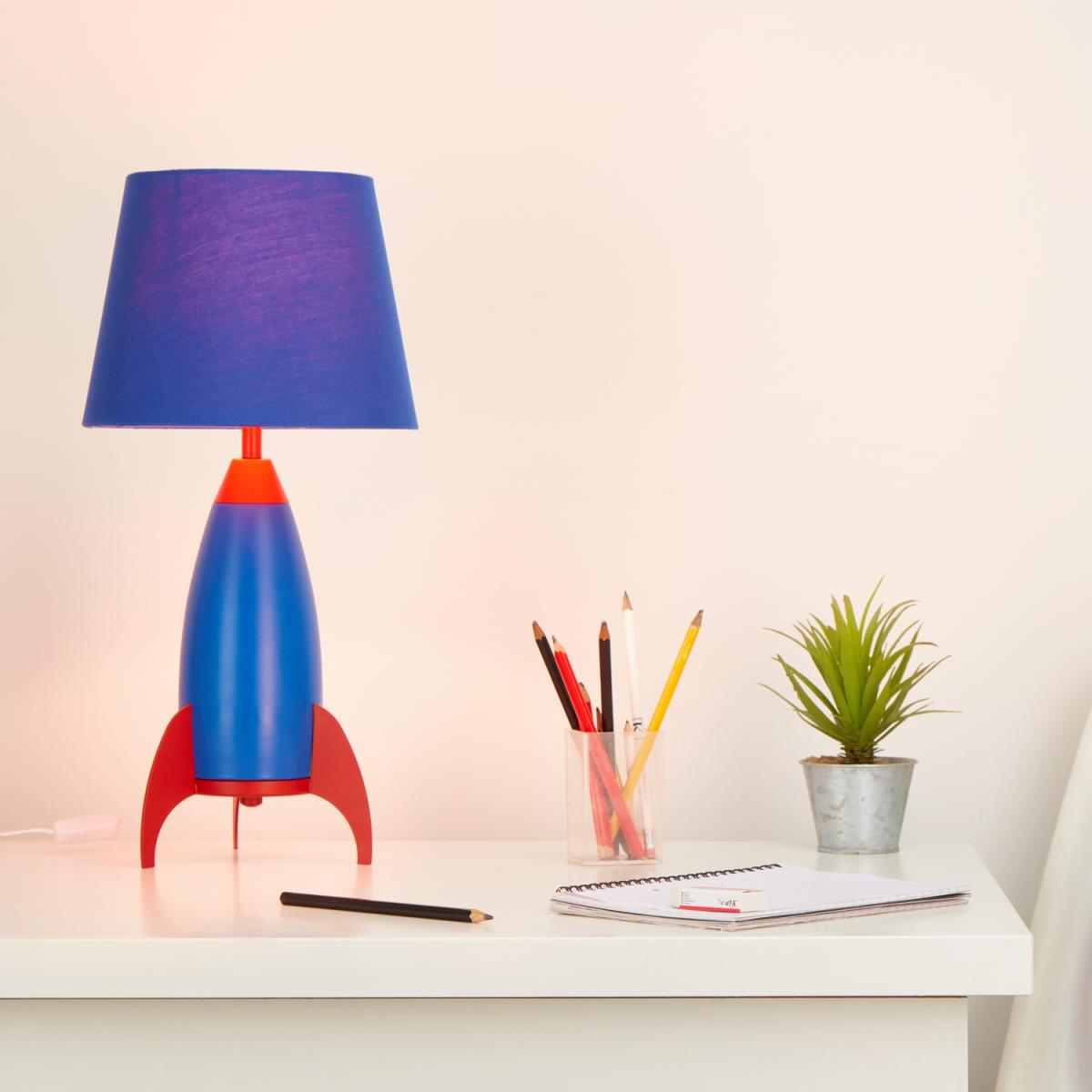 Introduce a pop of vibrant colour to your child's room with the Glow Rocket Table Lamp in Red. The rocket design in bold red hue adds a splash of fun and energy, making it a perfect accent for a space-themed bedroom or playroom. Ideal for any nightstand, desk, or bedside table.
